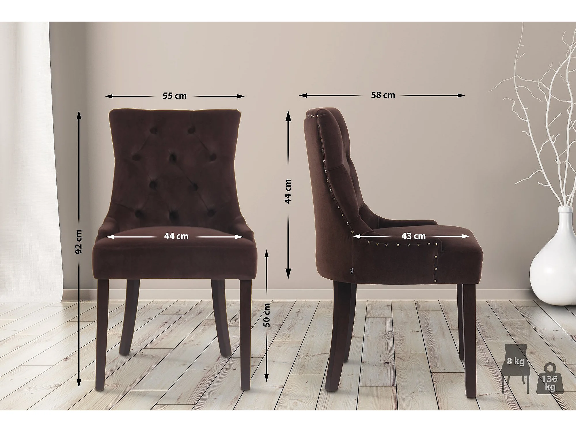 Lot de 4 chaise salle à manger - Velours & Antique - Marron - Aberdeen