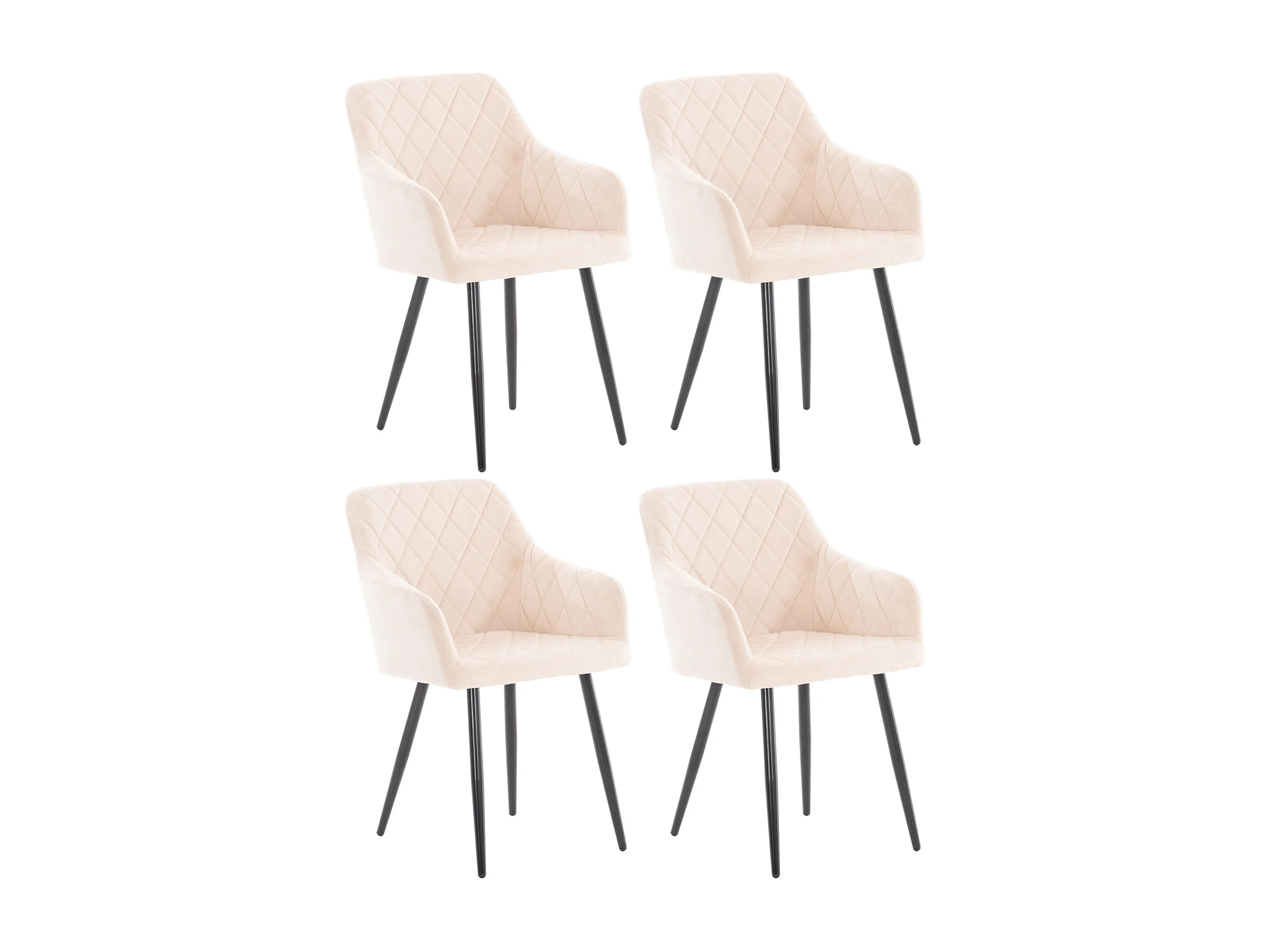 Lot de 4 chaises avec accoudoirs - Velours - Beige - Shila