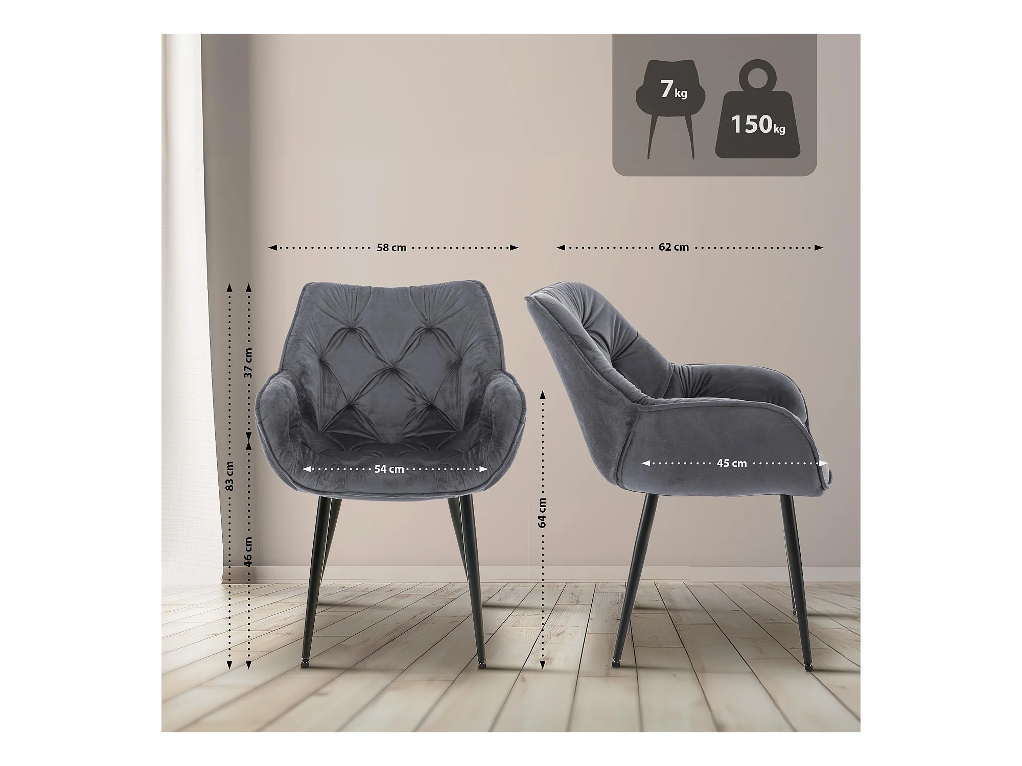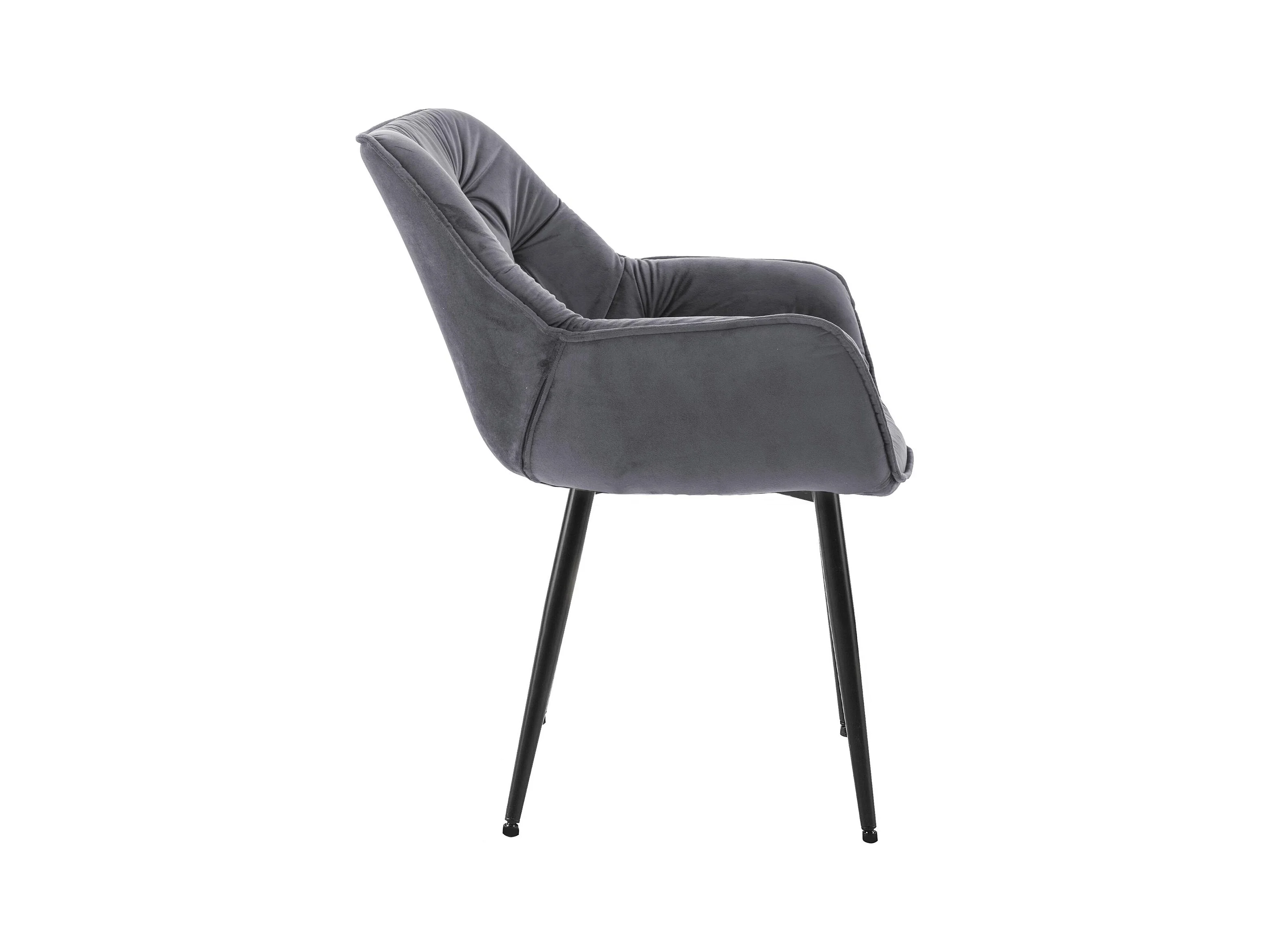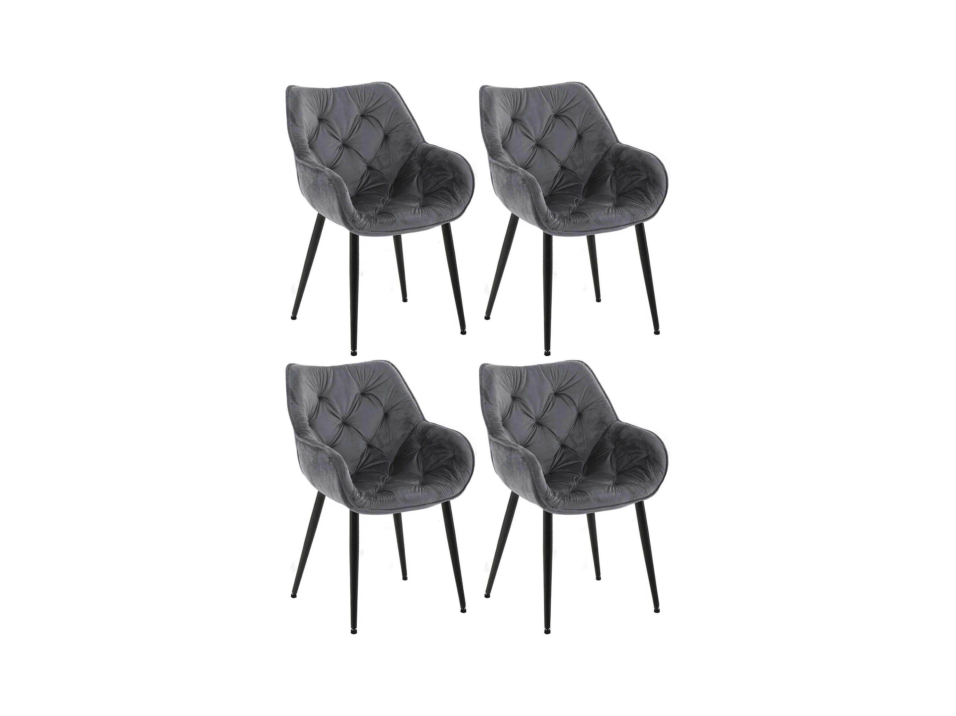 Lot de 4 chaises avec accoudoirs - Velours - Gris foncé - Tanna