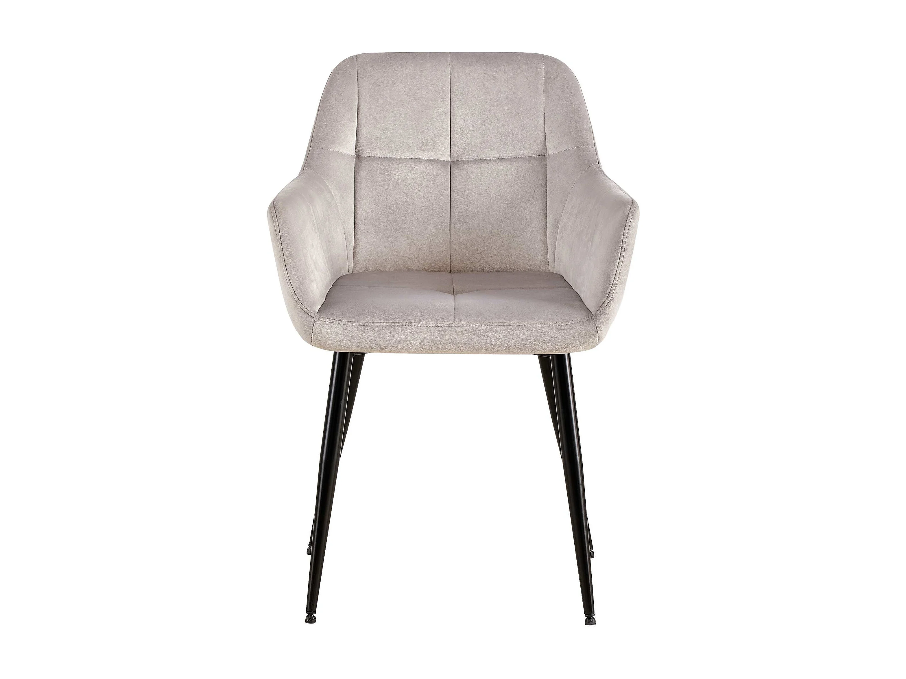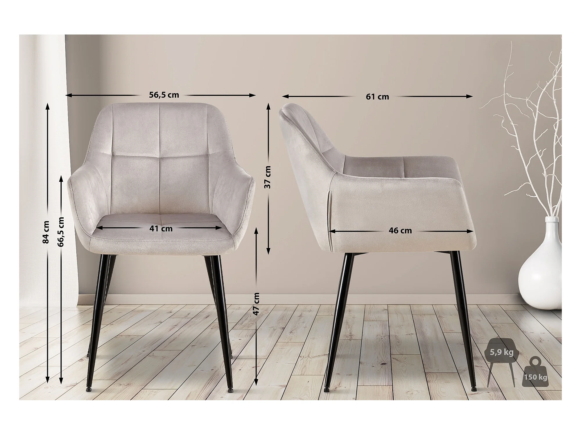 Lot de 4 chaises avec accoudoirs - Velours - Gris clair - Emia