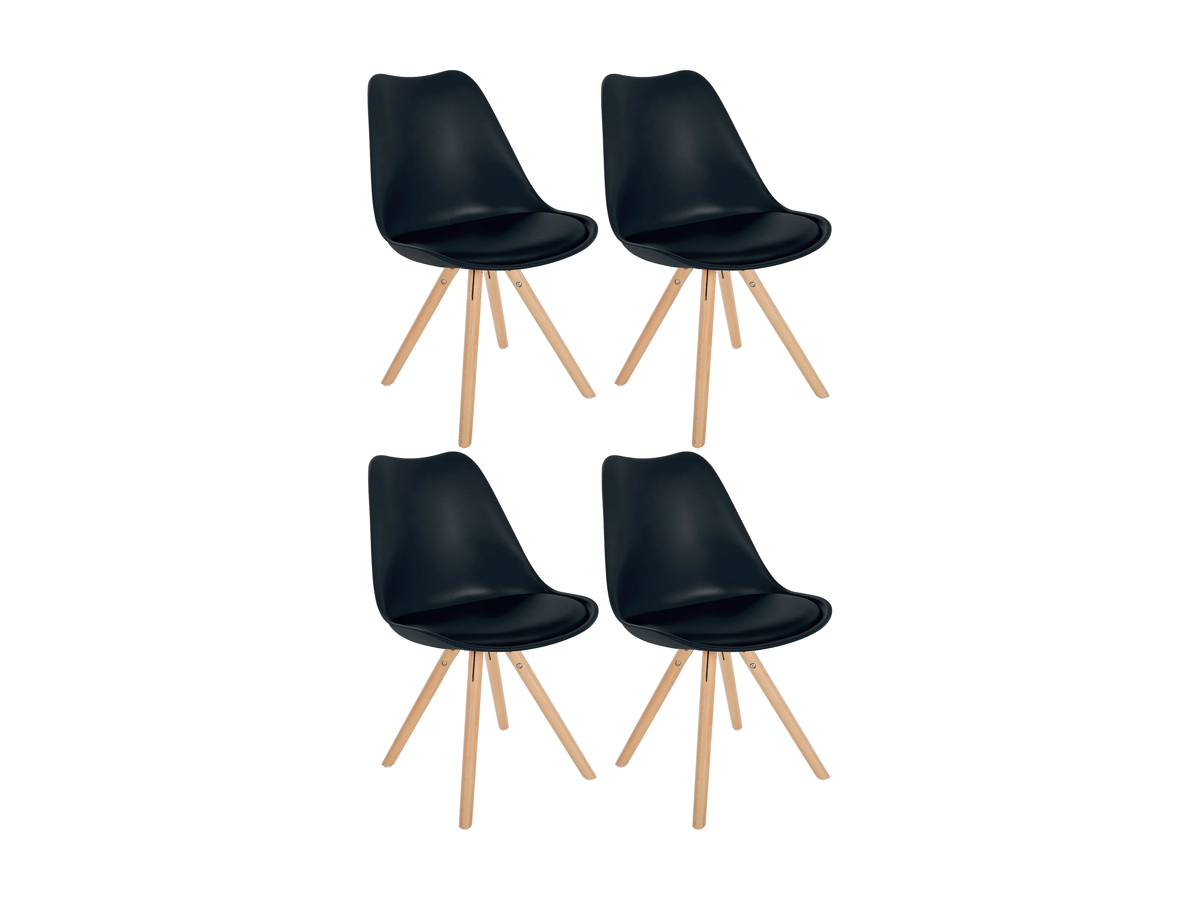 Lot de 4 chaise salle à manger - Plastique & Nature (rond) - Noir - Sofia