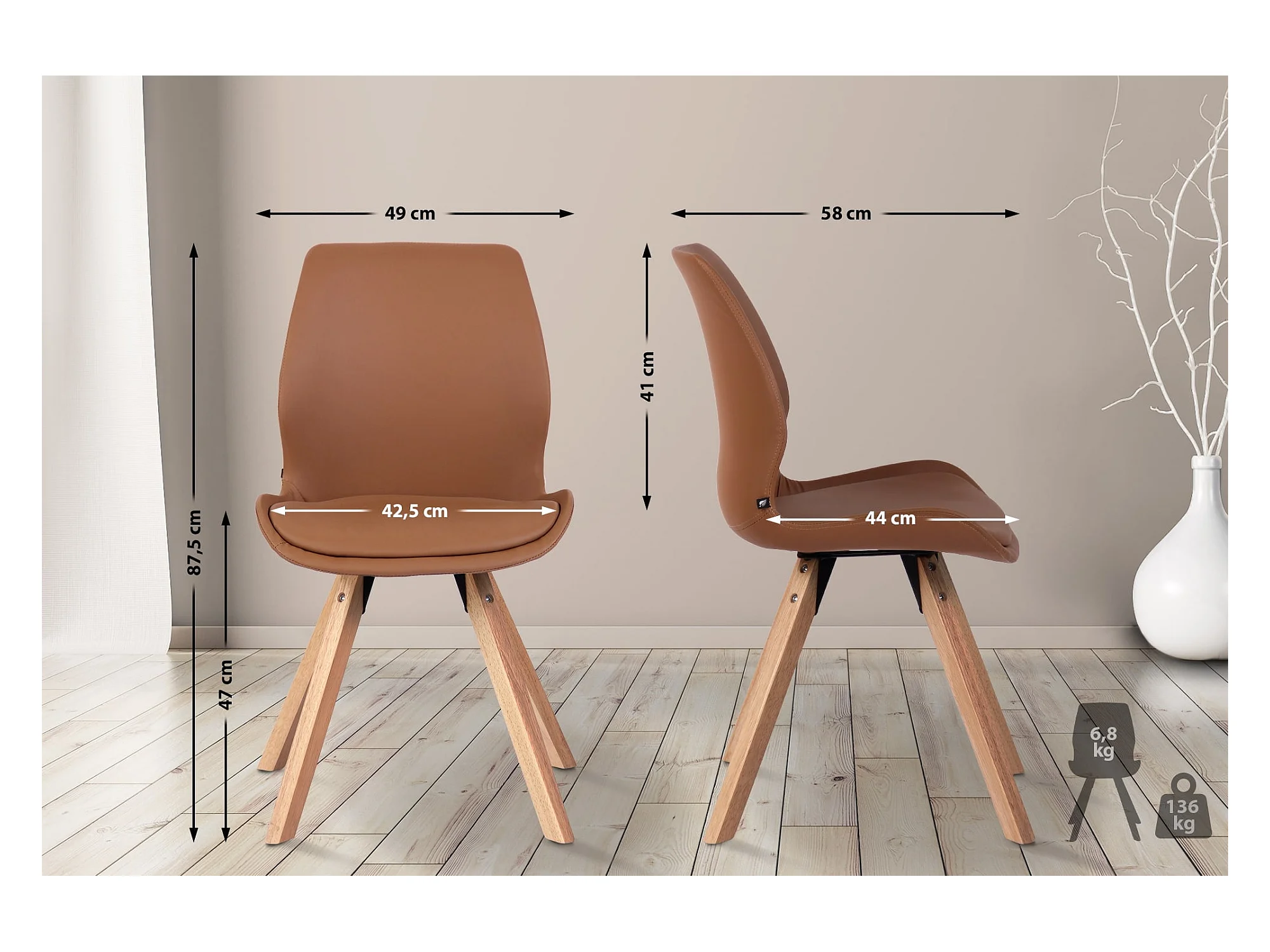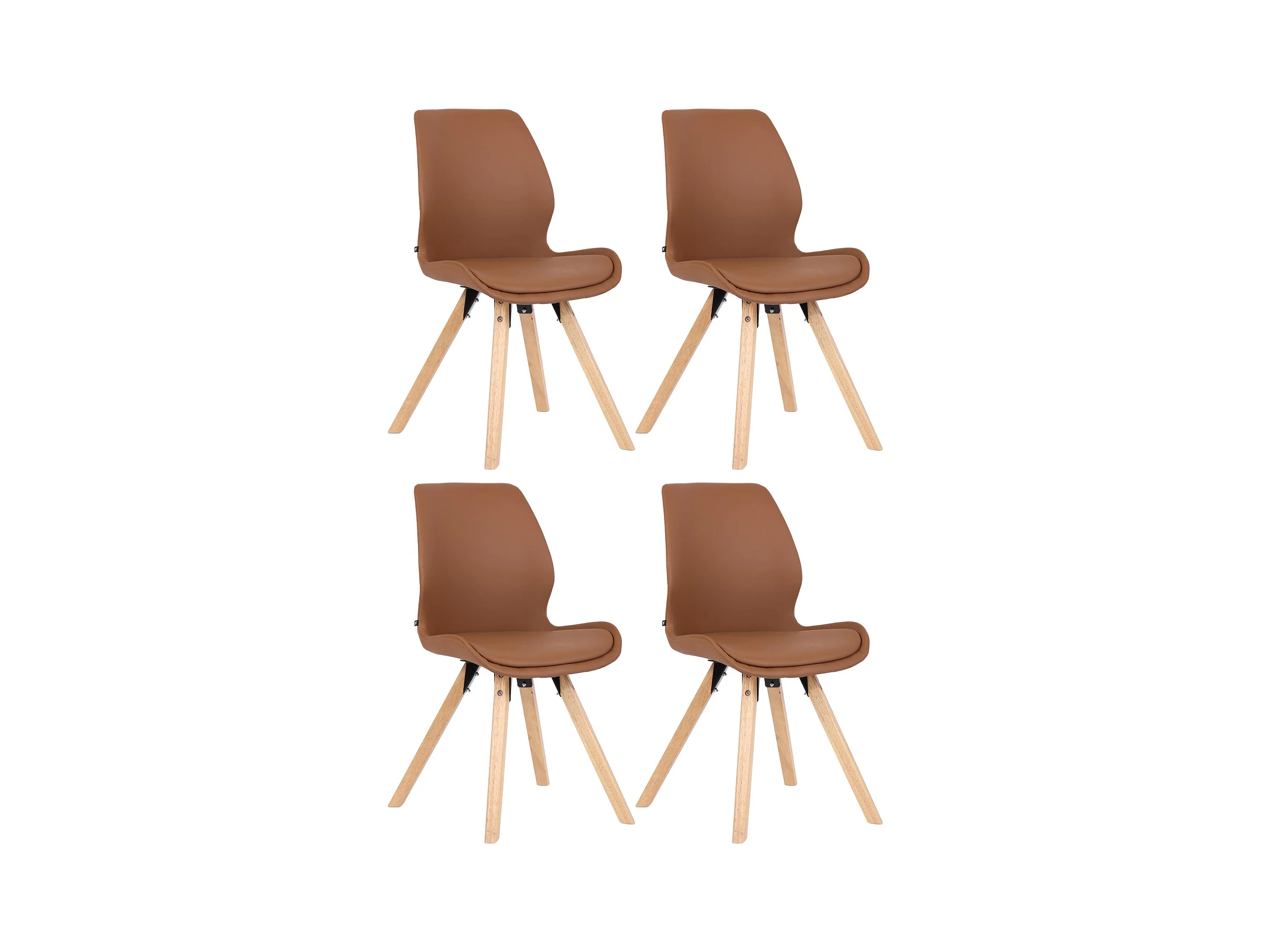 Lot de 4 chaise salle à manger - Similicuir - Marron clair - Luna