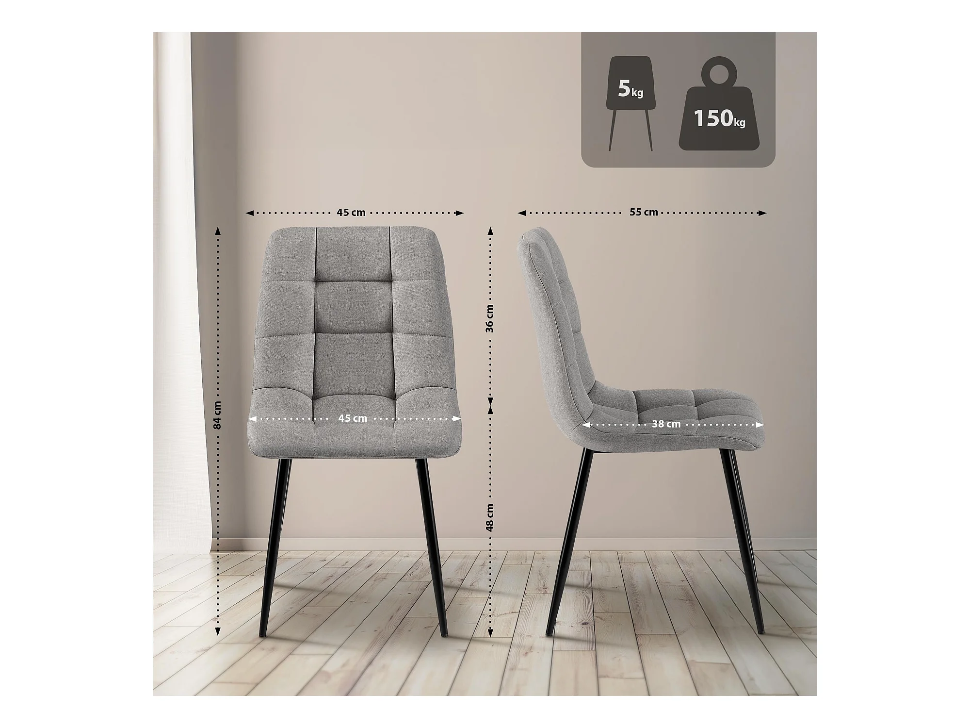 Lot de 4 chaise salle à manger - Tissu - Gris clair - Antibes