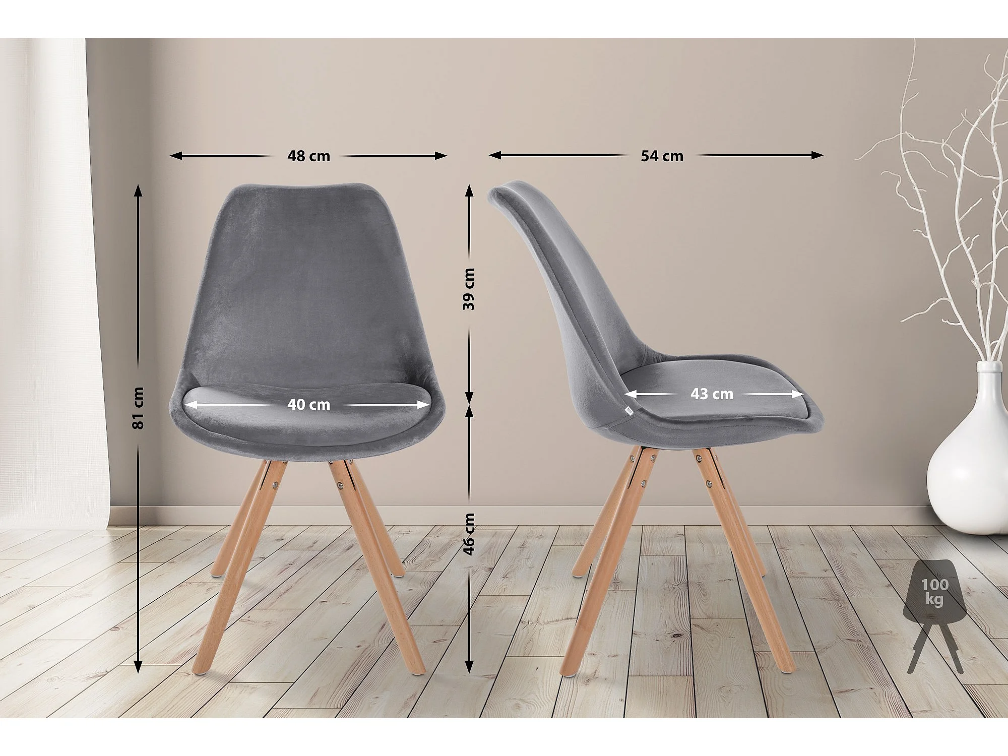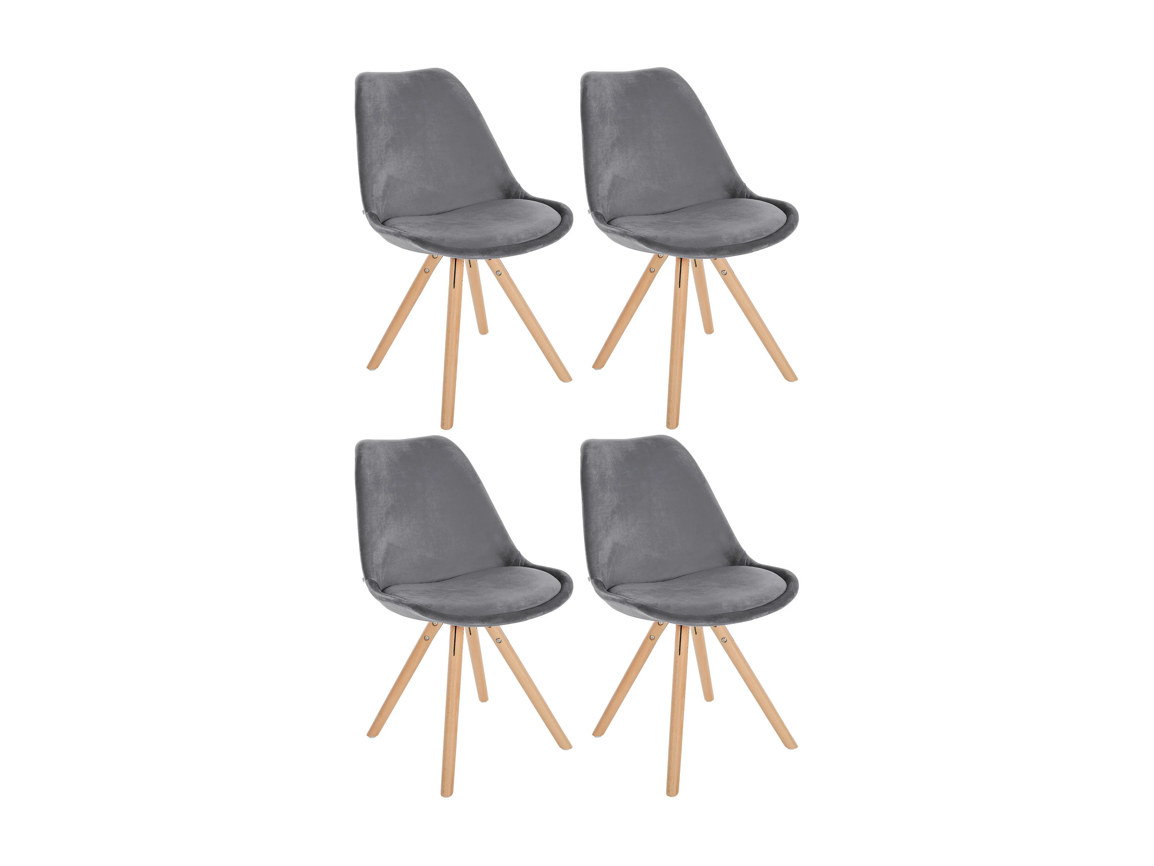 Lot de 4 chaise salle à manger - Velours & Nature (rond) - Gris - Sofia