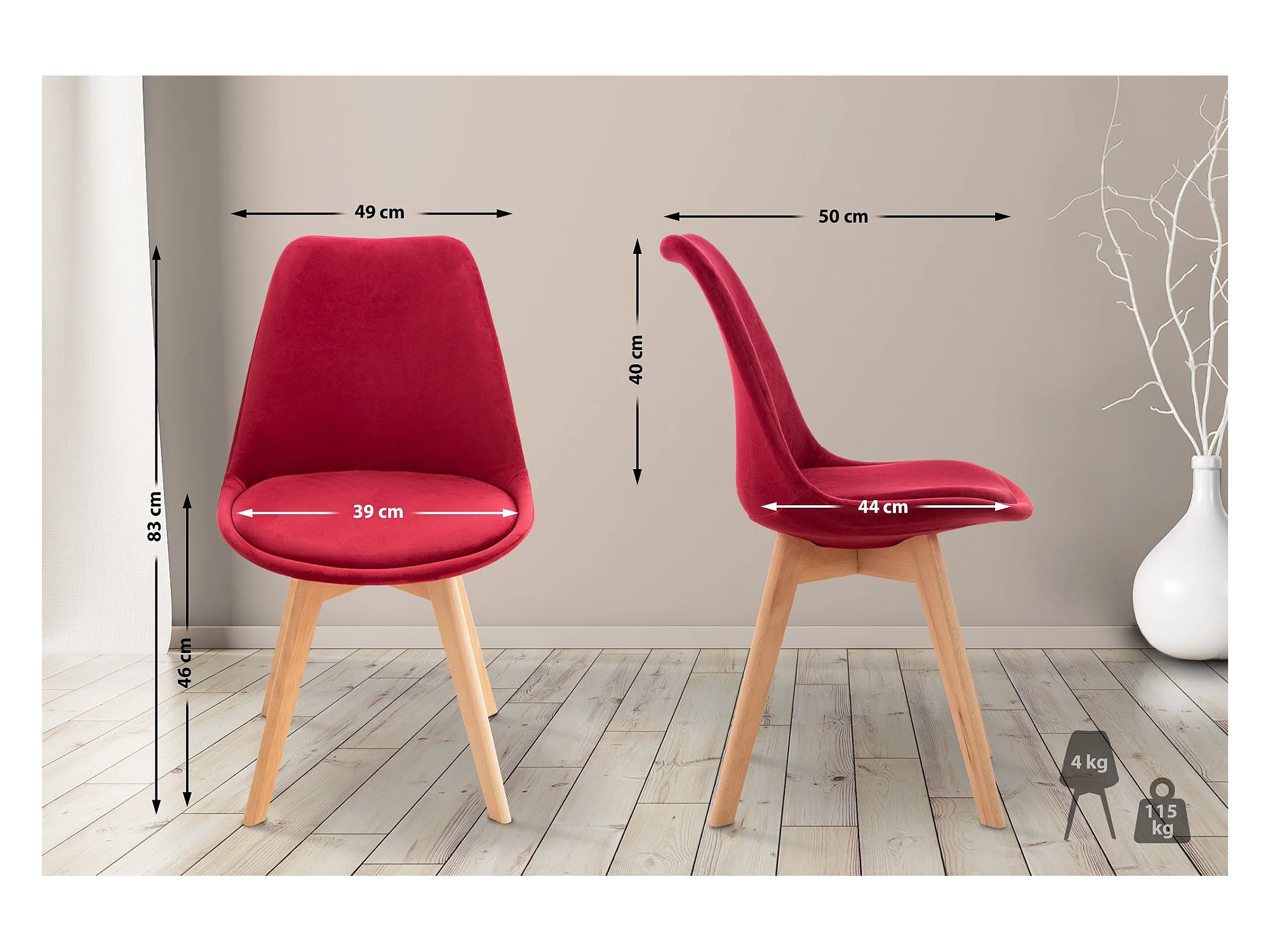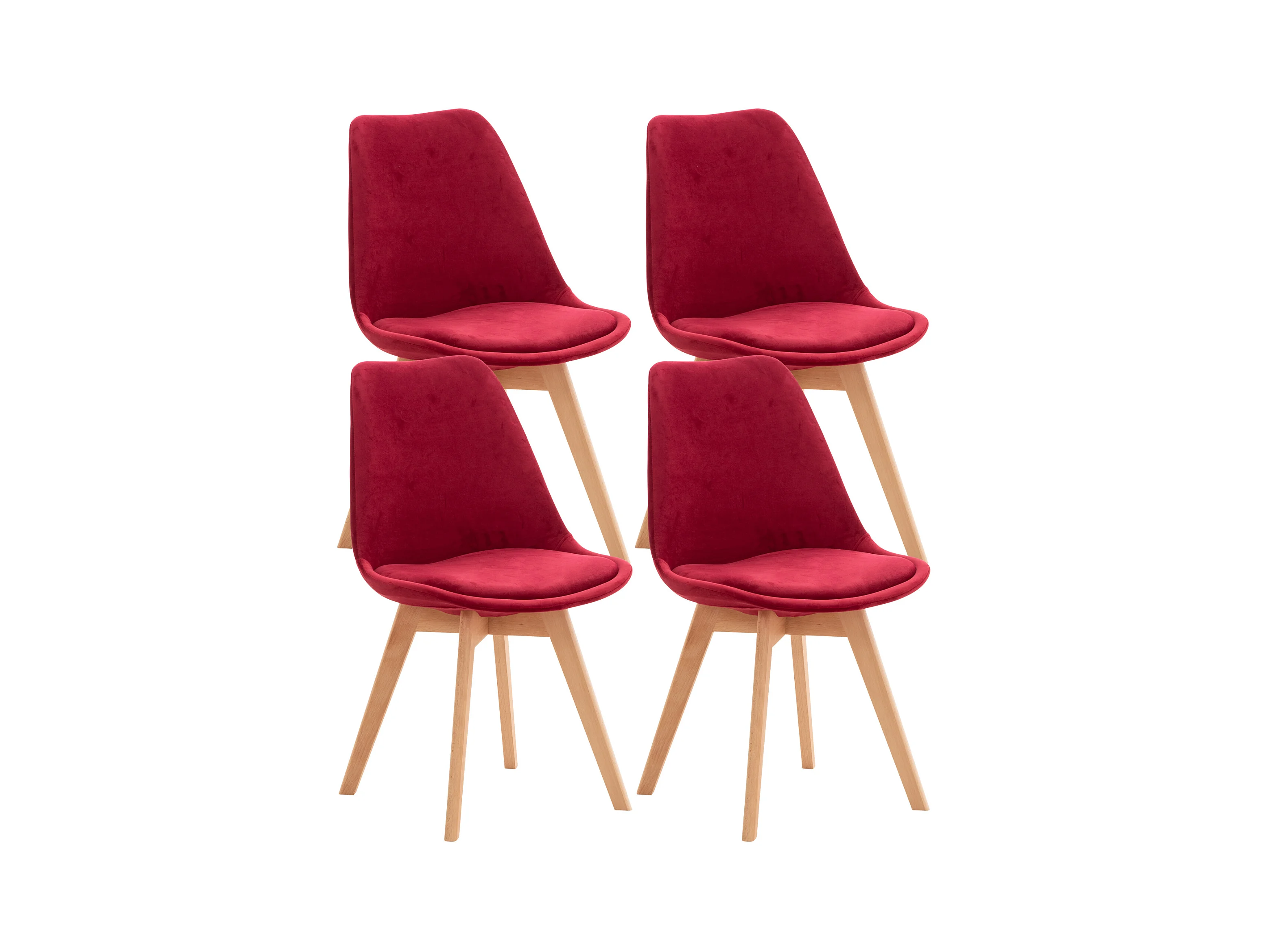 Lot de 4 chaise salle à manger - Velours - Rouge - Linares