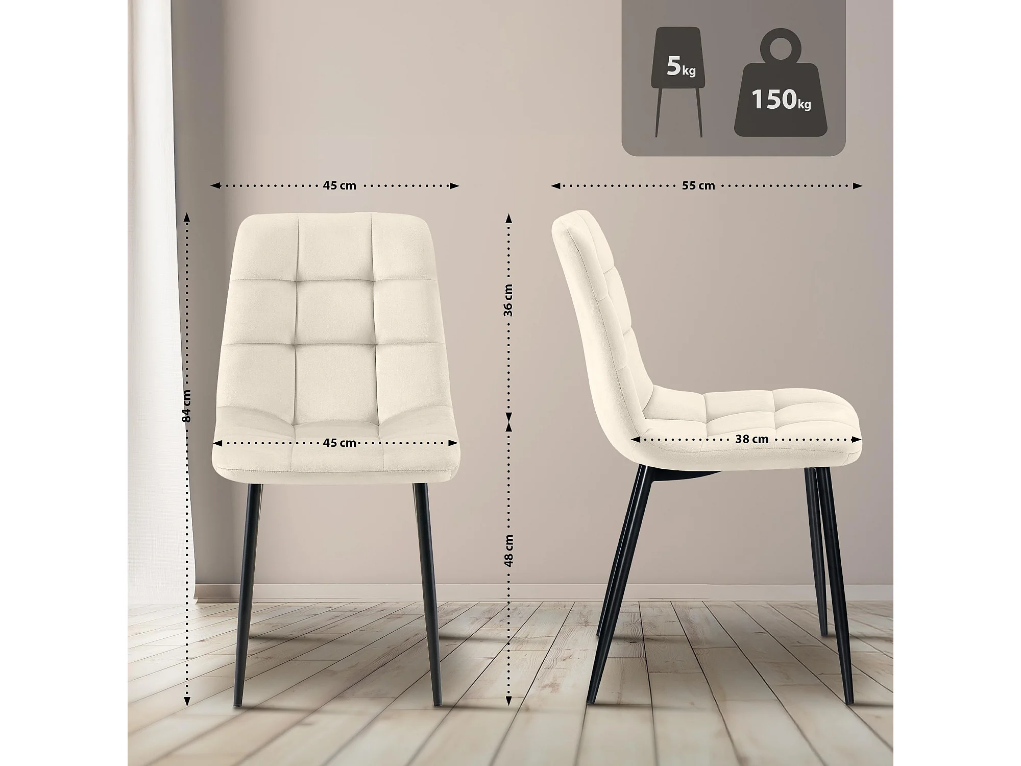Lot de 4 chaise salle à manger - Velours - Crème - Tilde