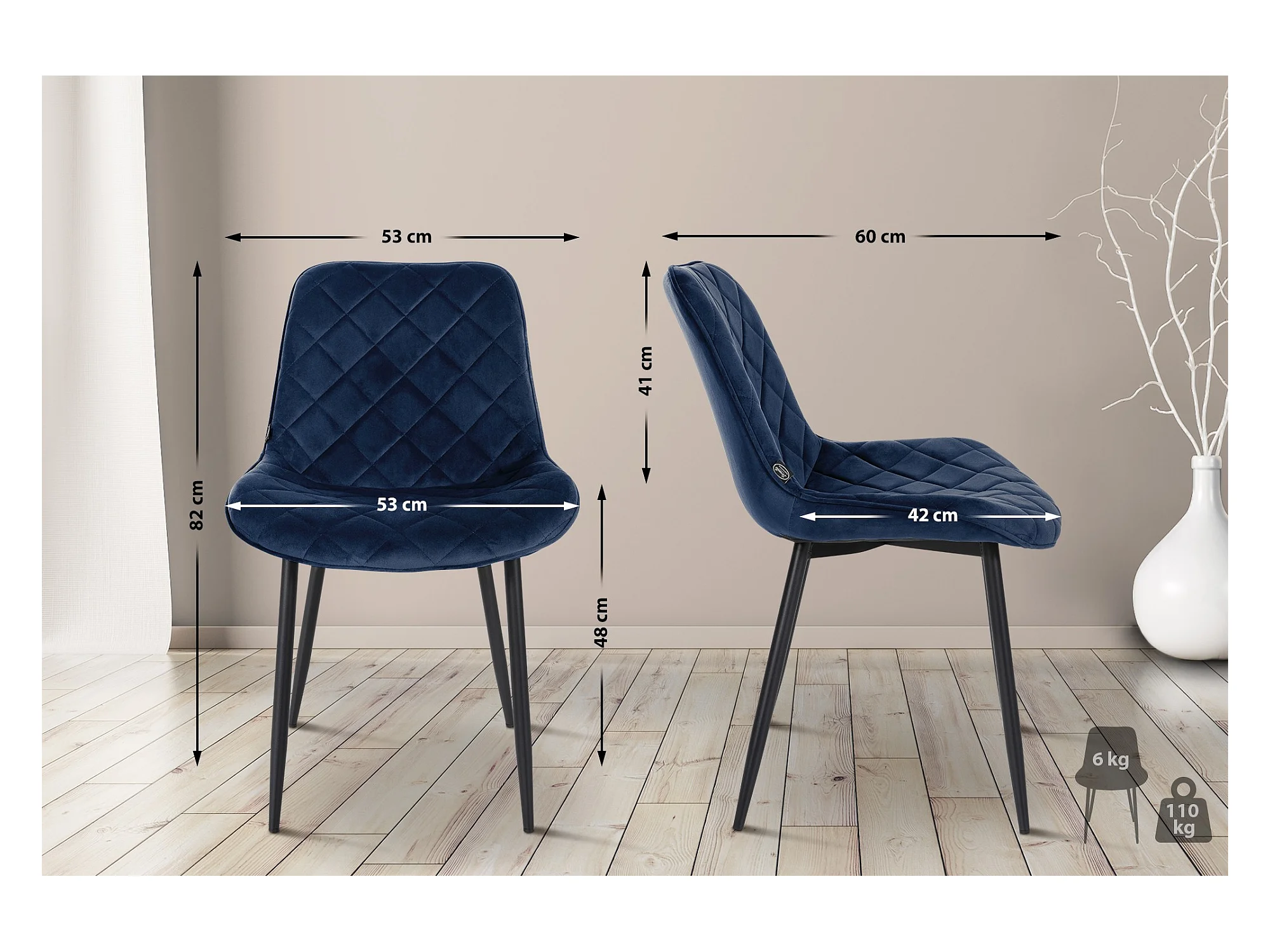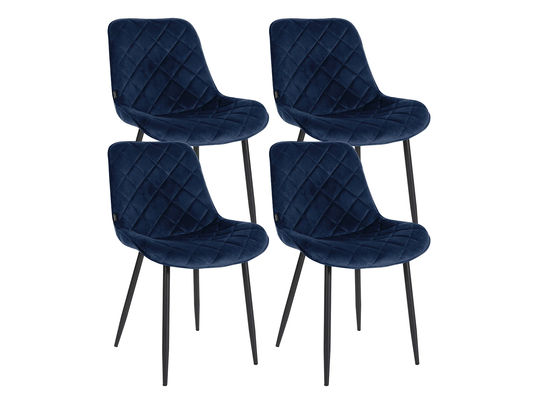 Lot de 4 chaise salle à manger - Velours & Blanc - Bleu - Springs