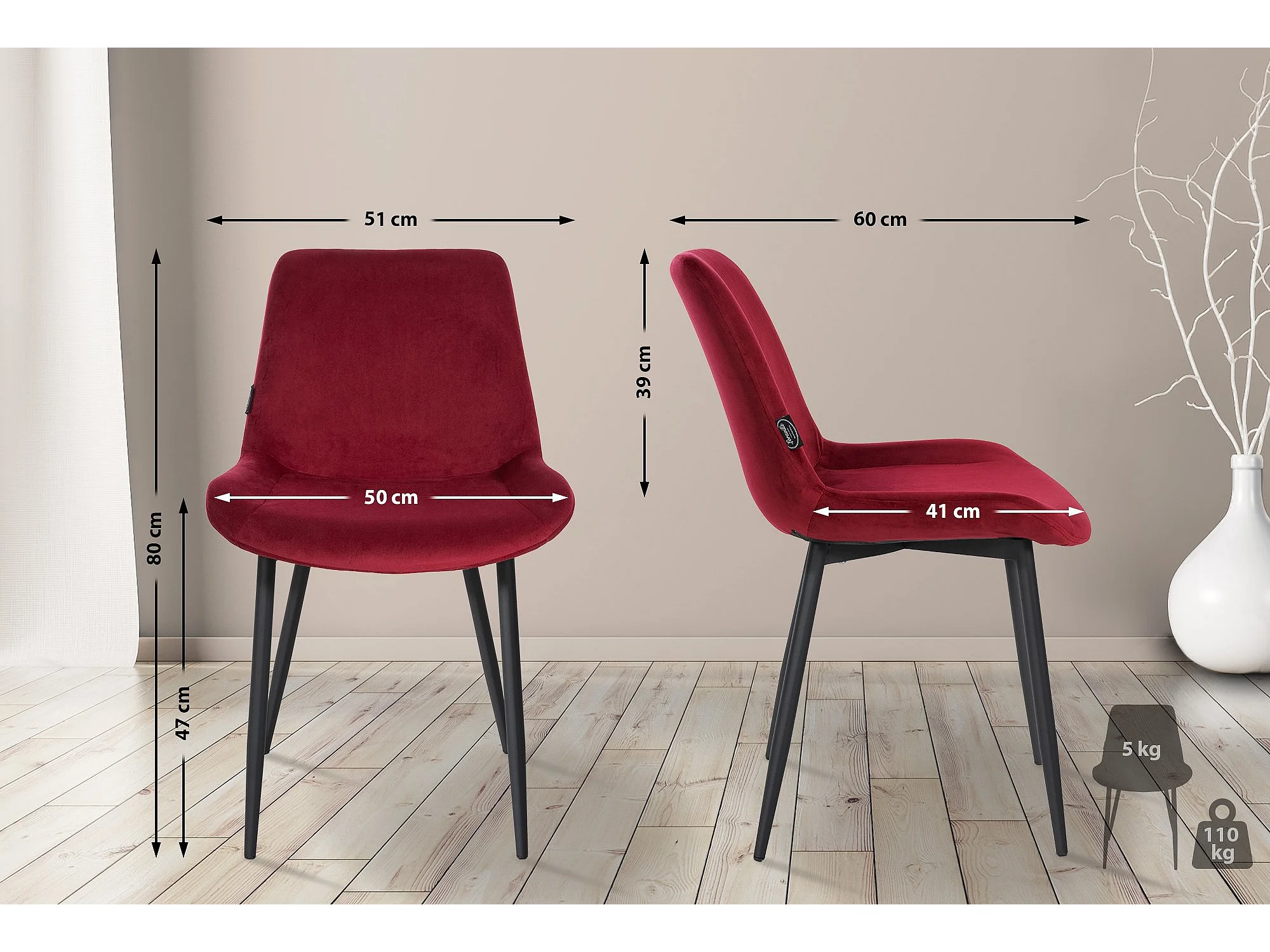 Lot de 4 chaise salle à manger - Velours - Rouge - Victoria