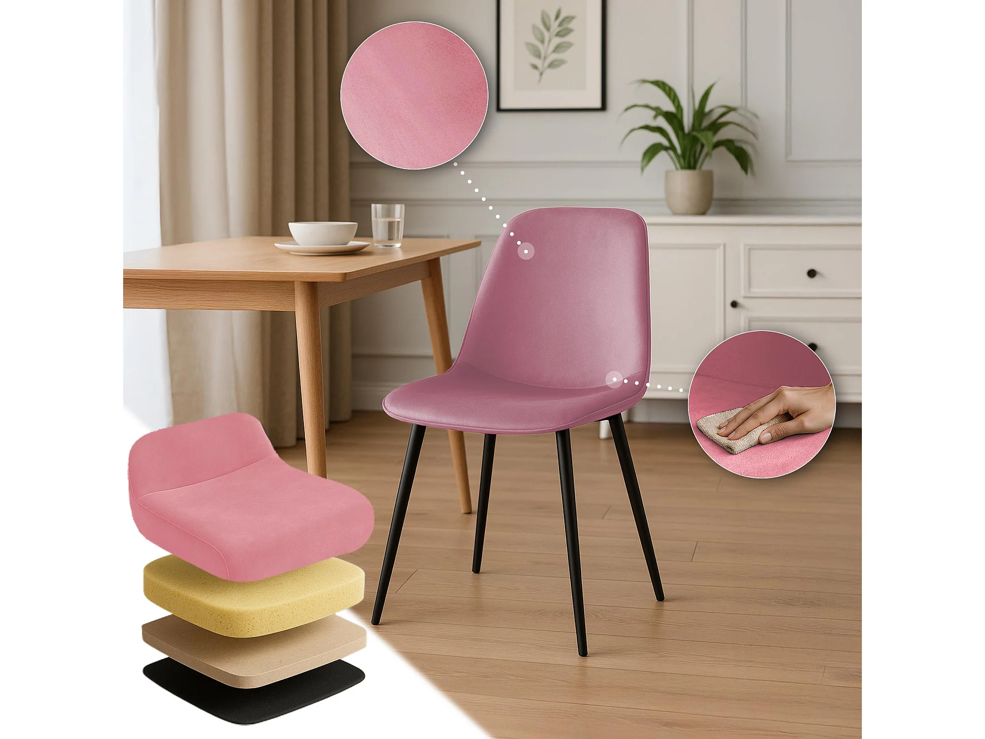 Lot de 4 chaise salle à manger - Velours - Rose - Maryam
