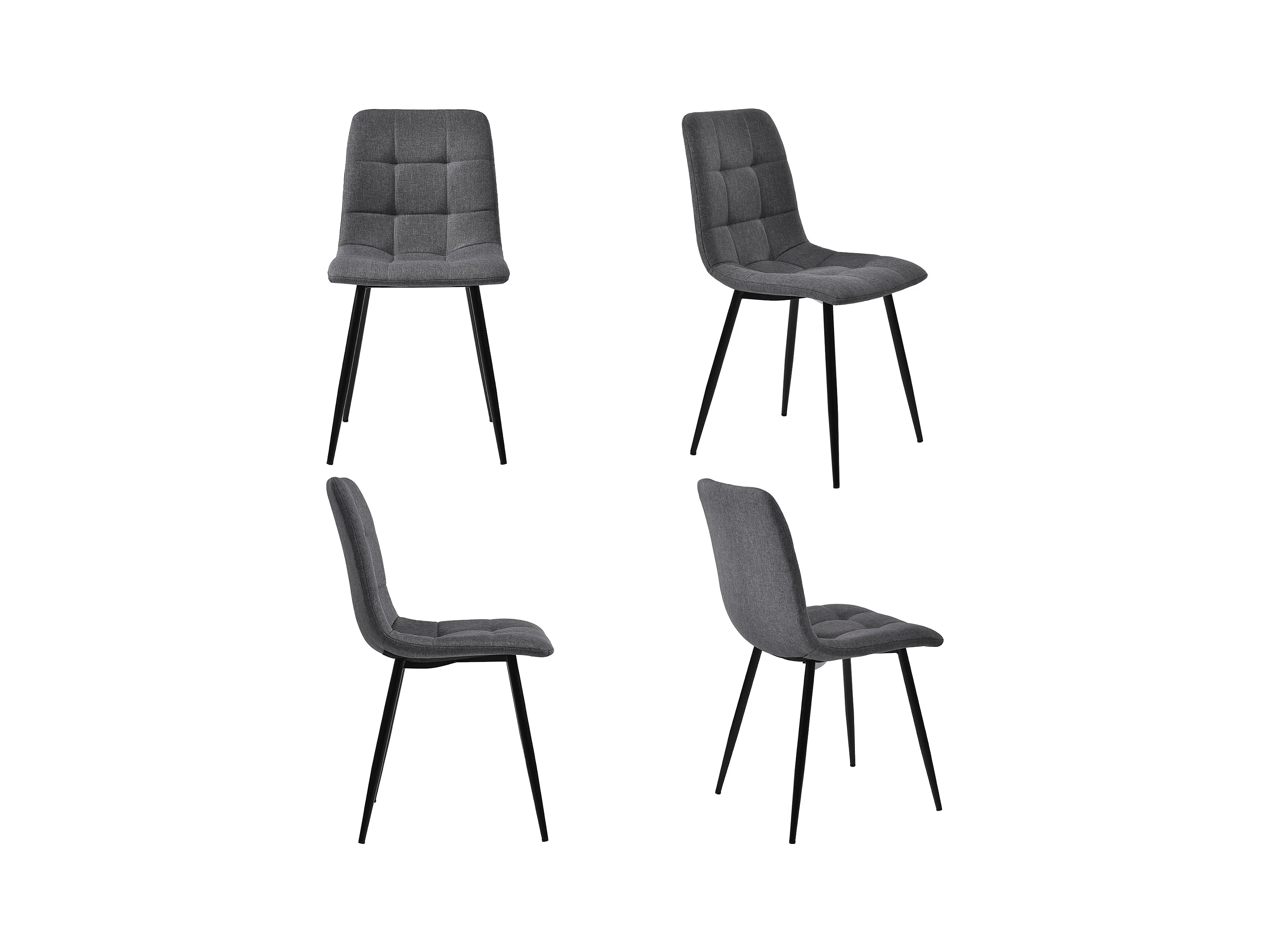Lot de 4 chaises à manger en lin avec dossier rembourré - pieds en métal noir - gris