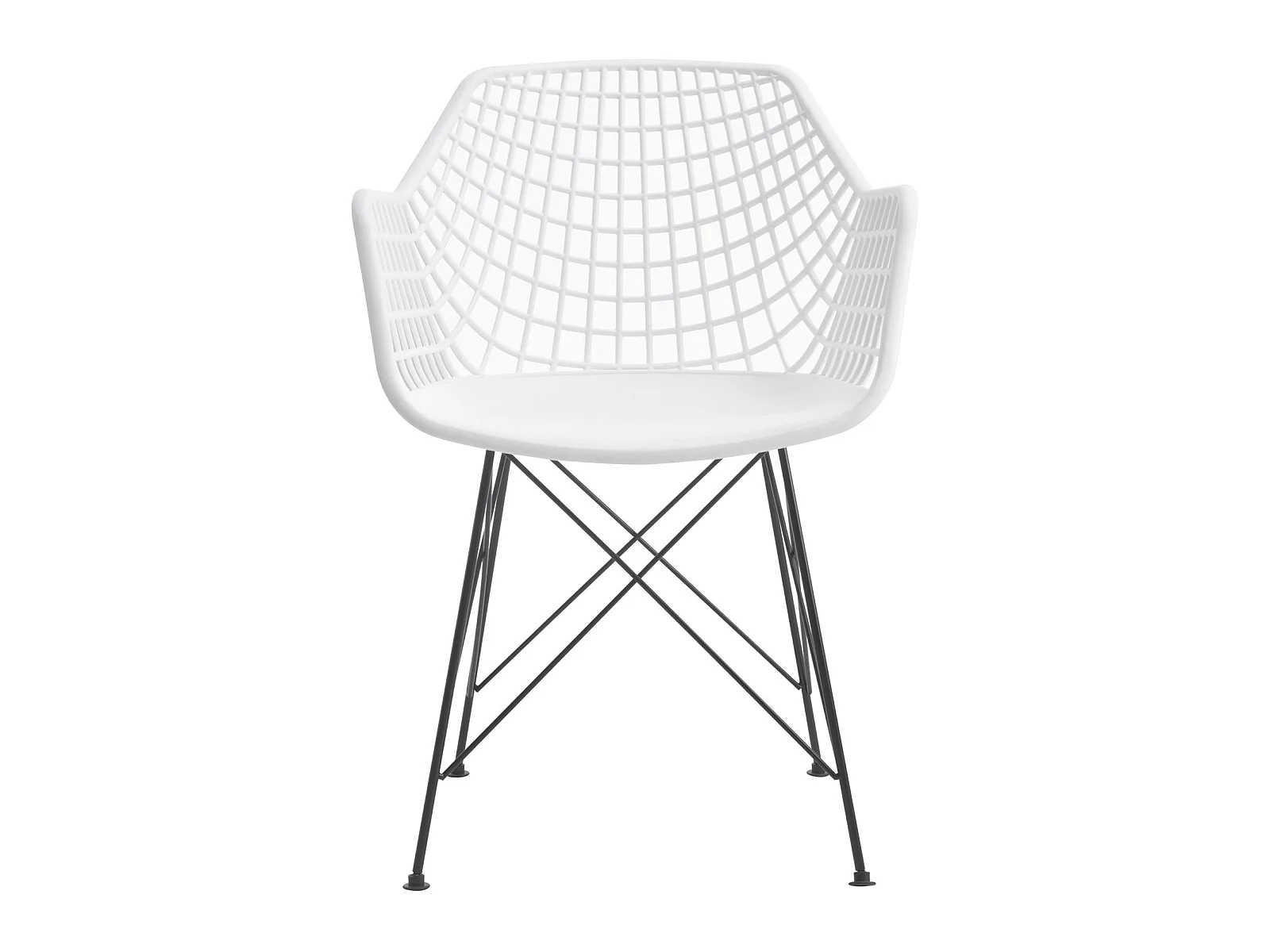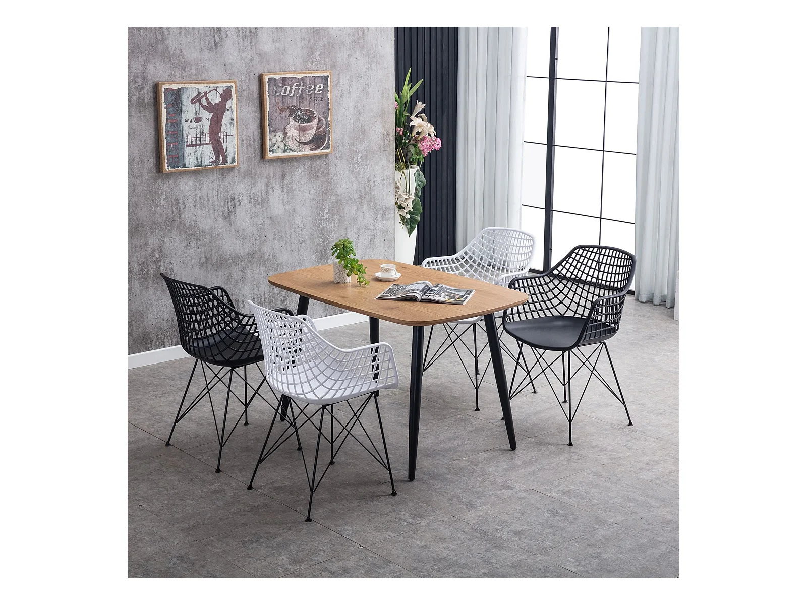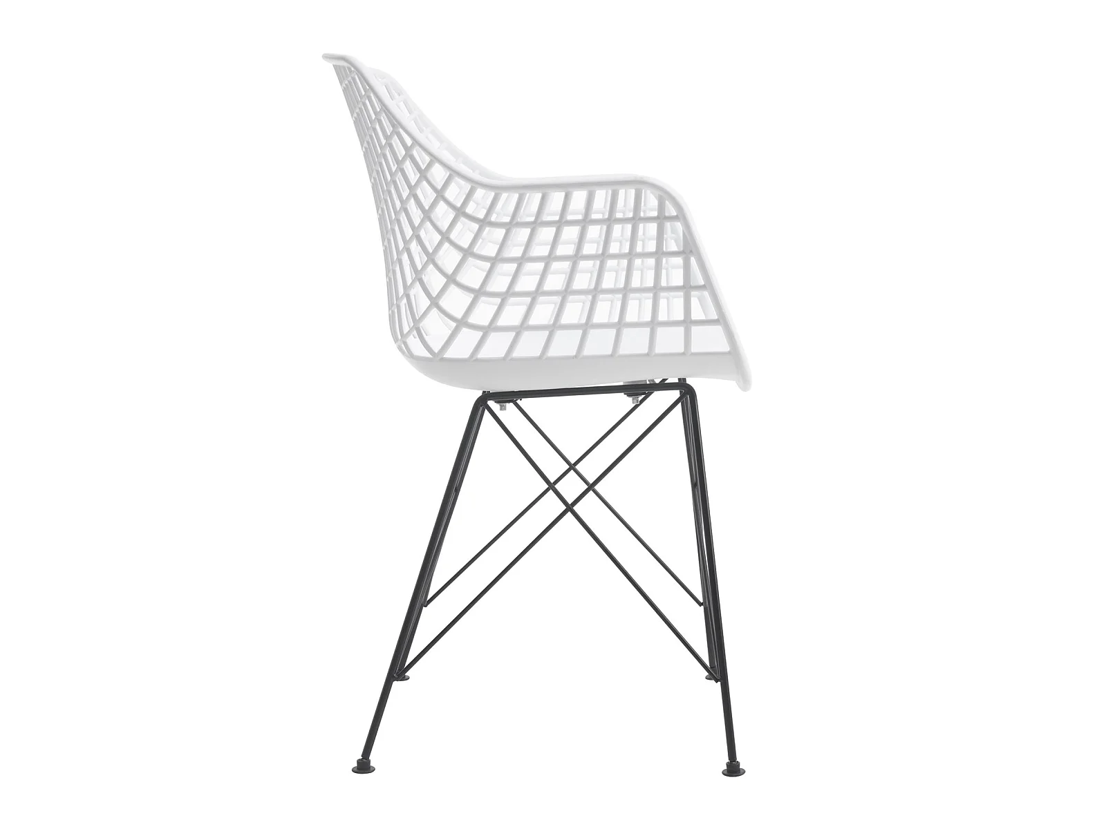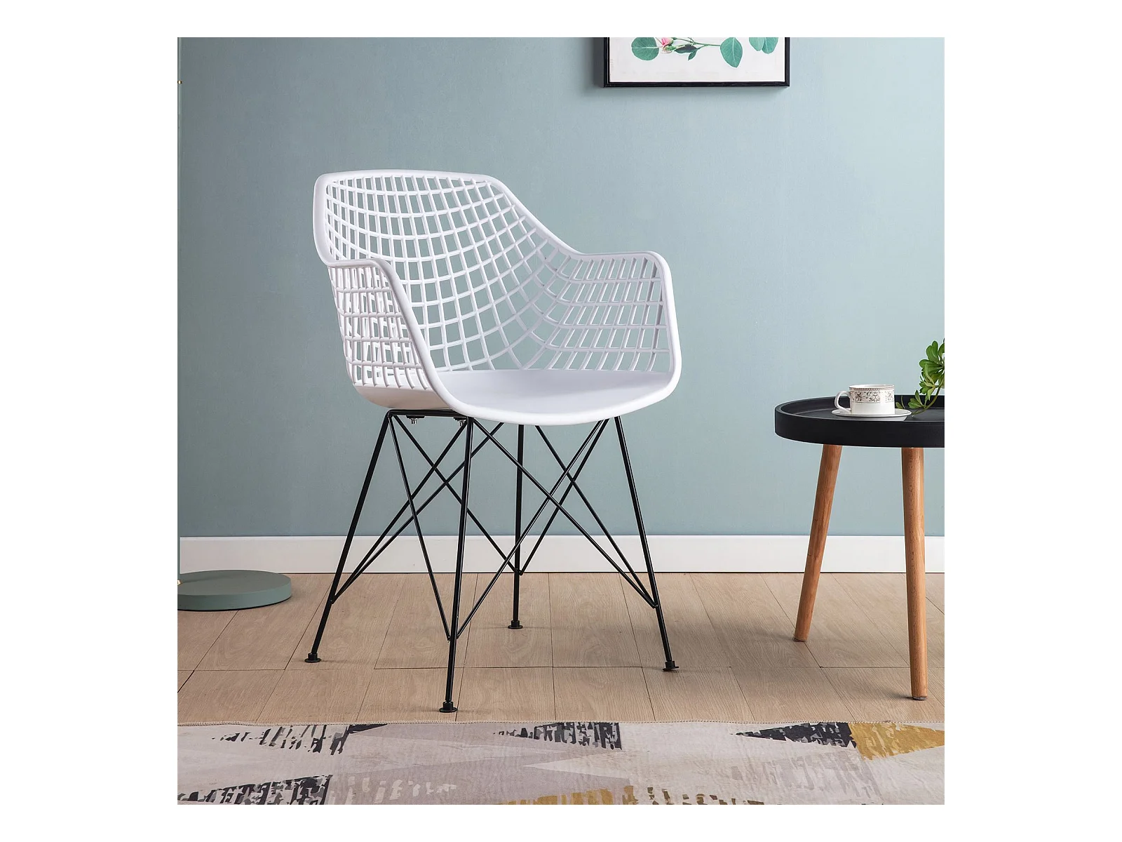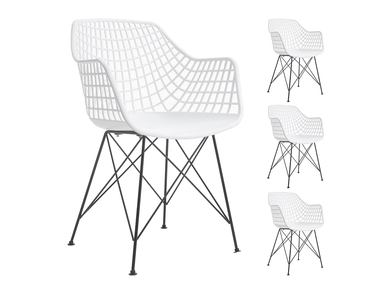 Lot de 4 chaises ALICANTE pour salle à manger ou cuisine design retro avec accoudoirs coque plastique blanc et 4 pieds croisé noir