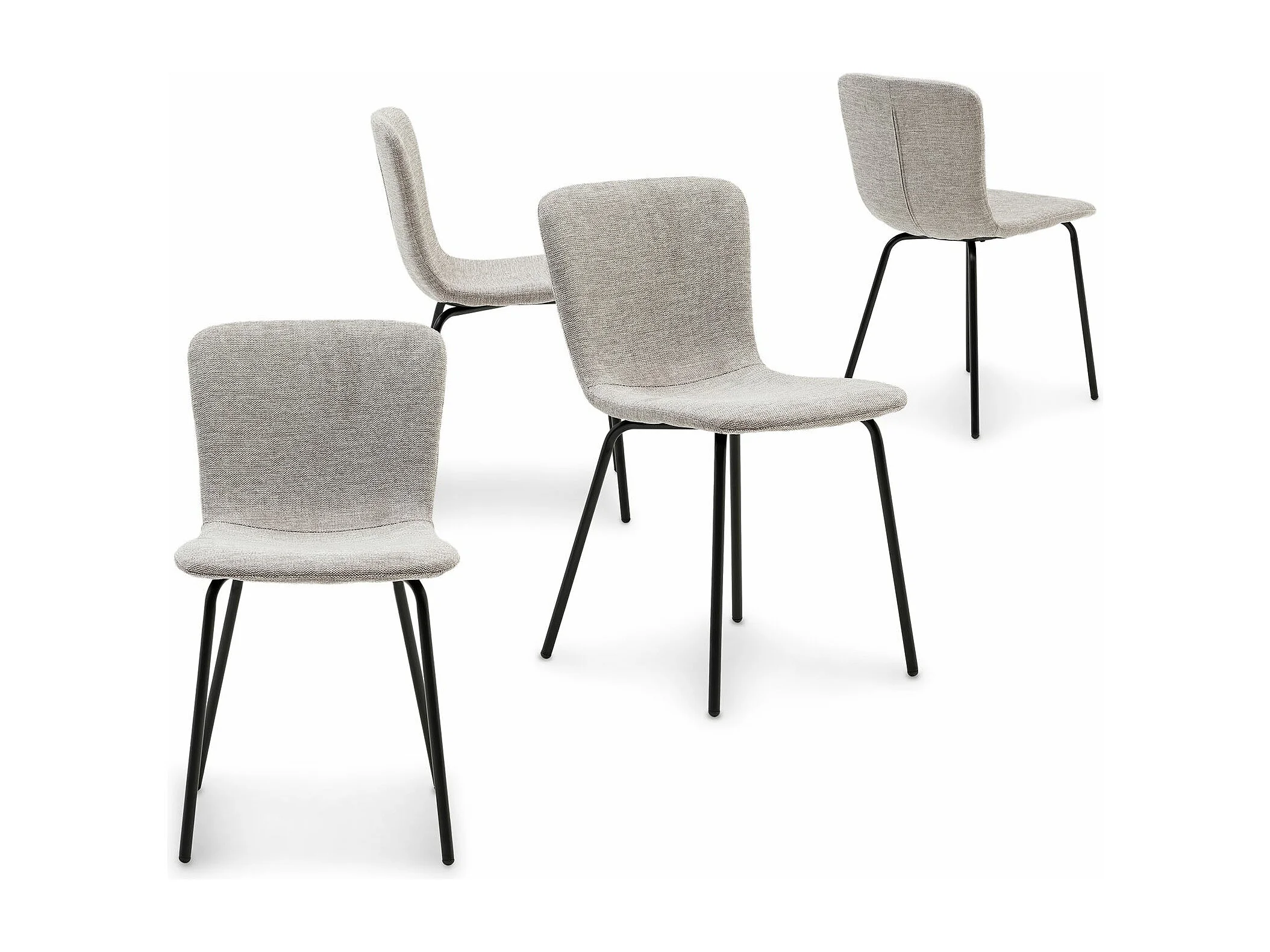 Chaise tissu gris clair et pieds métal noir Karlane - Lot de 4