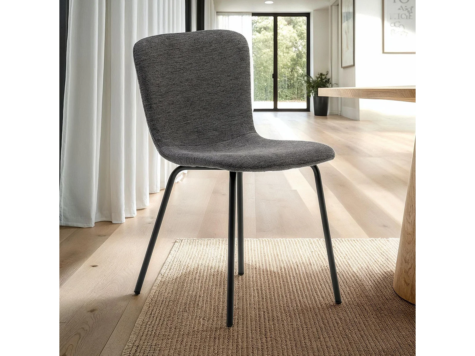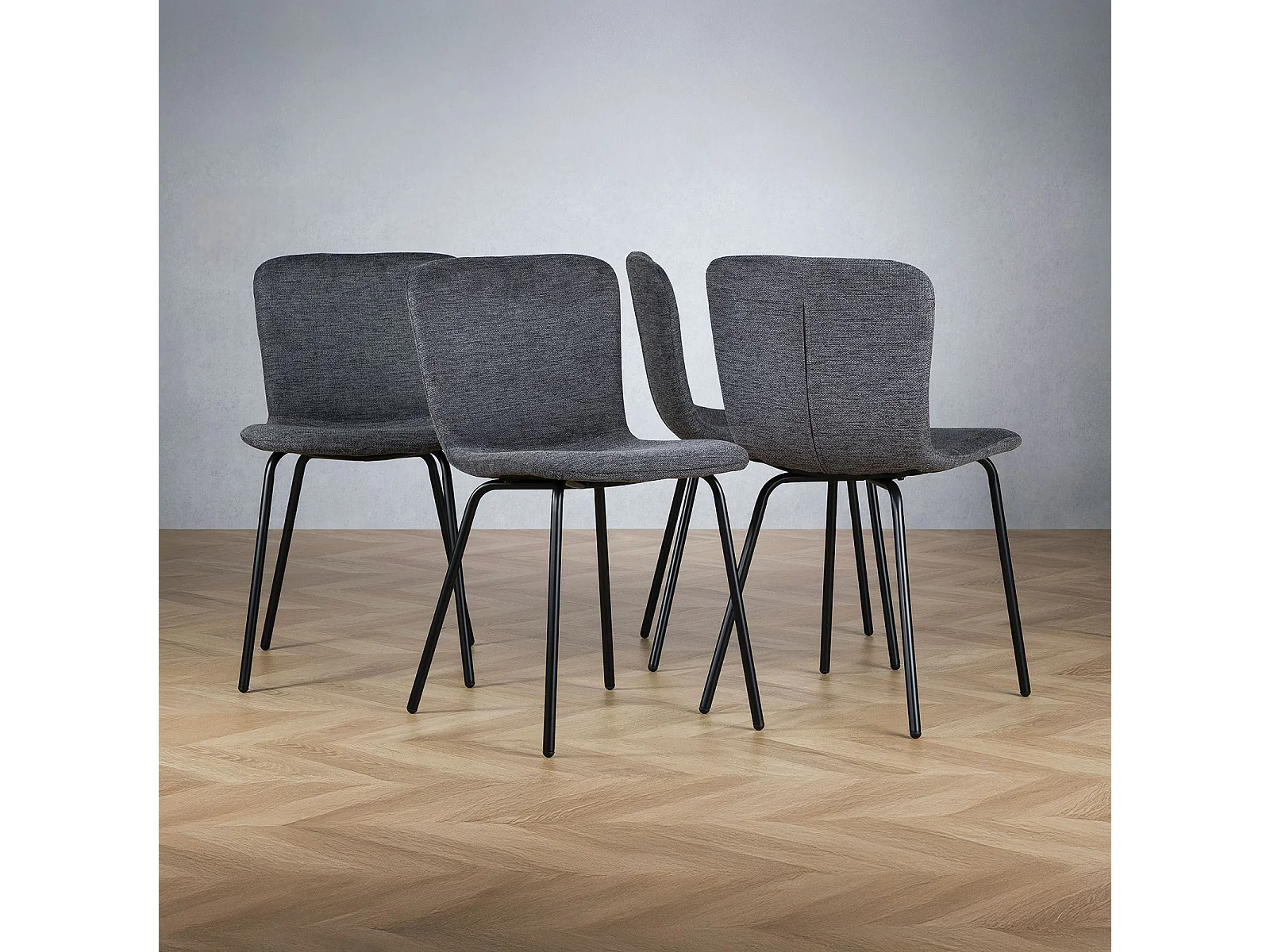 Lot de 4 chaises AUDREY avec revêtement en tissu noir et structure en métal noir, chaise de salle à manger