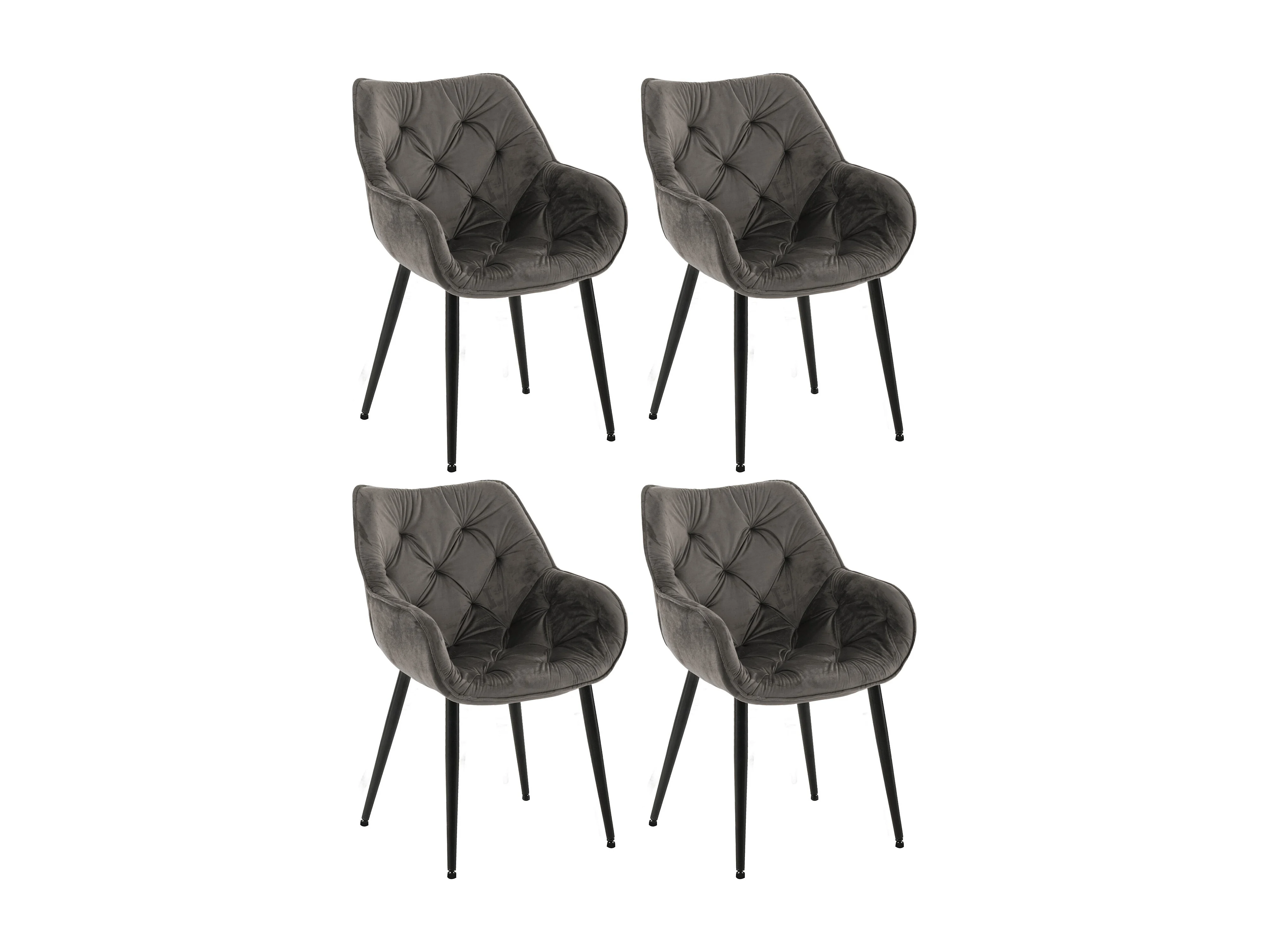 Lot de 4 chaises avec accoudoirs - Velours - Anthracite - Tanna