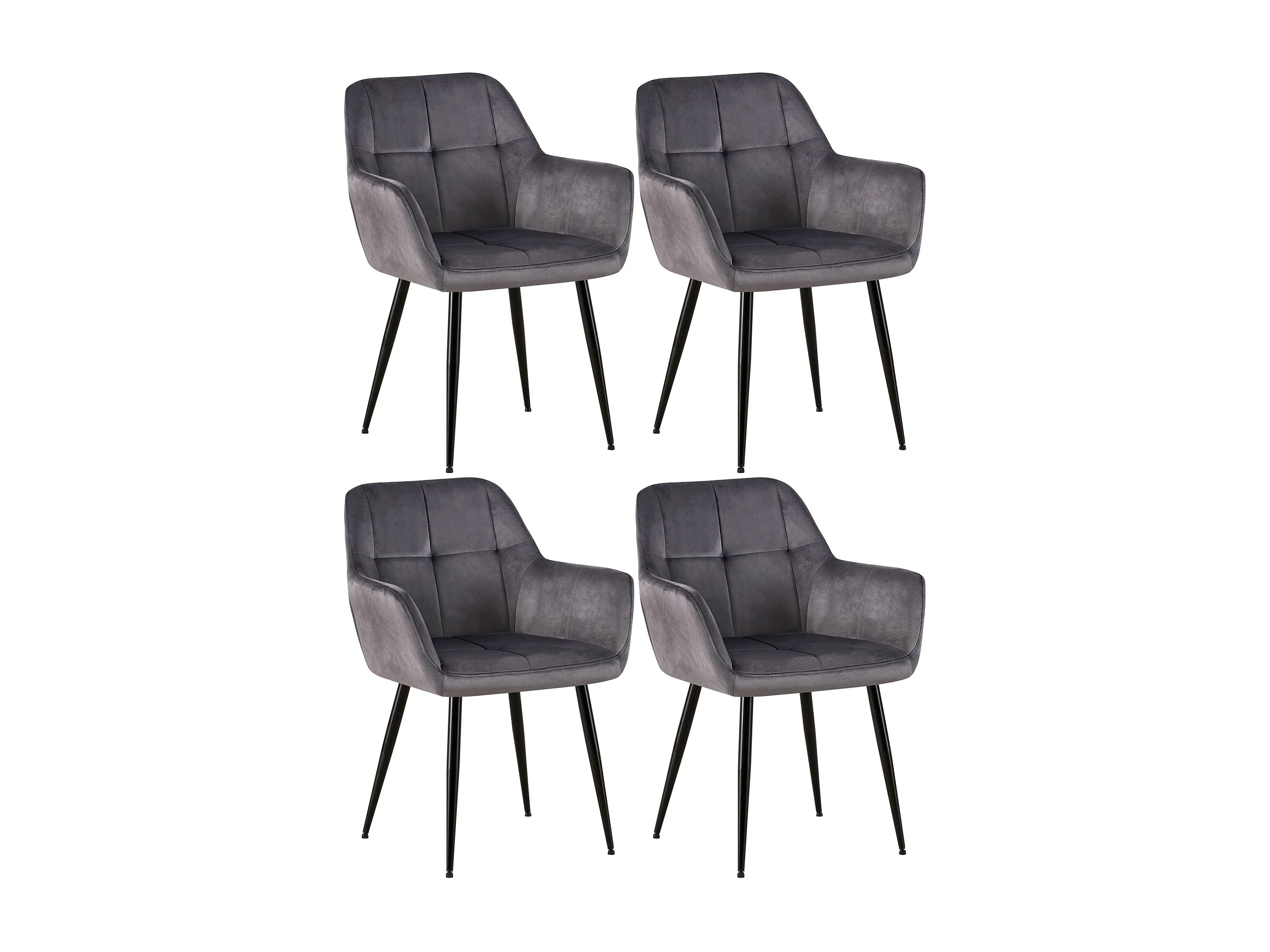 Lot de 4 chaises avec accoudoirs - Velours - Gris - Emia