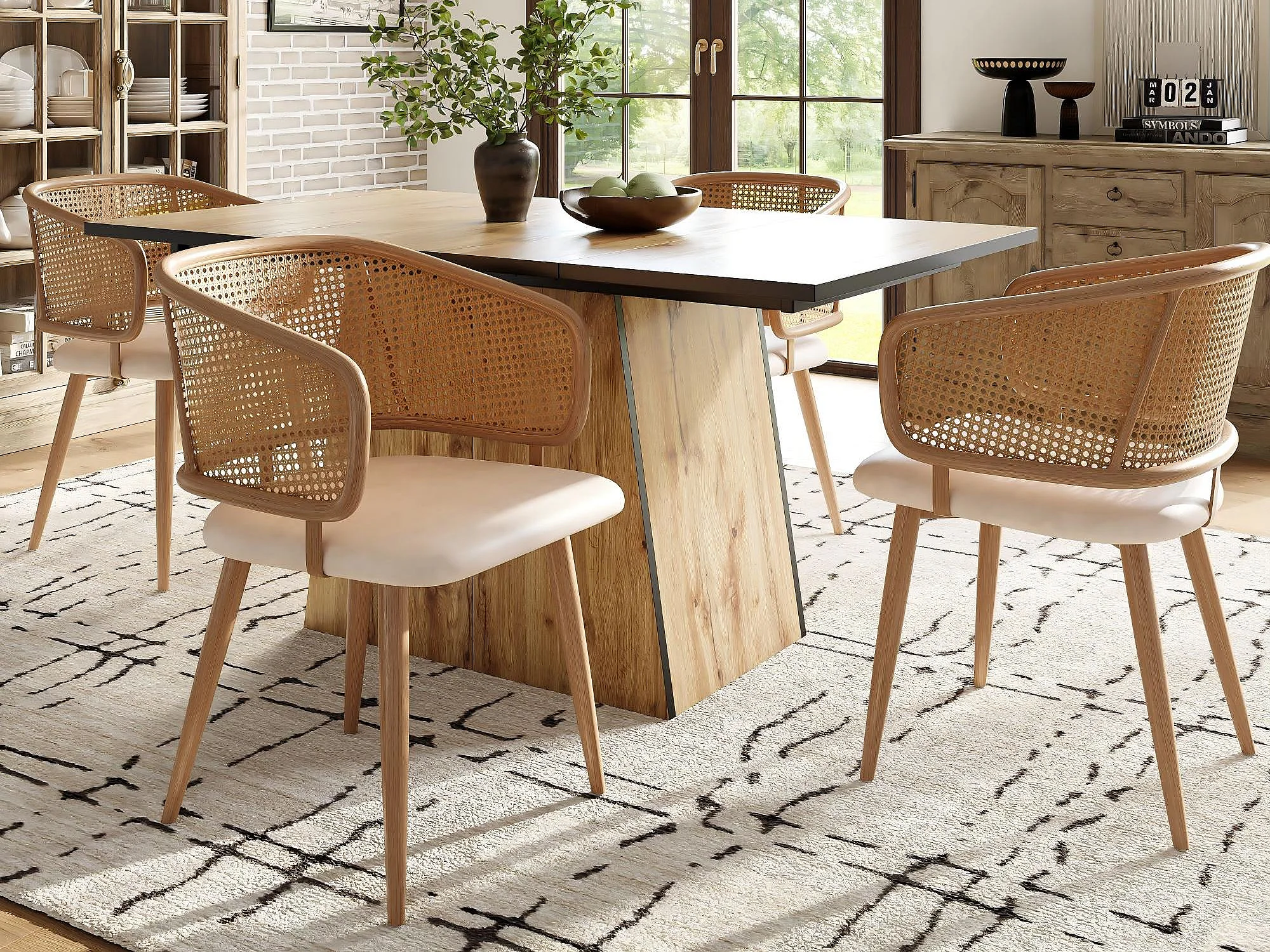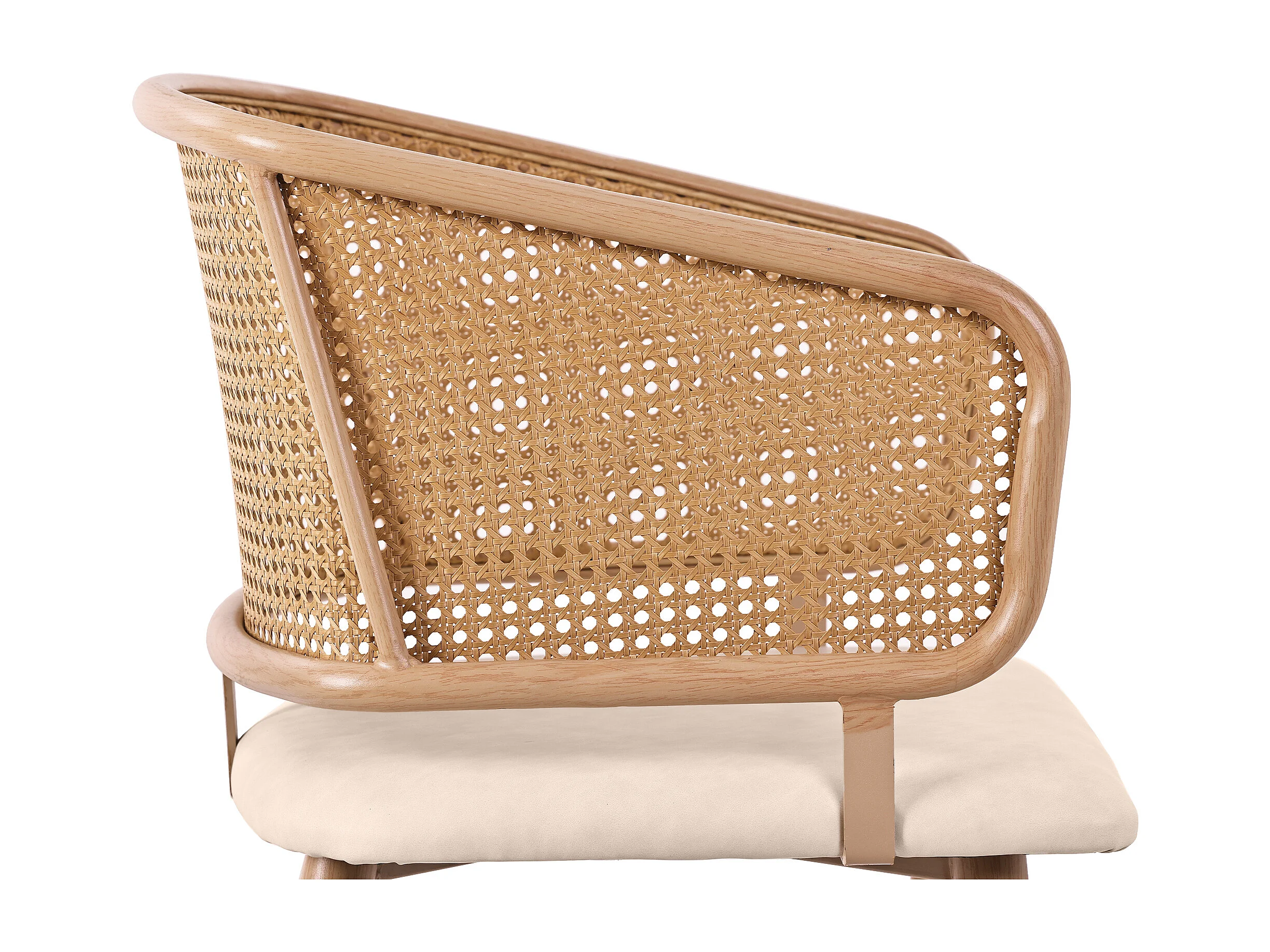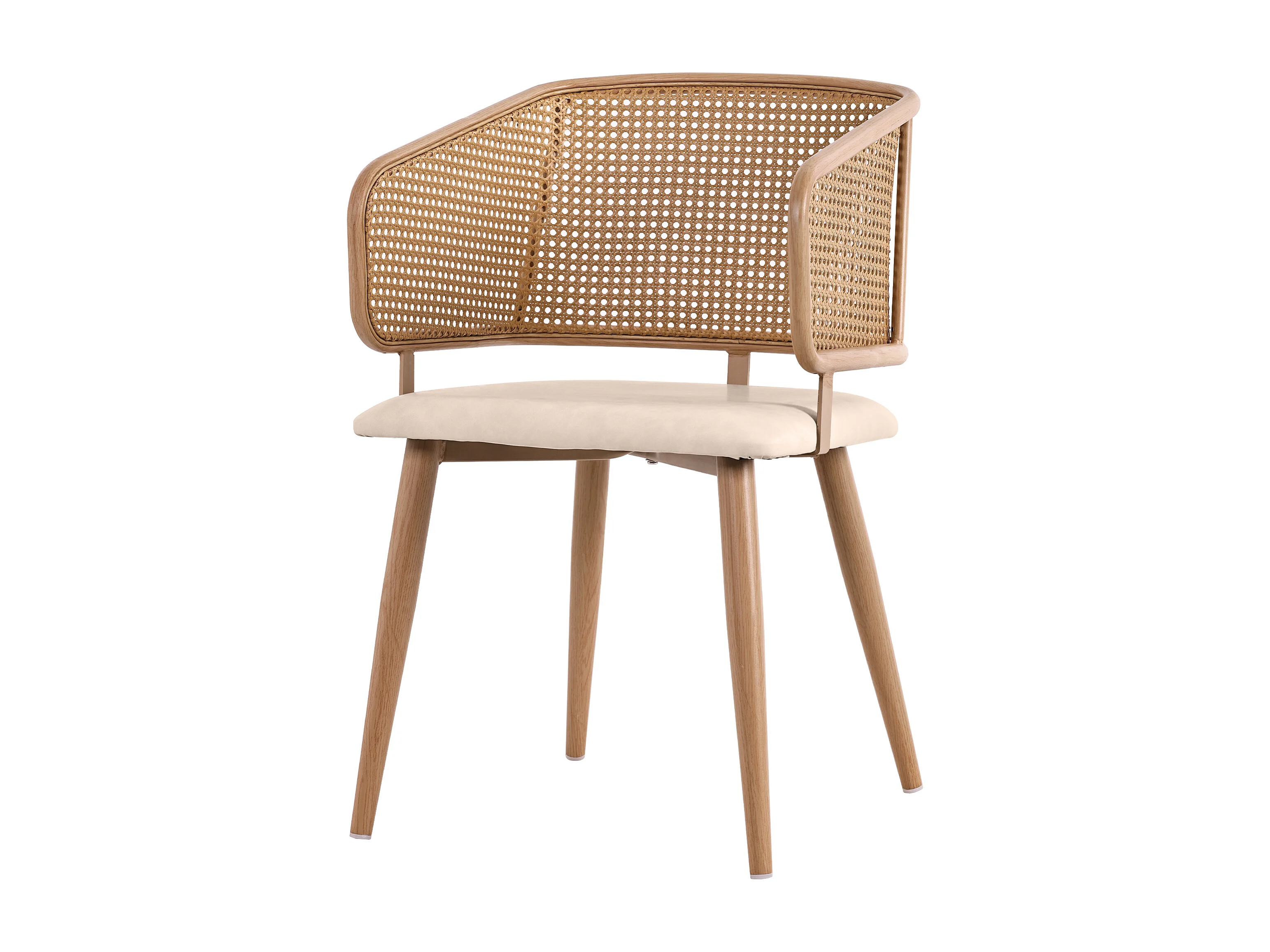 Lot de 4 chaises avec dossier en rotin - coussins en similicuir beige - pieds en métal - Marron