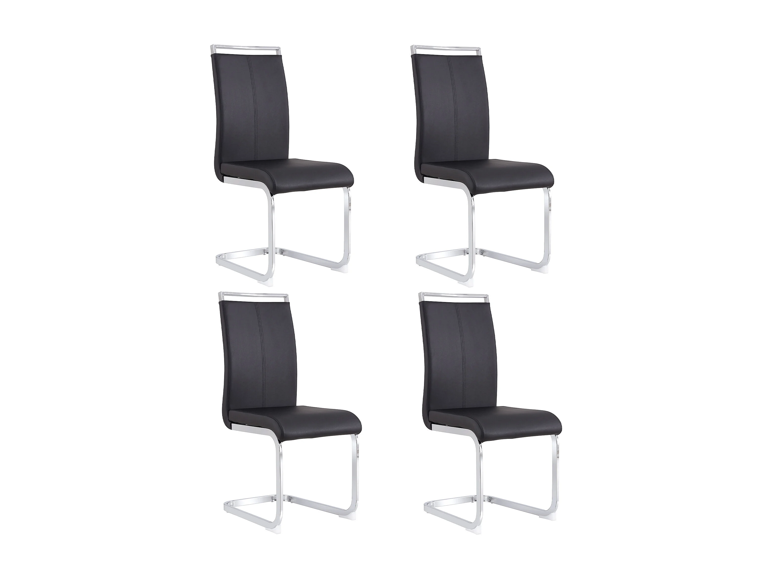 Lot de 4 chaises cantilevers en PU noir avec cadre en métal argenté