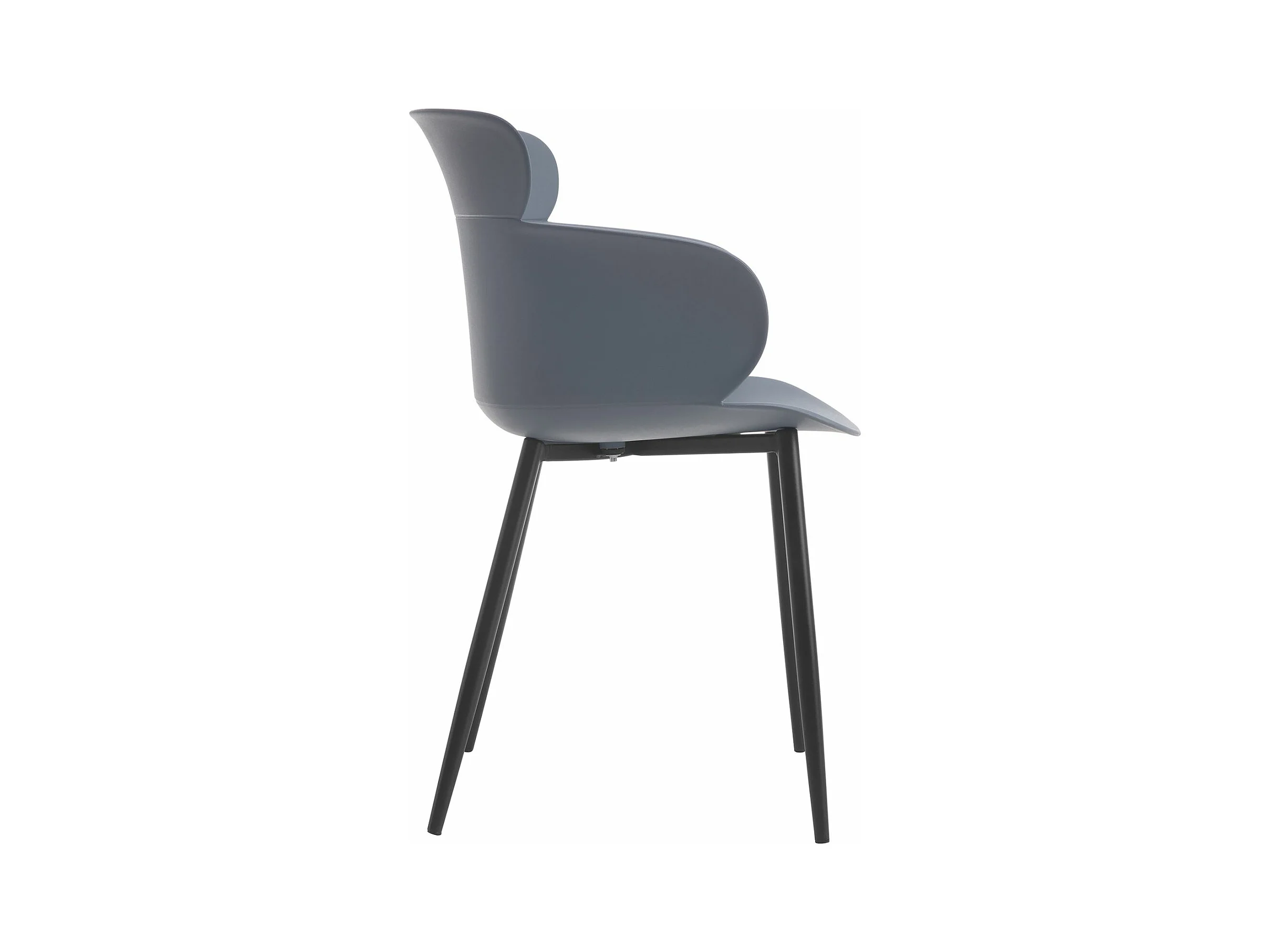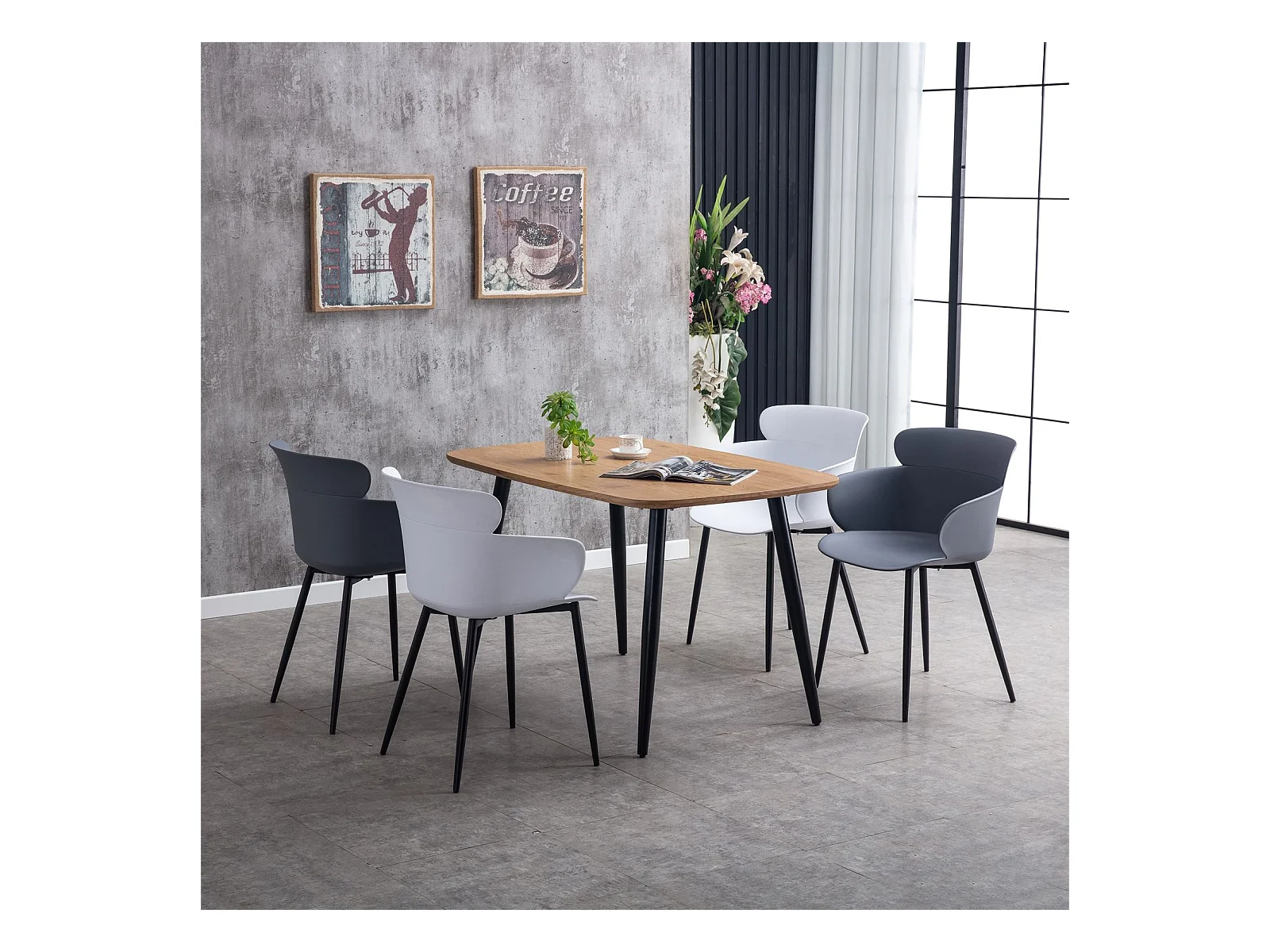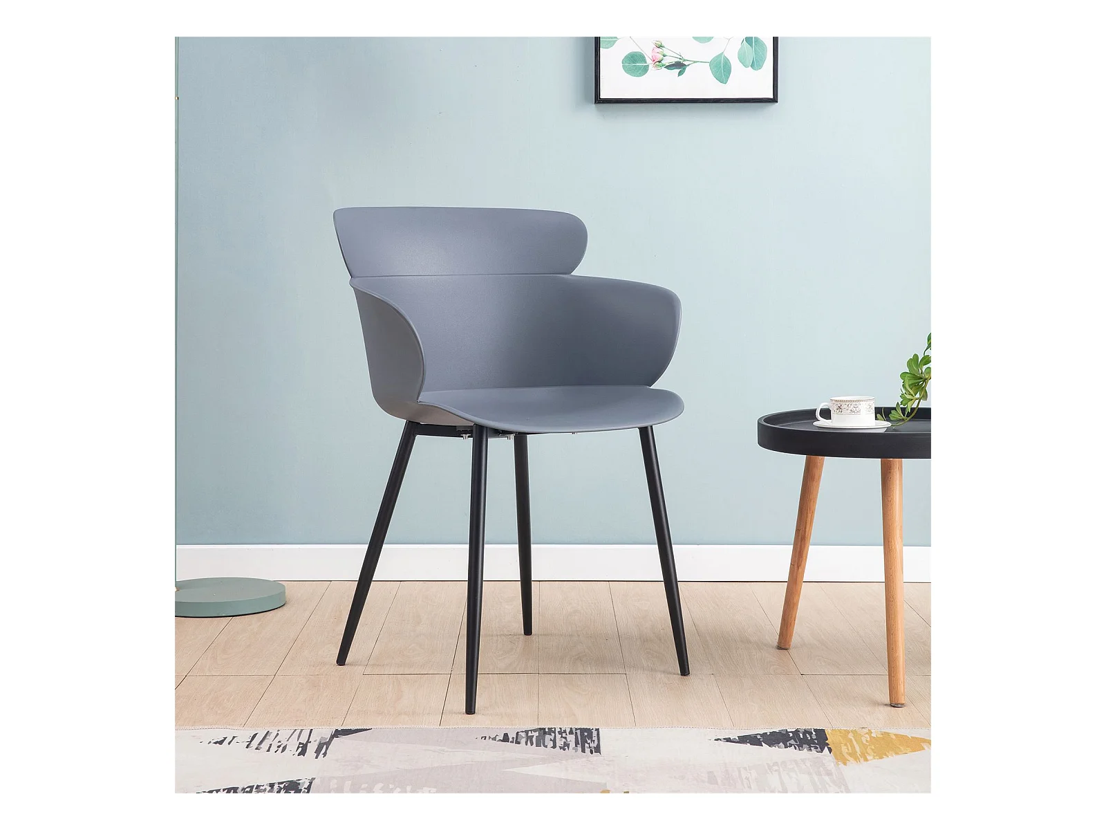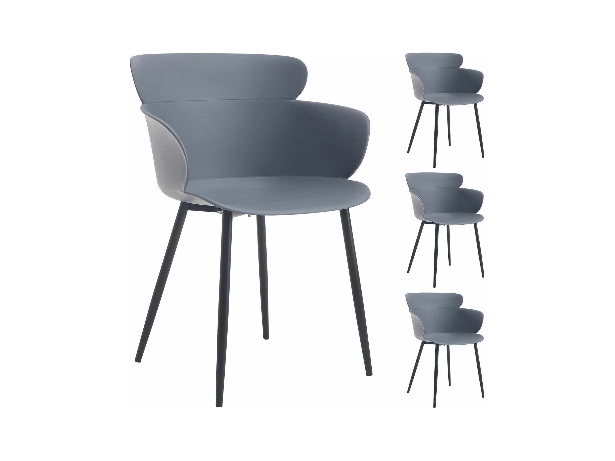 Lot de 4 chaises CATCH salle à manger ou cuisine design retro avec larges accoudoirs, coque en plastique gris et 4 pieds métal