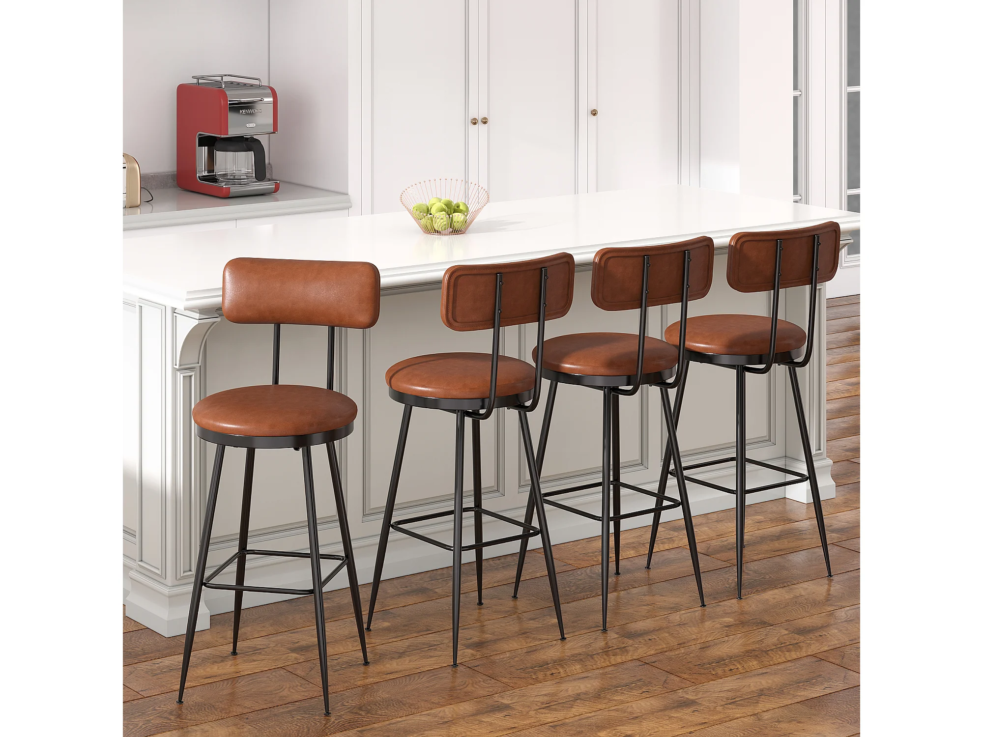 Lot de 4 Chaises de Bar avec Dossier, Simili Cuir Marron, 65cm Hauteur d'Assise