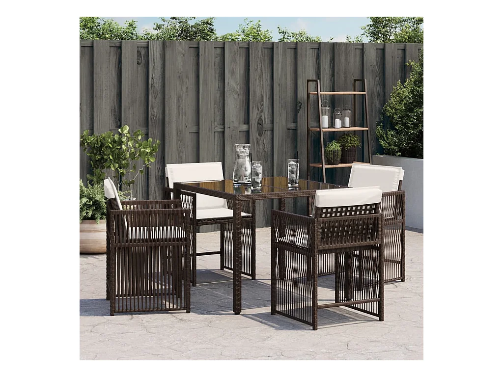 Lot de 4 Chaises de jardin avec coussins marron résine tressée FR378611