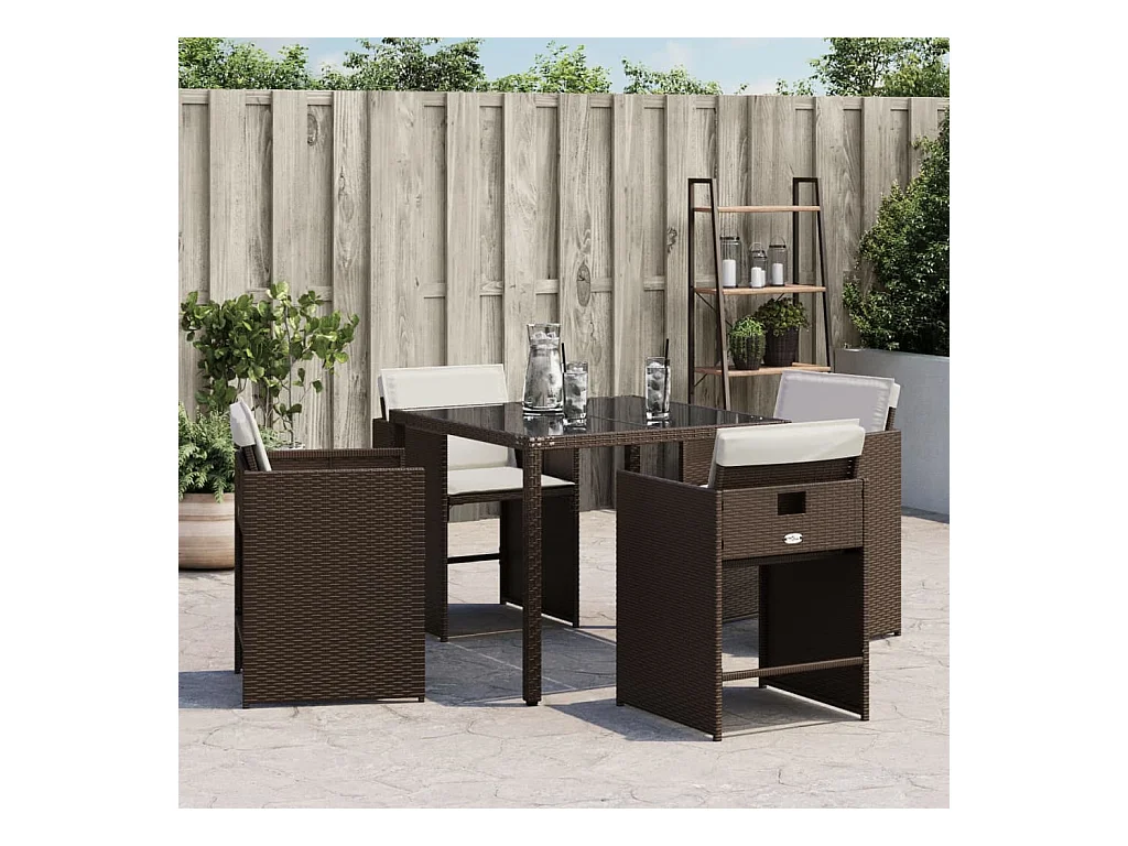 Lot de 4 Chaises de jardin avec coussins marron résine tressée FR67346