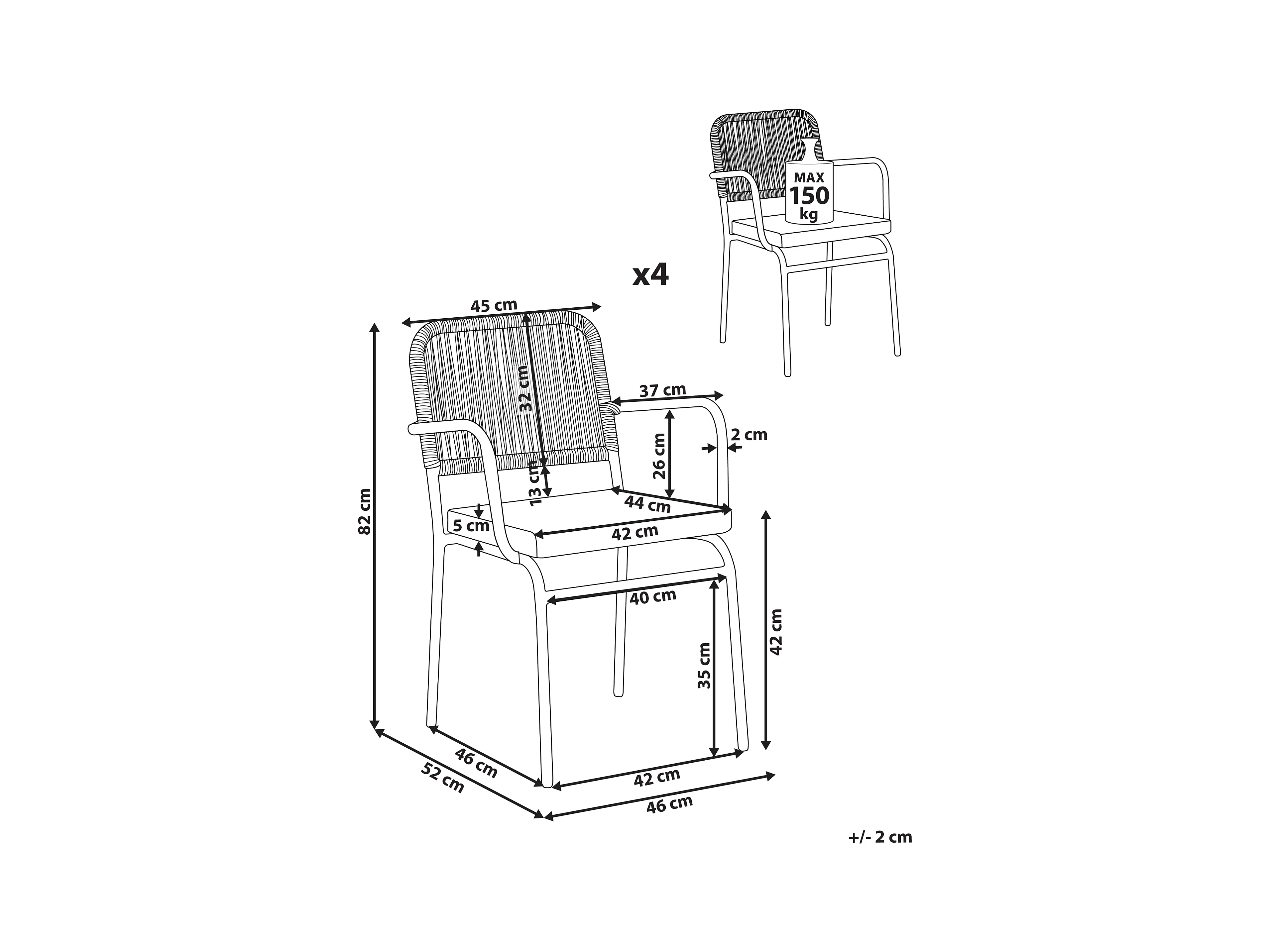 Lot de 4 chaises de jardin avec coussins TACENO Métal Gris