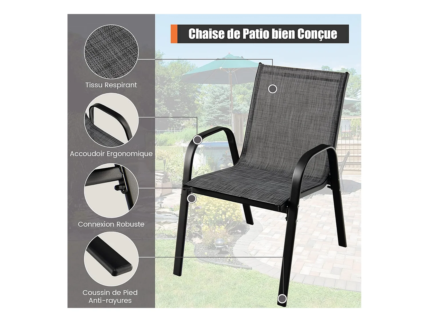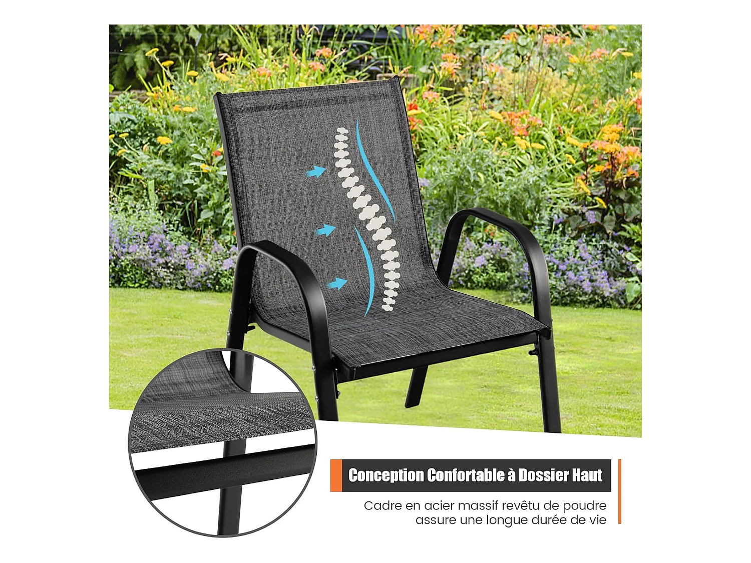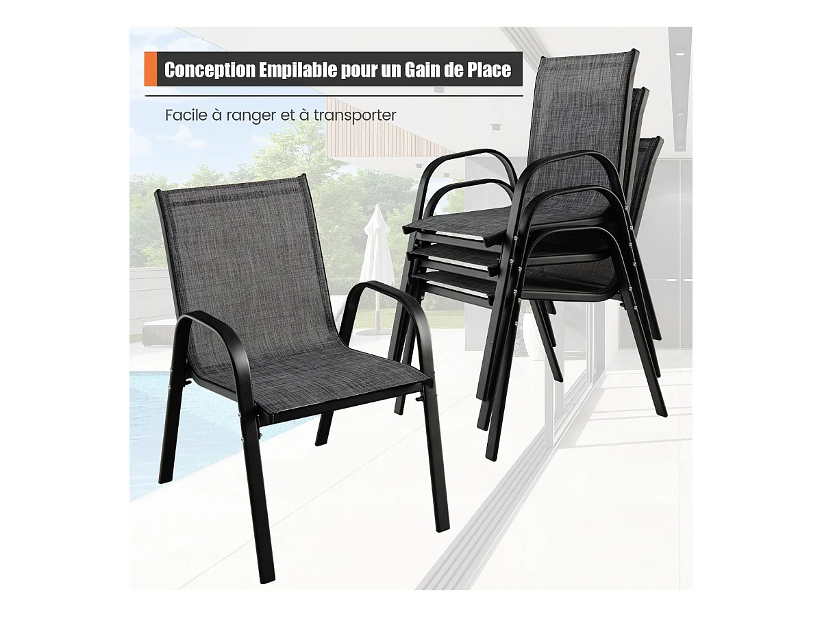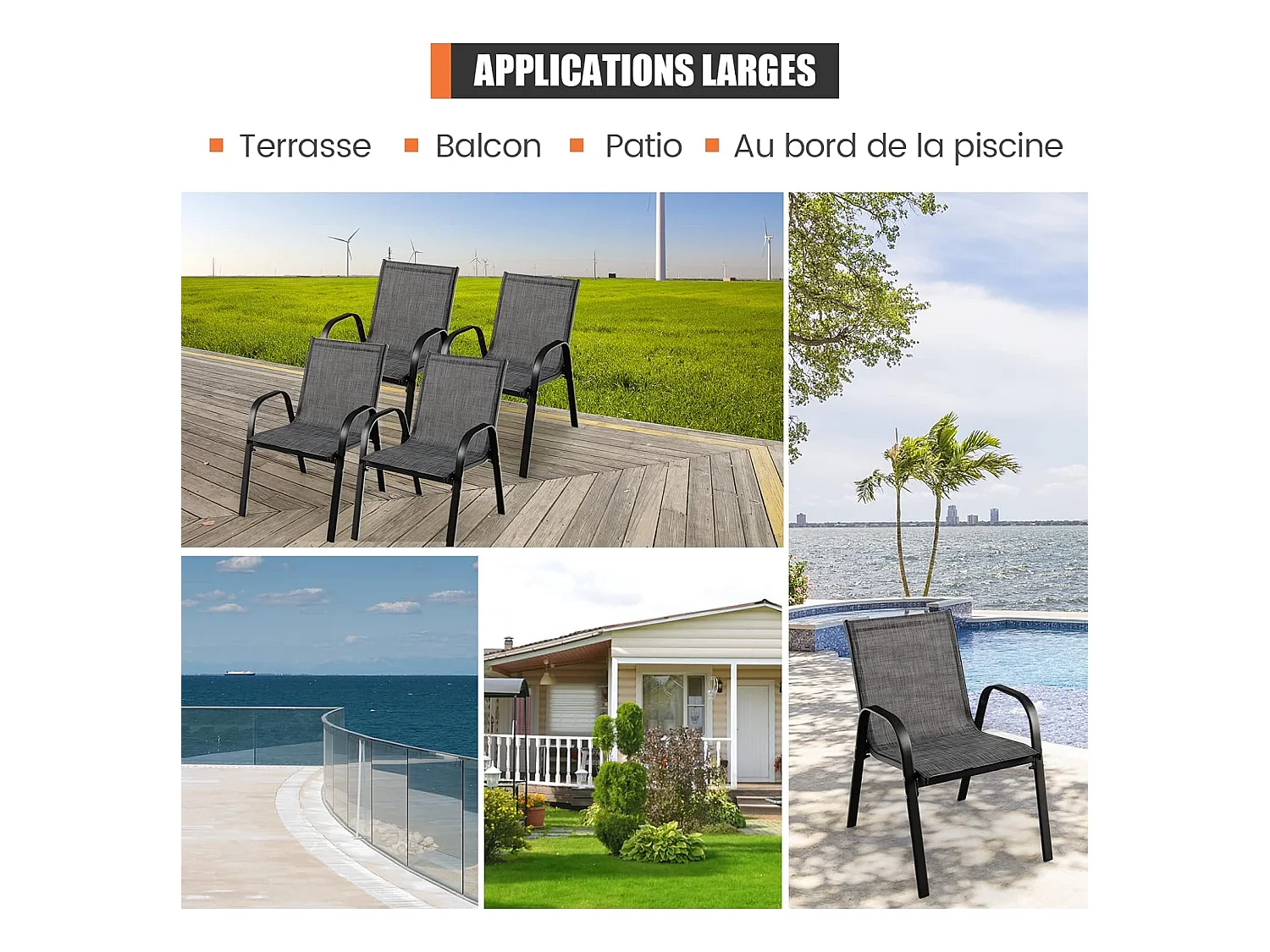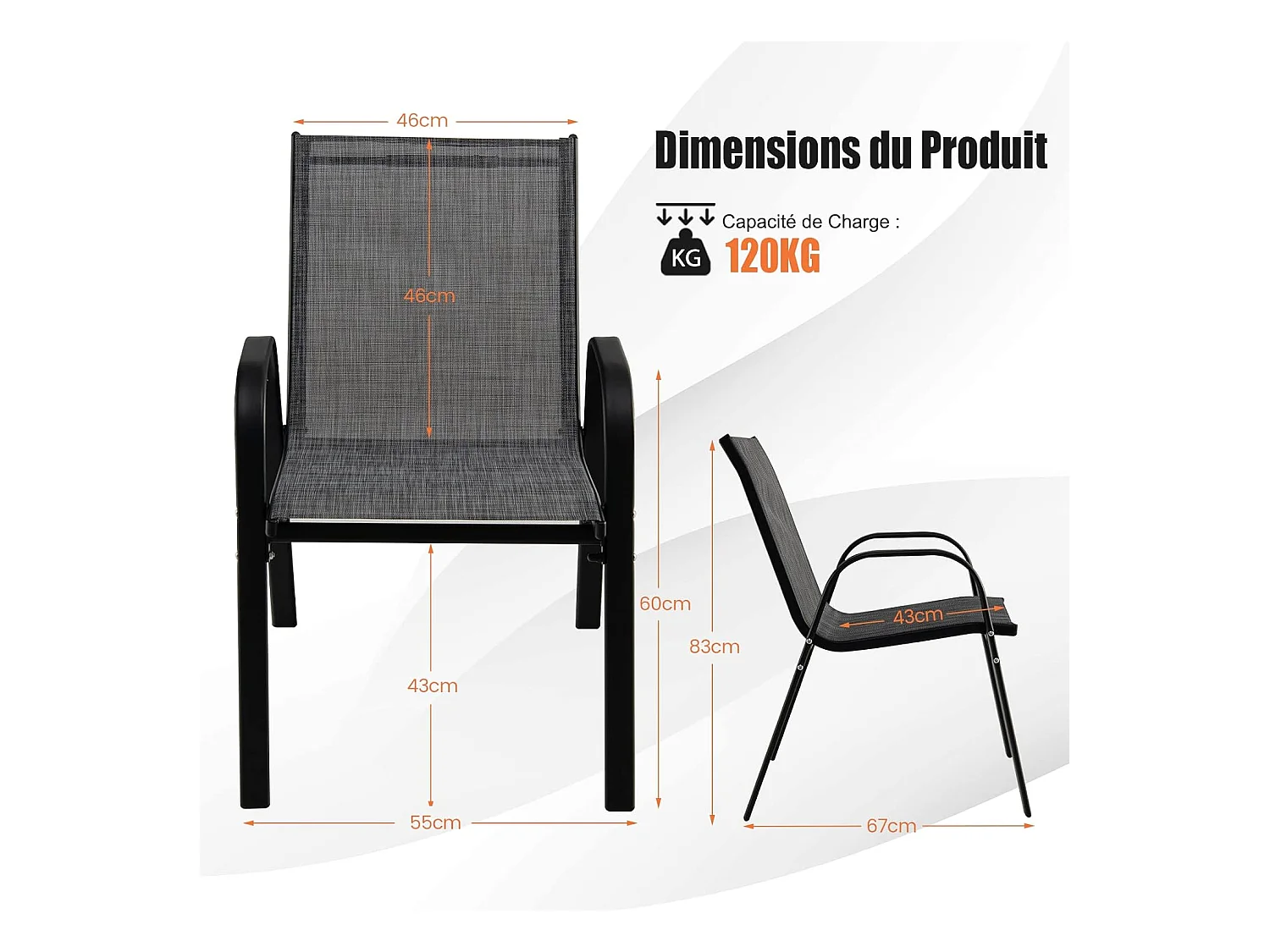 Lot de 4 Chaises de Jardin Empilables - Chaises à Manger en Métal - 46 x 41 x 86 cm - Gris