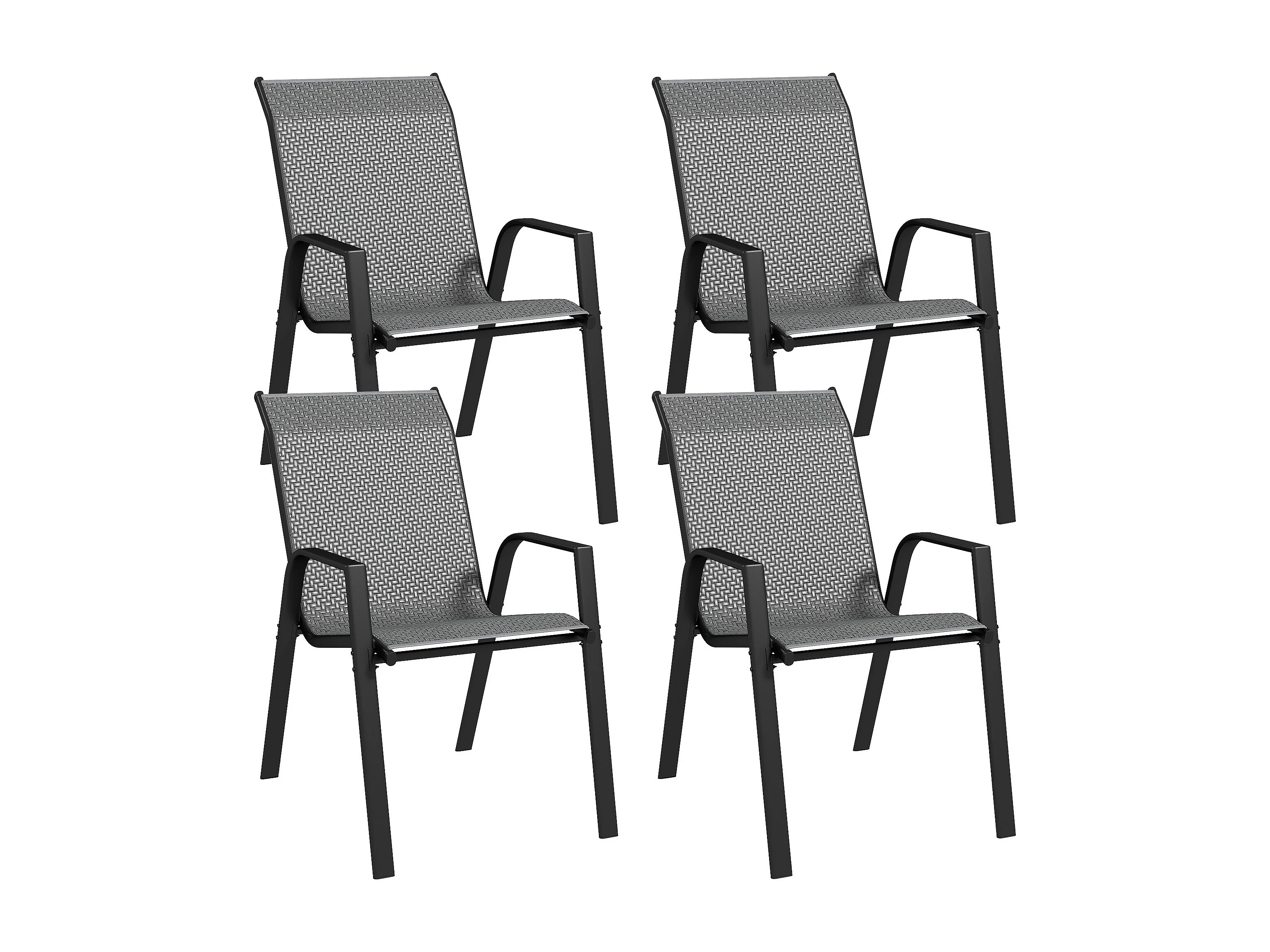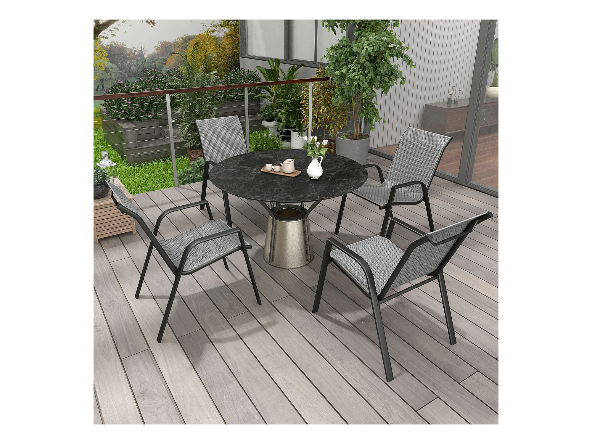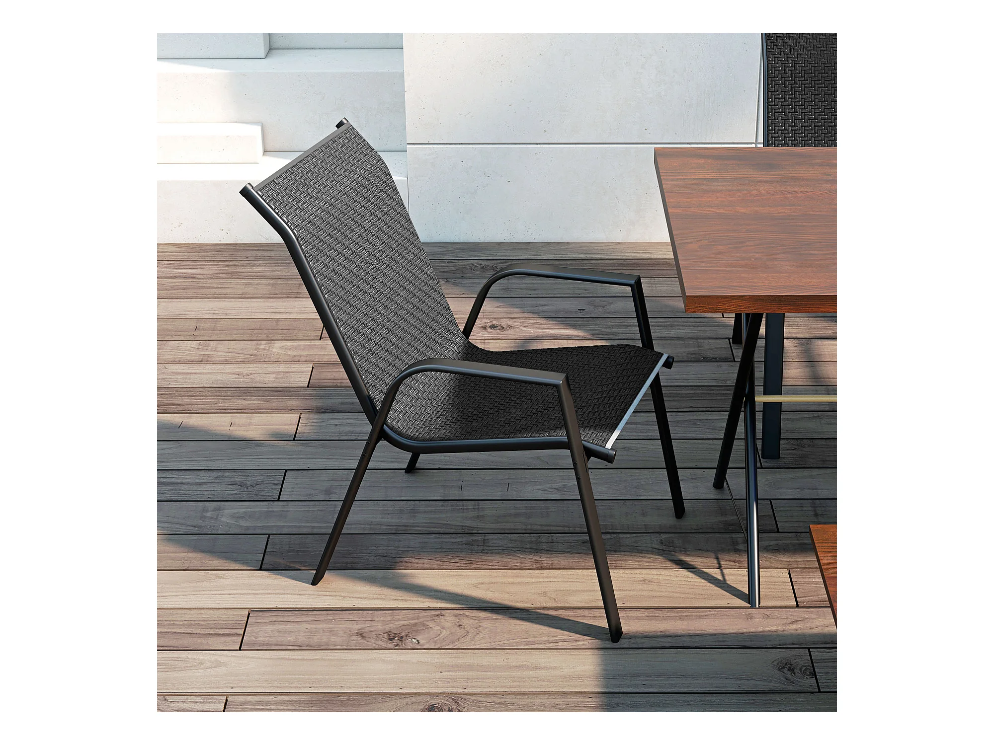 Lot de 4 chaises de jardin empilables - accoudoirs - design - acier époxy noir résine tressée grise