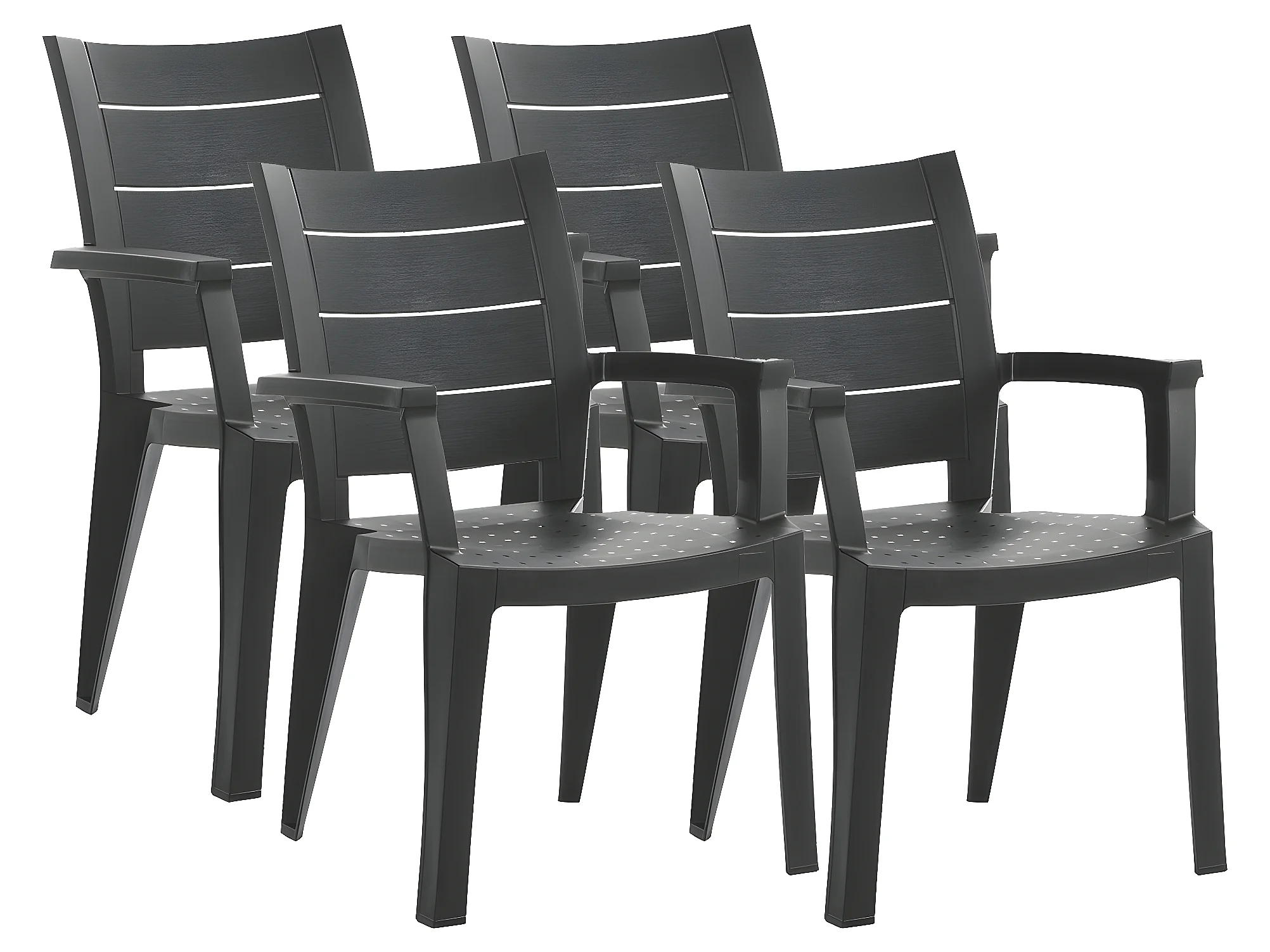 Lot de 4 chaises de jardin empilables en résine coloris Gris - Longueur 59 x Profondeur 60 x Hauteur 90 cm