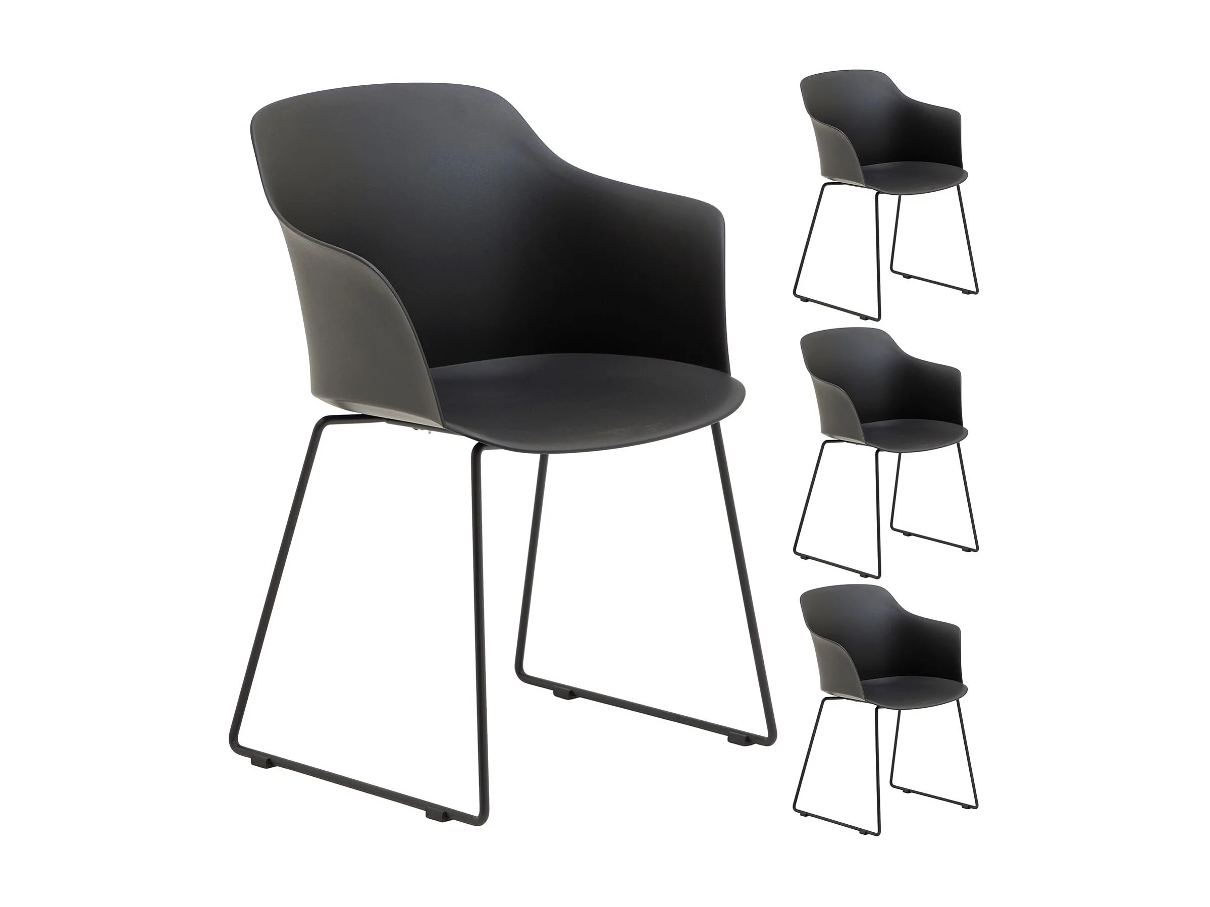 Lot de 4 chaises de jardin FORO fauteuil d'extérieur en plastique blanc résistant aux UV et pieds en métal noir
