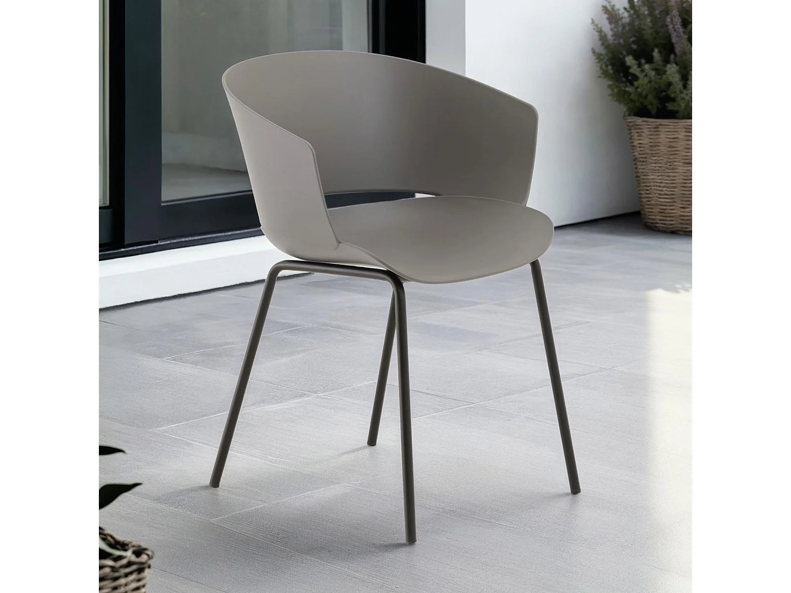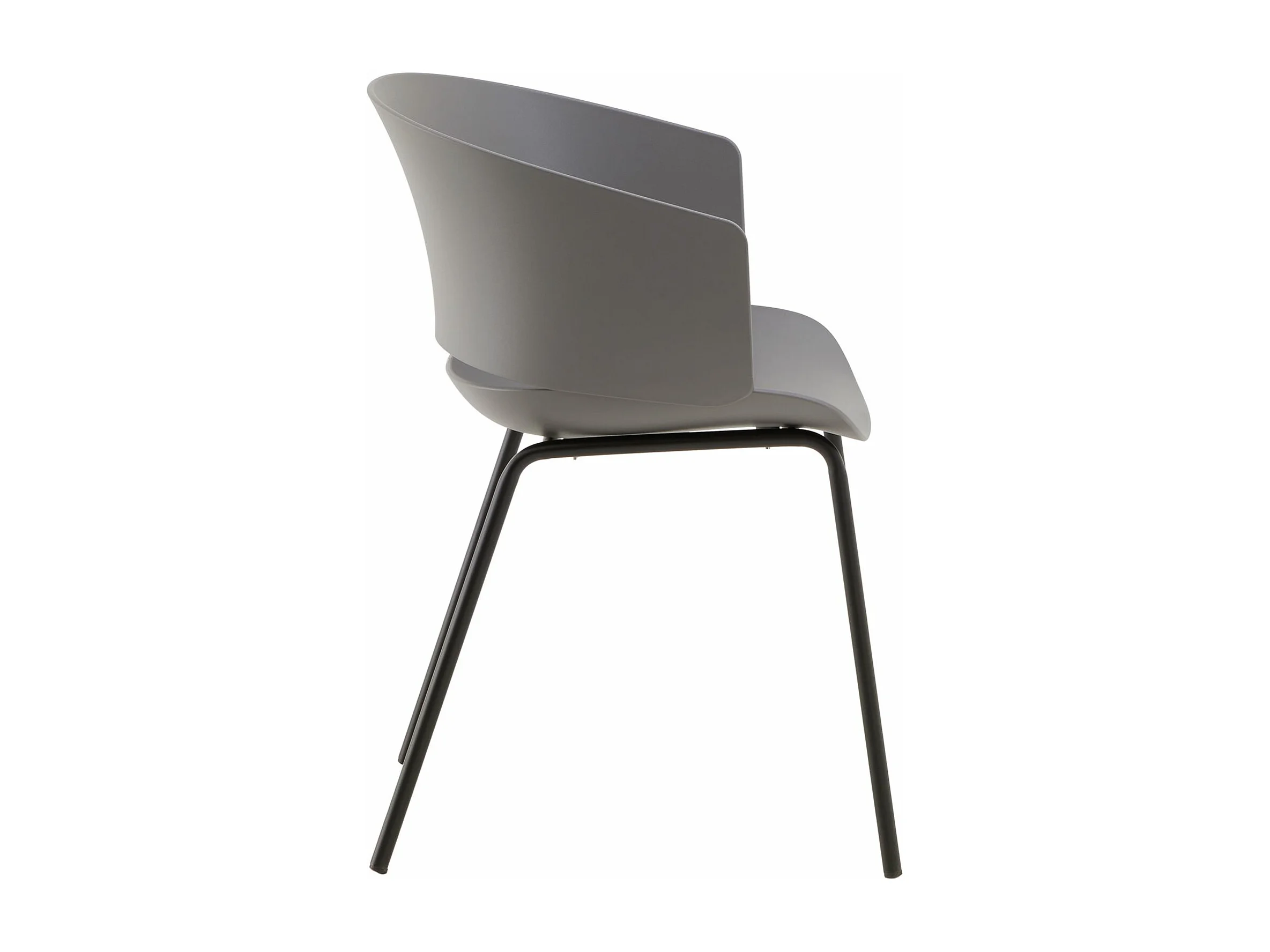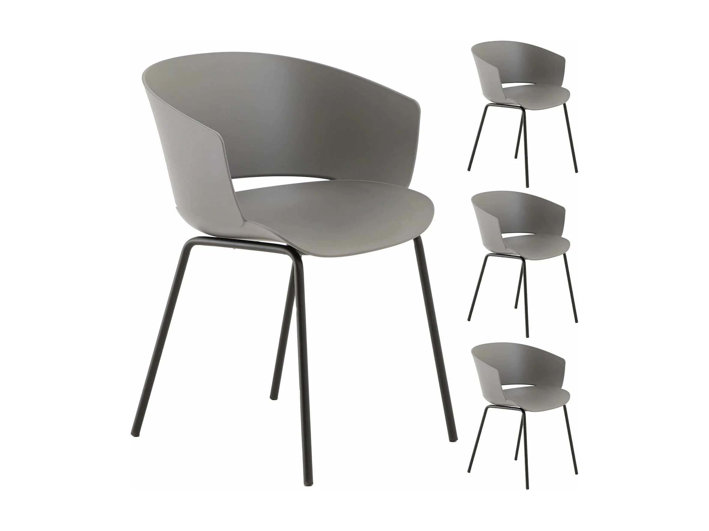 Lot de 4 chaises de jardin NIVEL fauteuil d'extérieur en plastique gris résistant aux UV et pieds en métal noir