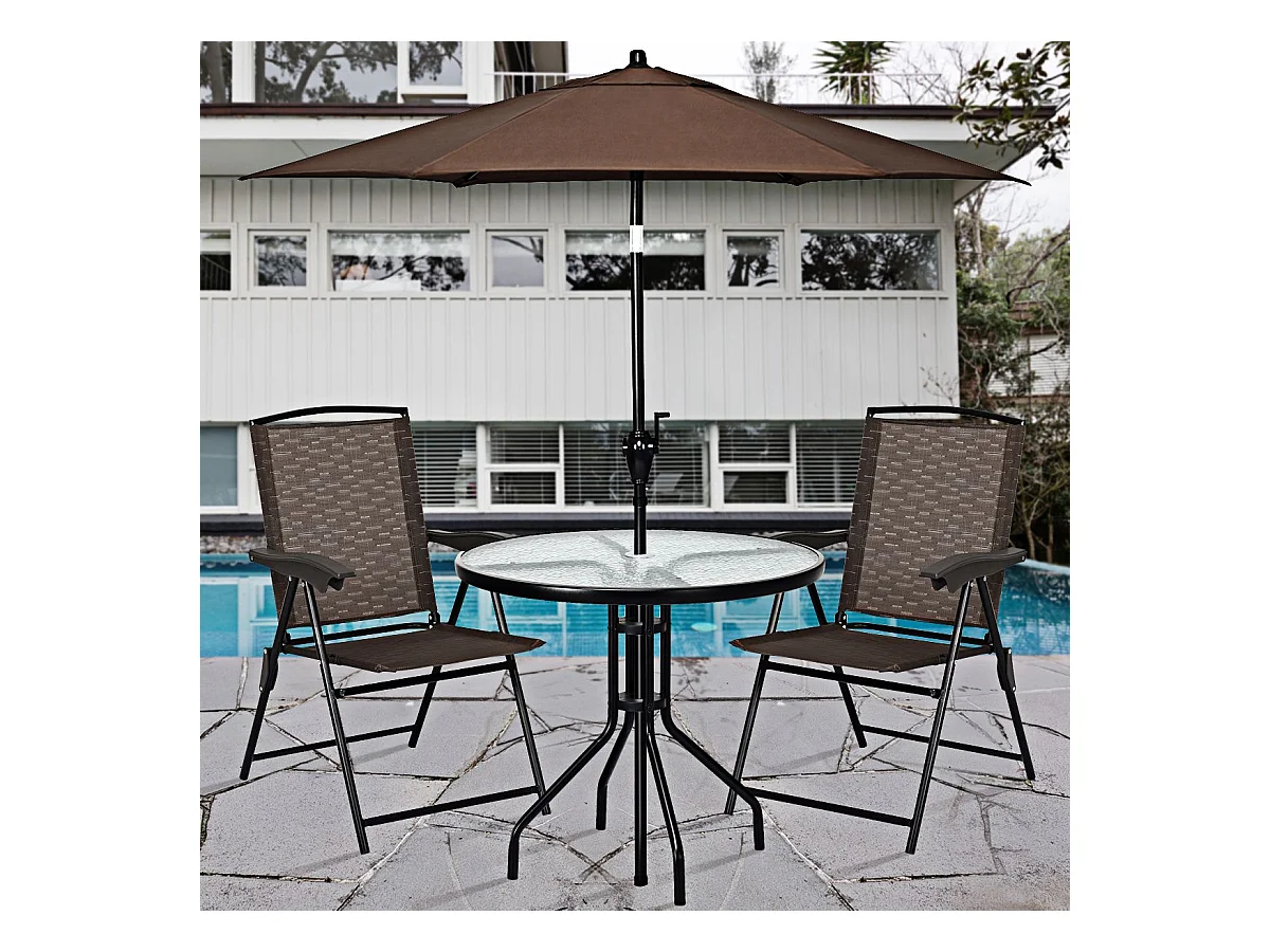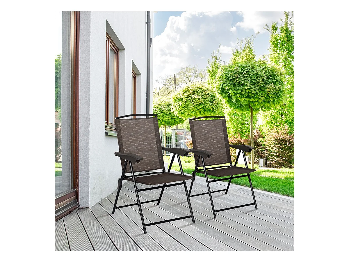 Lot de 4 Chaises de Jardin Pliantes Dossier Inclinable avec Accoudoirs en Acier Résistantes aux Intempéries Extérieur(Marron)