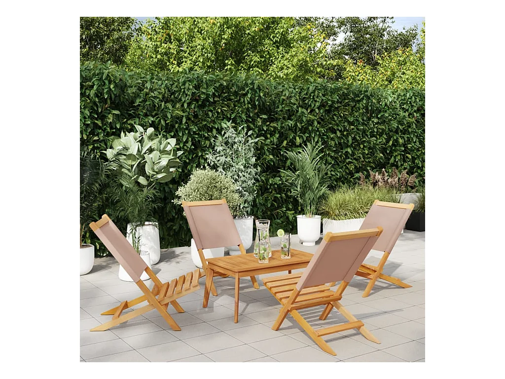 Lot de 4 Chaises de jardin pliantes taupe tissu et bois massif FR36949