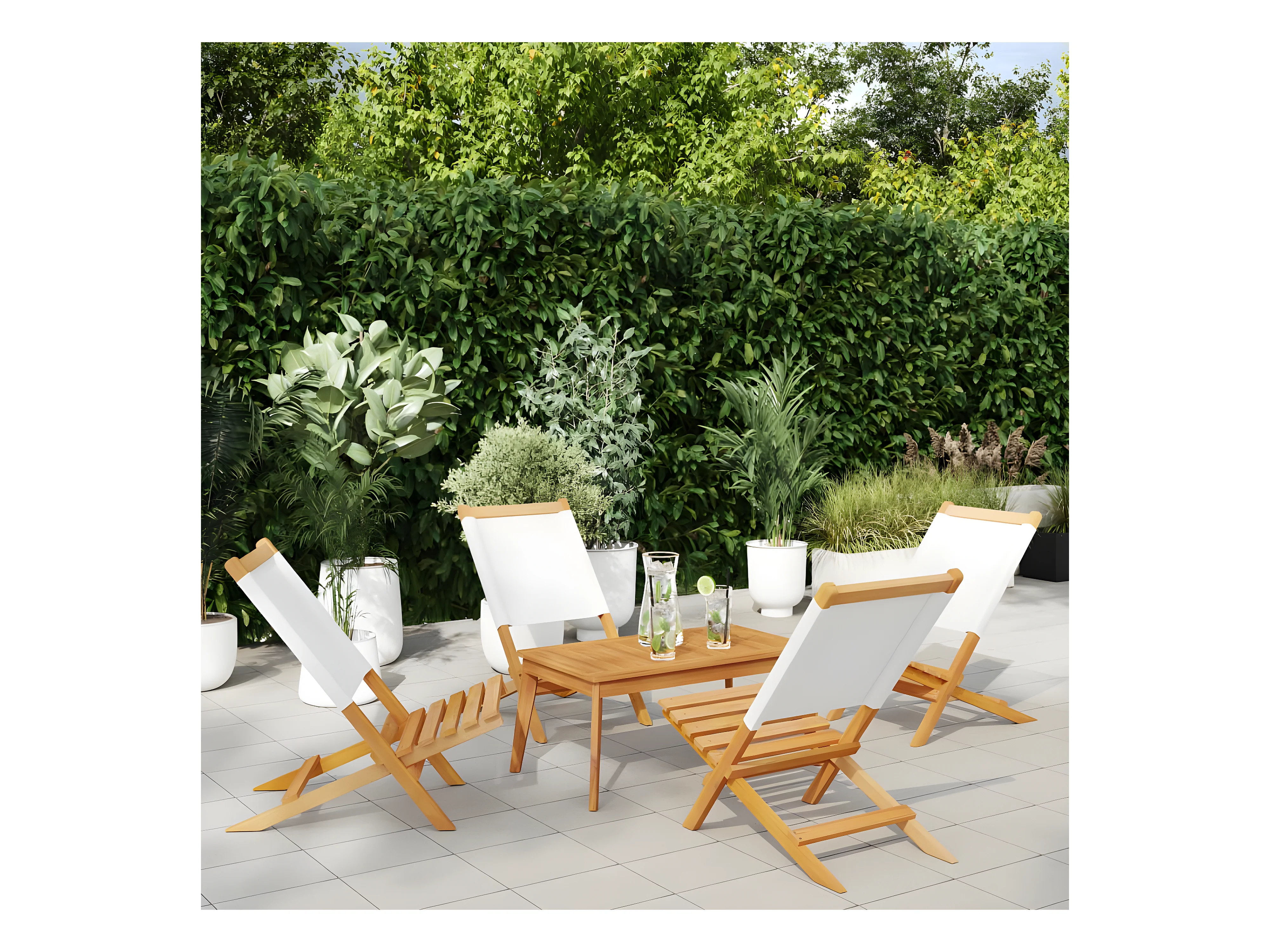 Lot de 4 Chaises de jardin pliantes tissu et bois massif FR19689