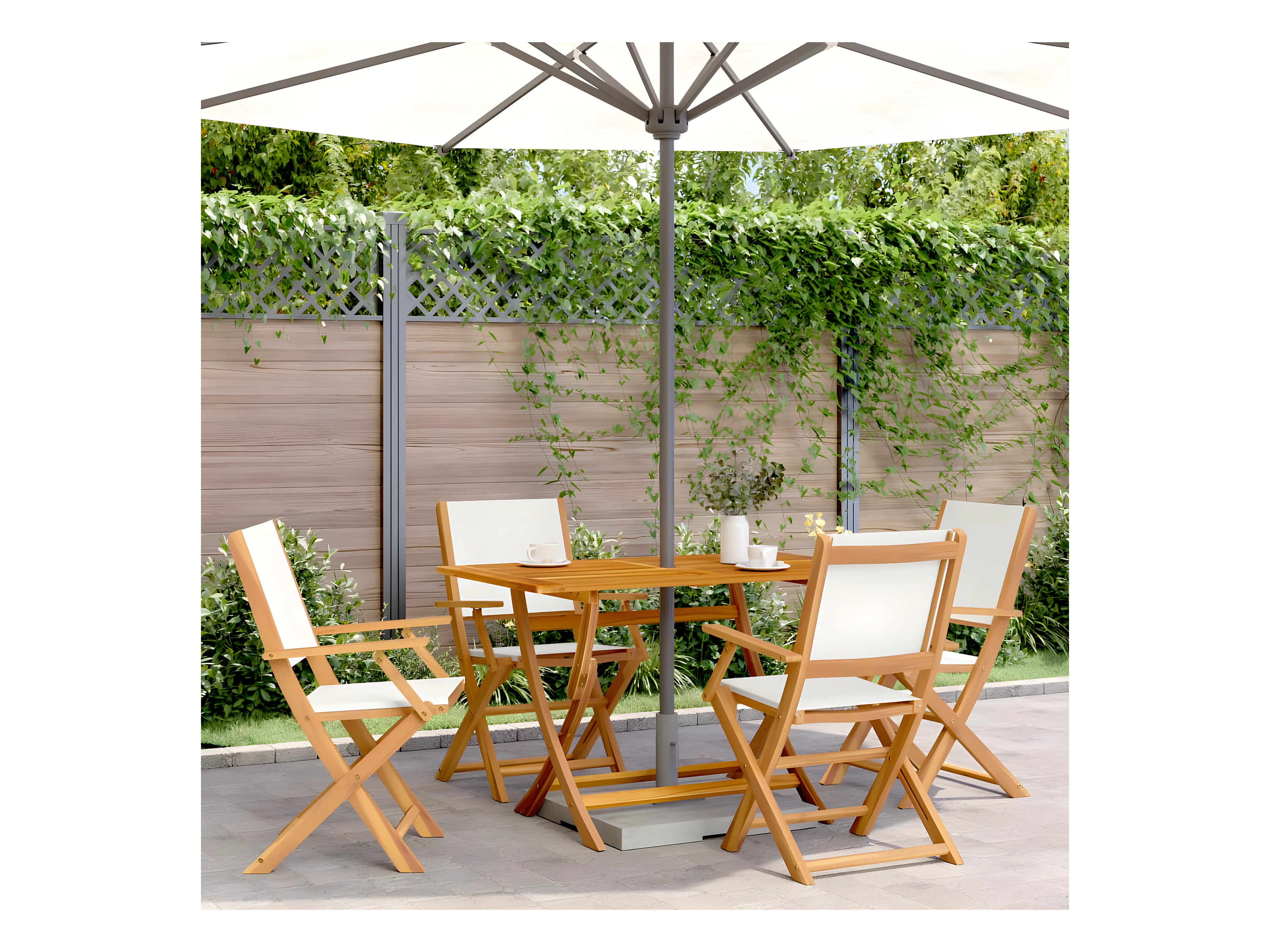 Lot de 4 Chaises de jardin pliantes tissu et bois massif FR38771