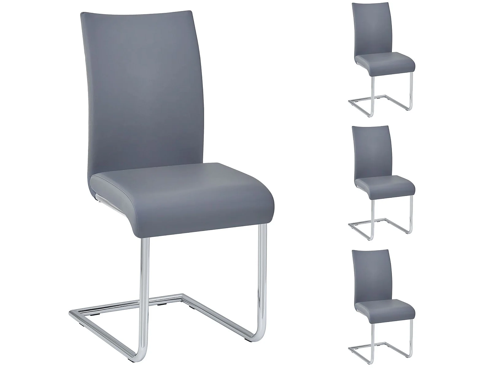Lot de 4 chaises de salle à manger ALADINO piètement chromé revêtement synthétique gris