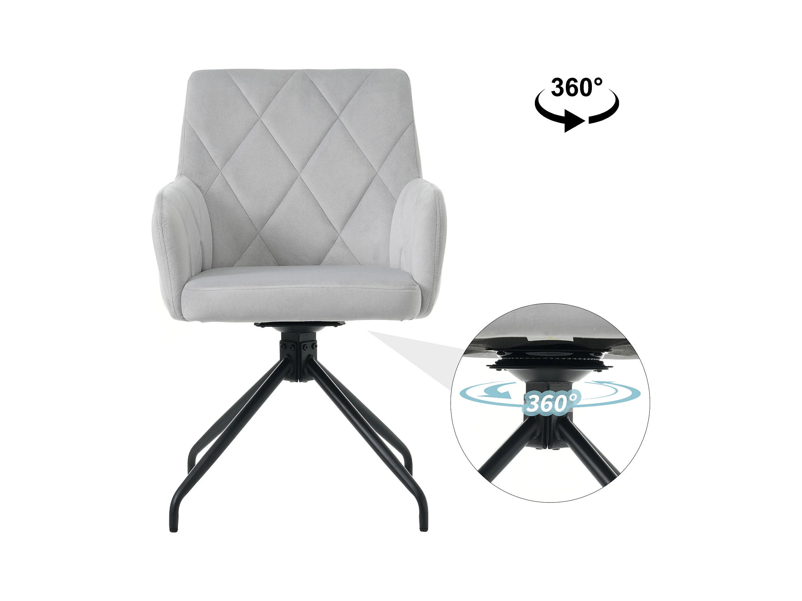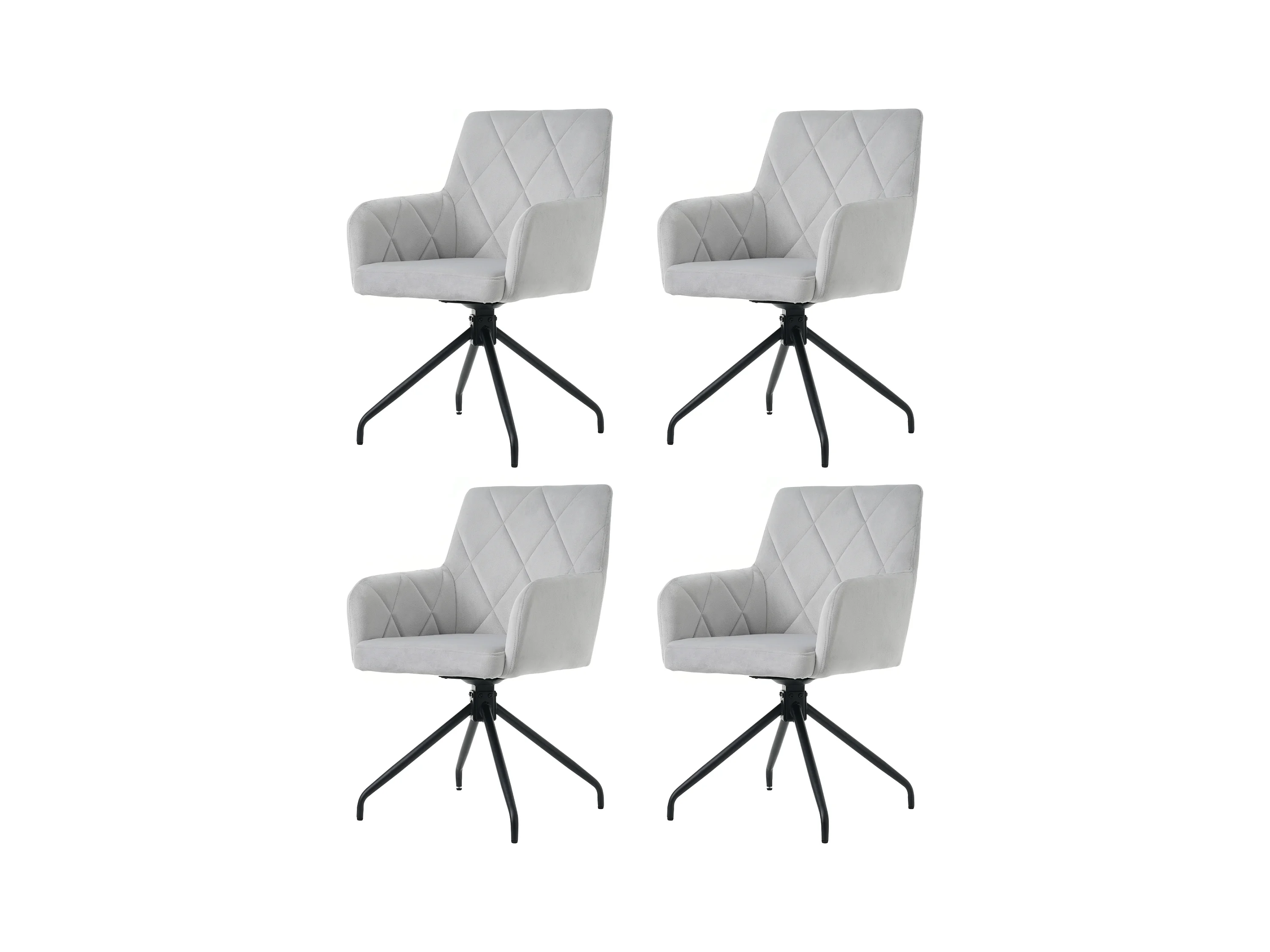 Lot de 4 chaises de salle à manger - avec accoudoirs et fonction pivotante - pieds en métal - velours gris
