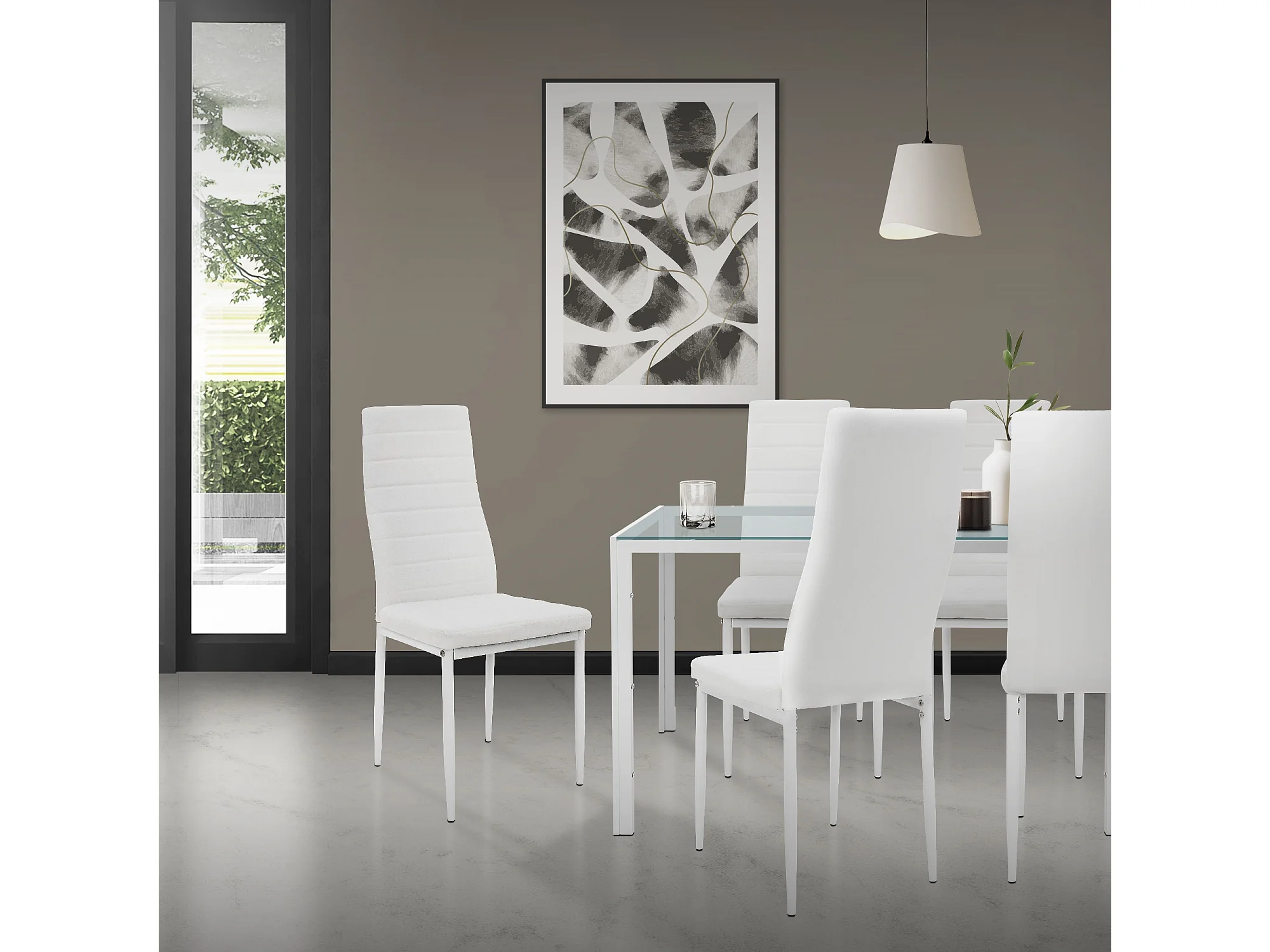 Lot de 4 chaises de salle à manger blanc avec dossier haut rembourrées en simili pieds en acier patins de protection de sol inclus charge de 120 kg