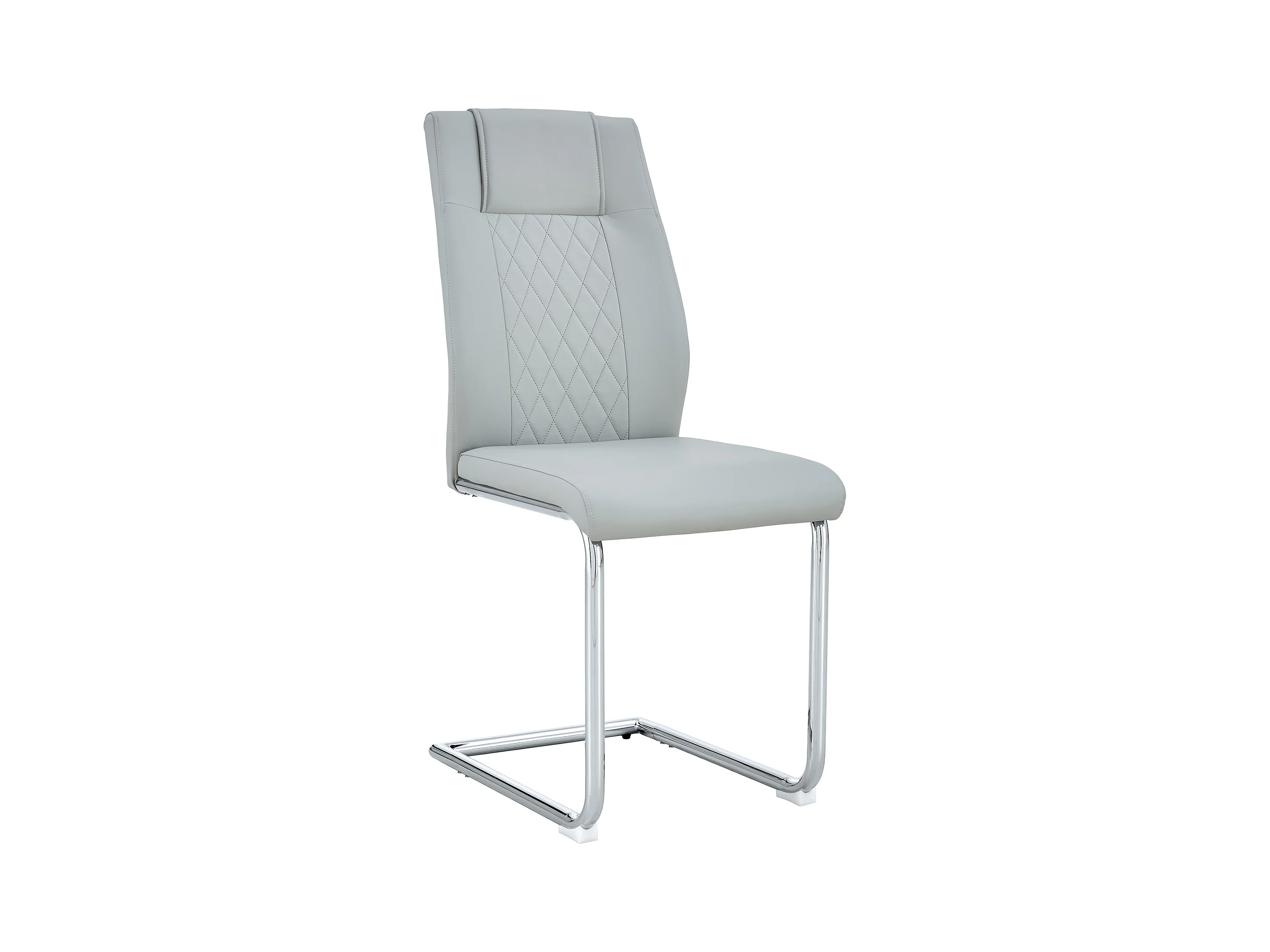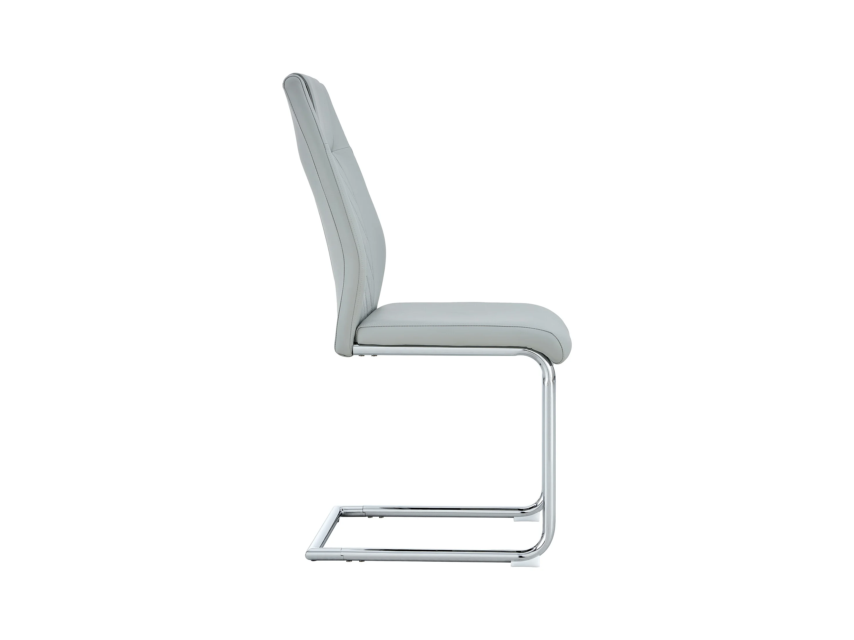 Lot de 4 chaises de salle à manger - Chaise de salle à manger avec dossier et patins antidérapants - pieds en métal argenté brillant - PU gris clair