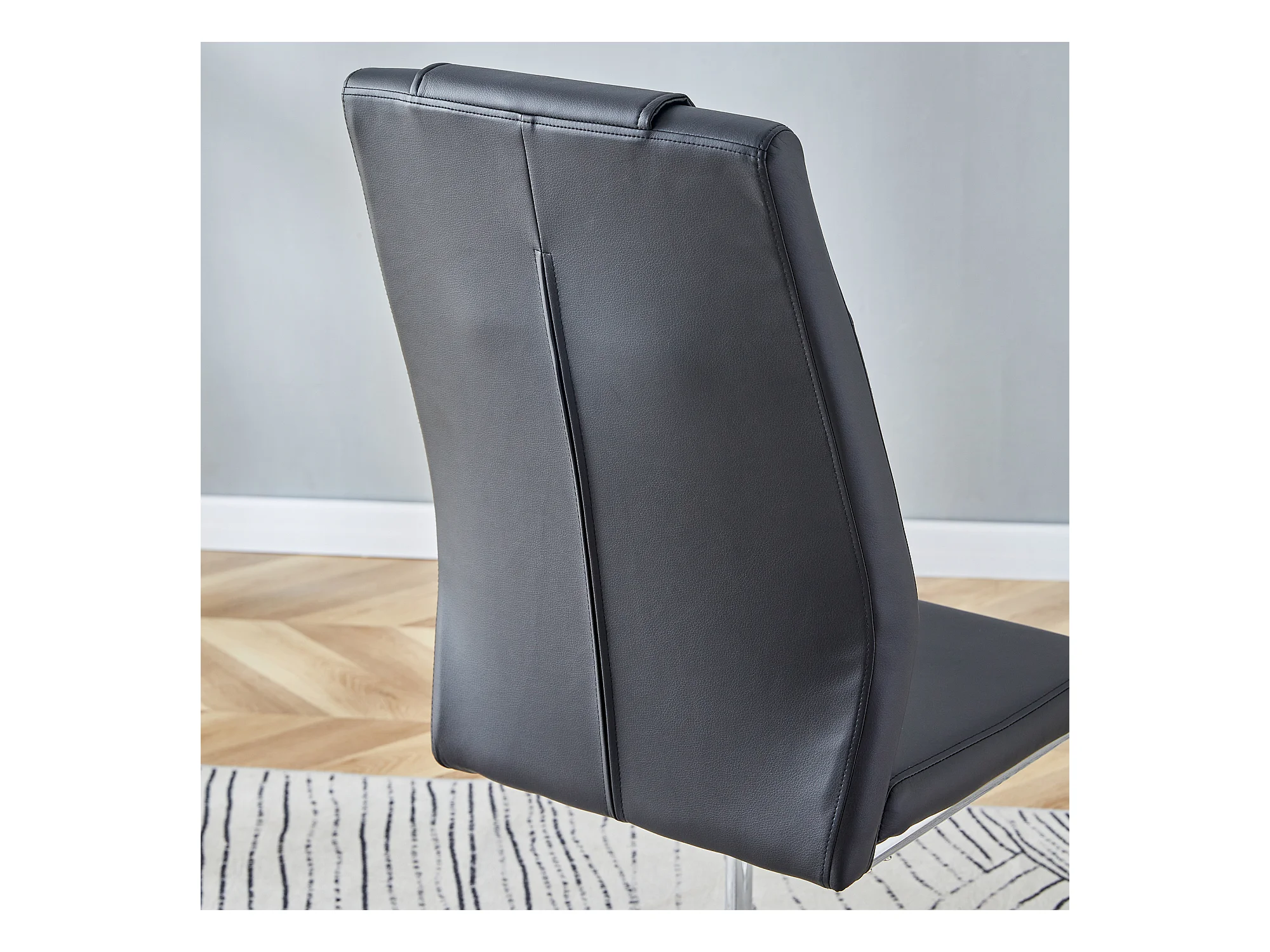 Lot de 4 chaises de salle à manger - Chaise de salle à manger avec dossier et patins antidérapants - pieds en métal argenté brillant - PU noir