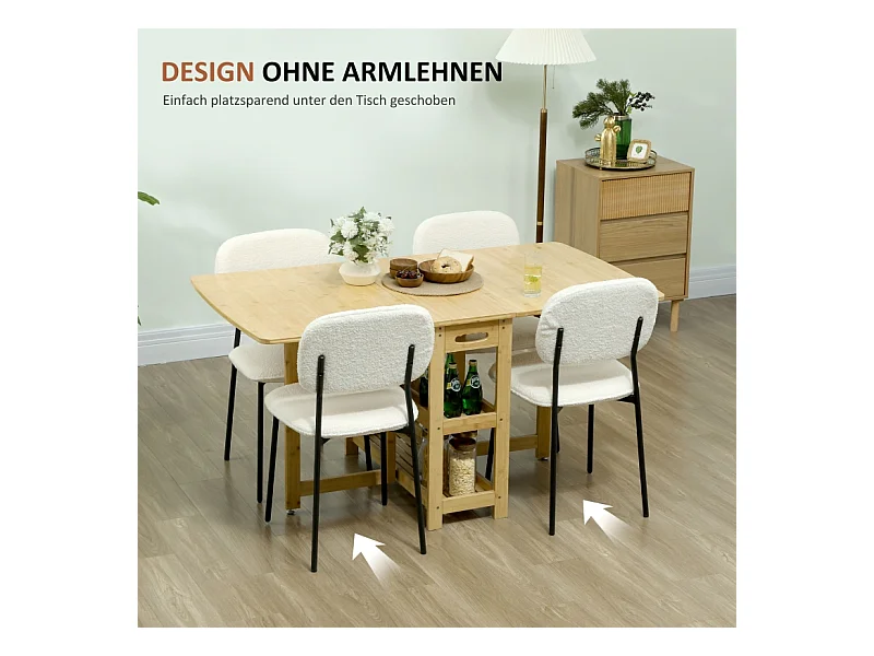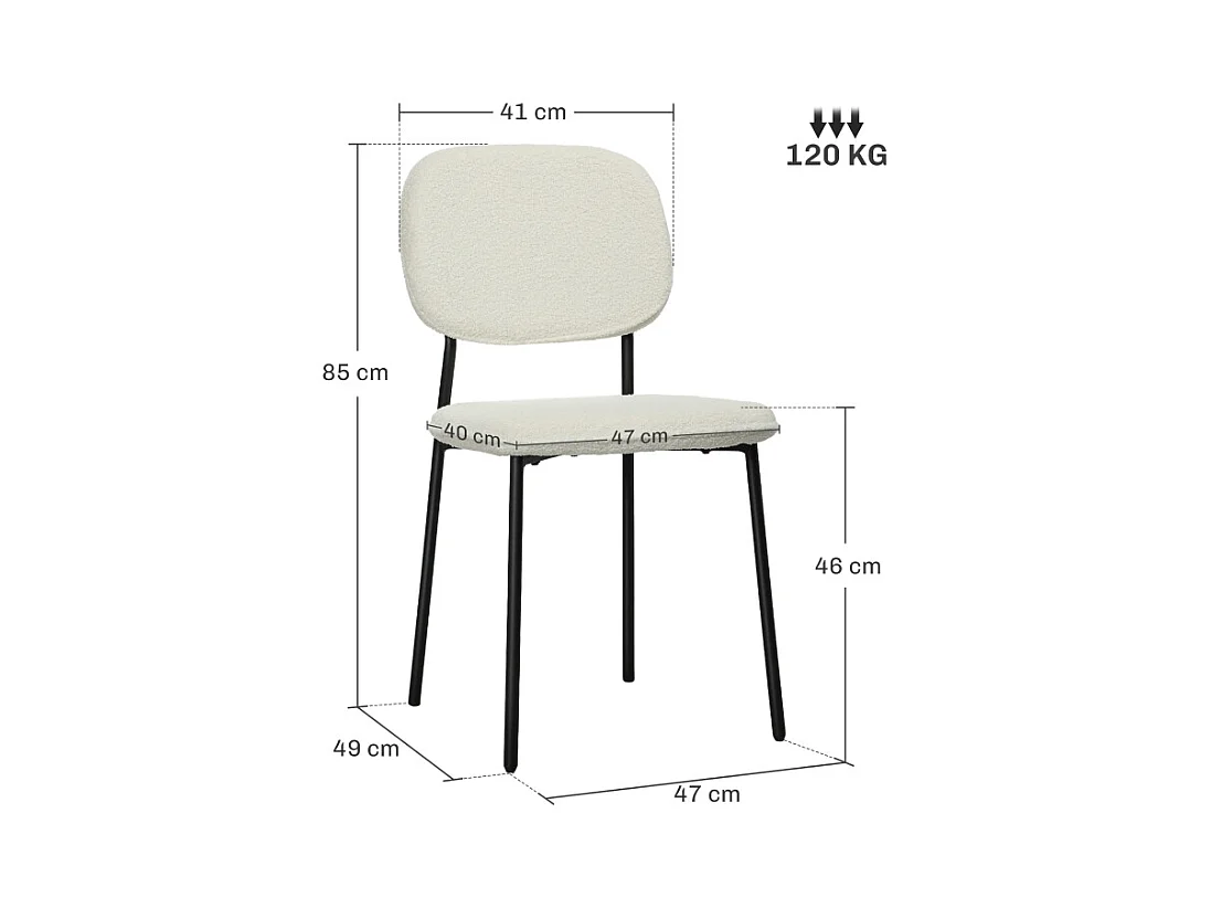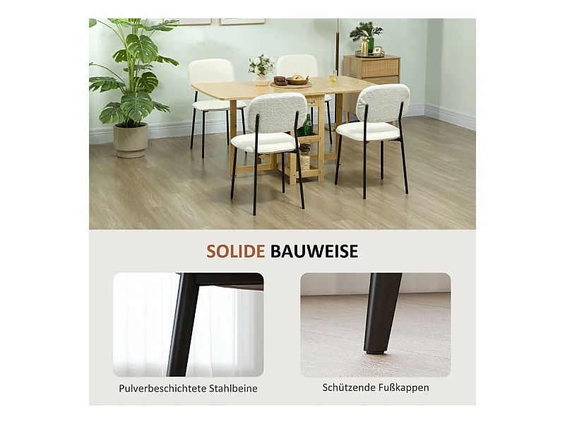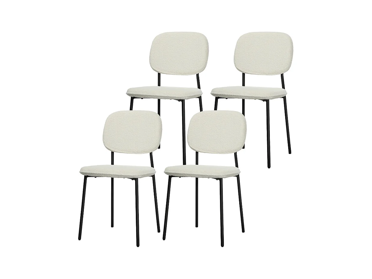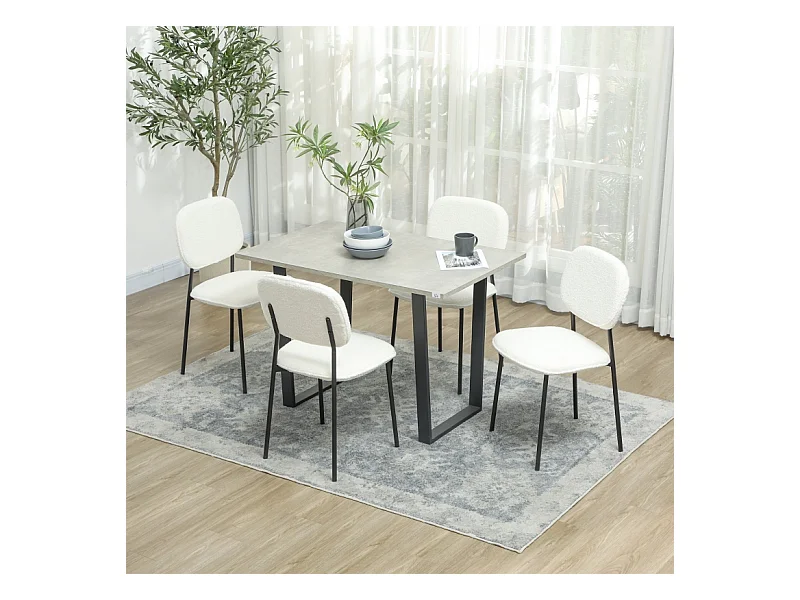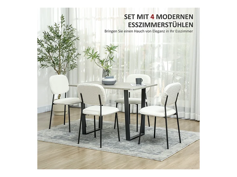 Lot de 4 chaises de salle à manger, chaises de cuisine rembourrées avec dossier, aspect velours, pieds en acier, blanc