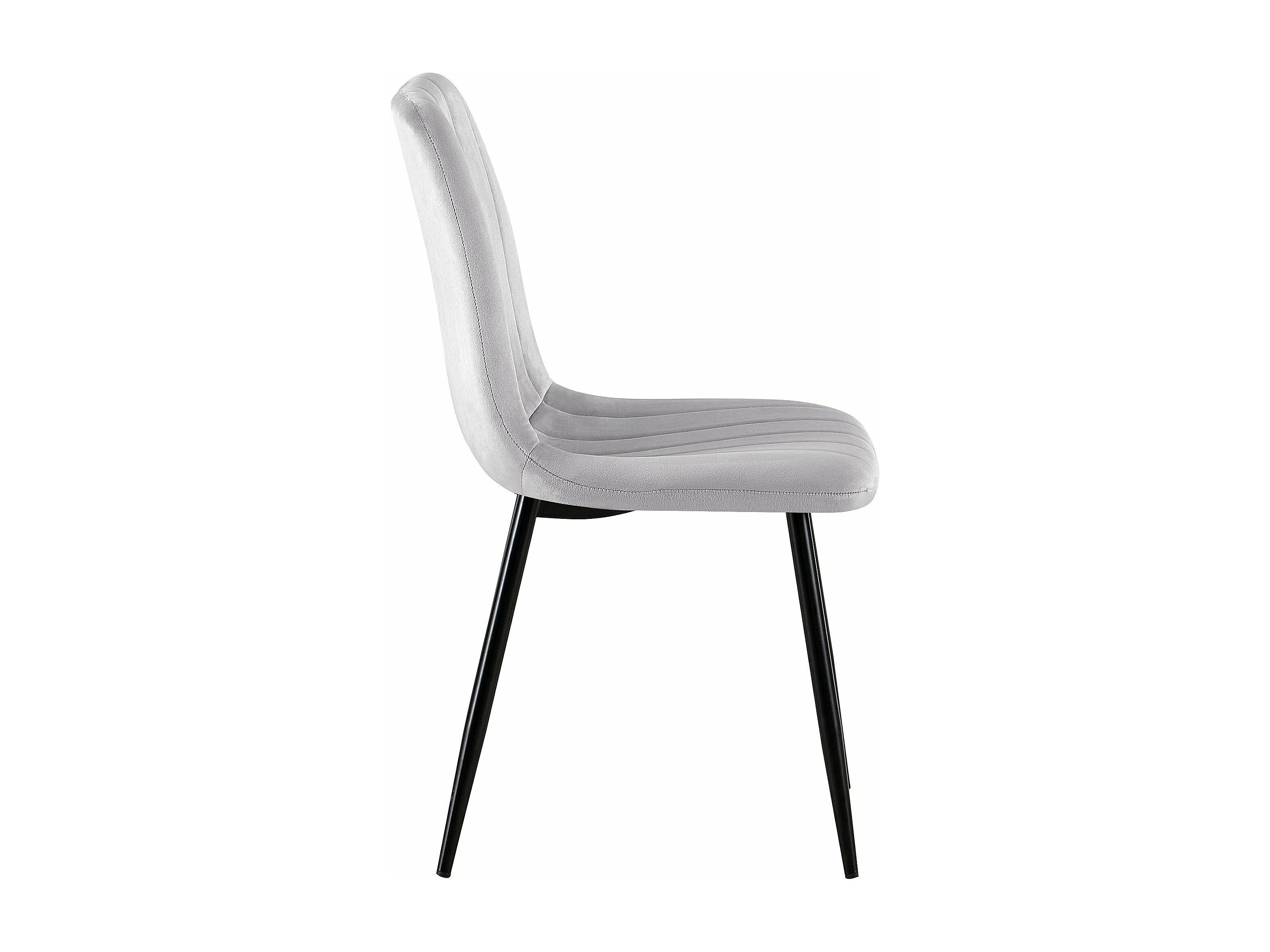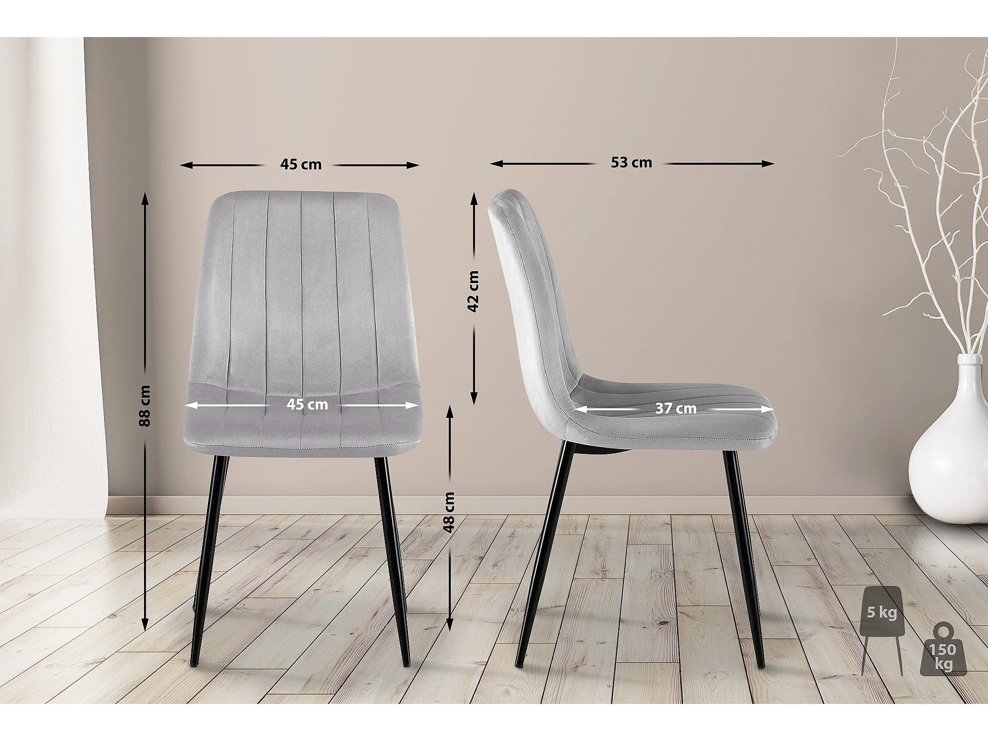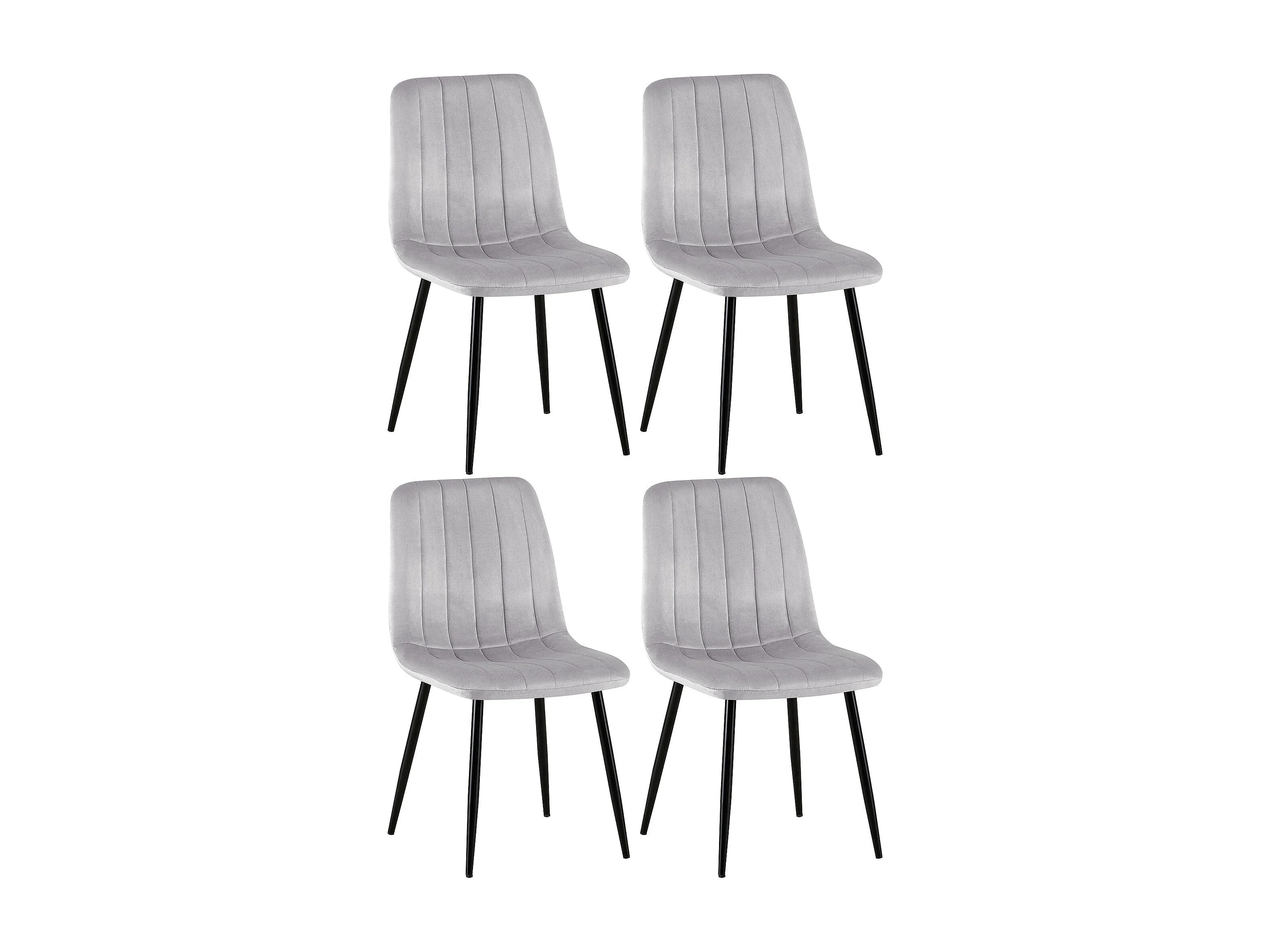 Lot de 4 chaises de salle à manger couture décorative vertical assise en velours gris et pieds en métal noir 10_0001865