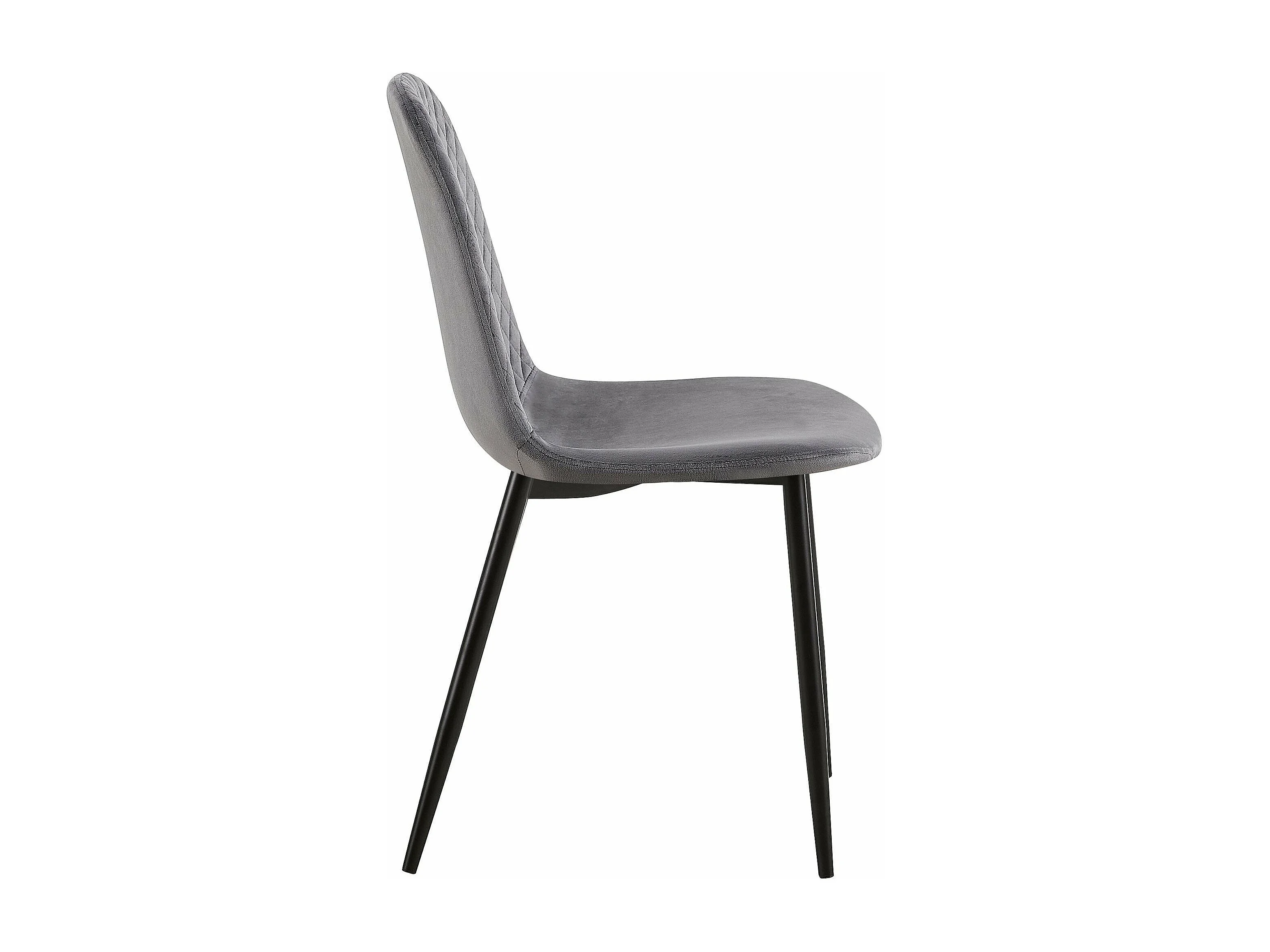 Lot de 4 chaises de salle à manger coutures décoratives losanges assise en velours gris foncé pieds métal noir mat 10_0001884