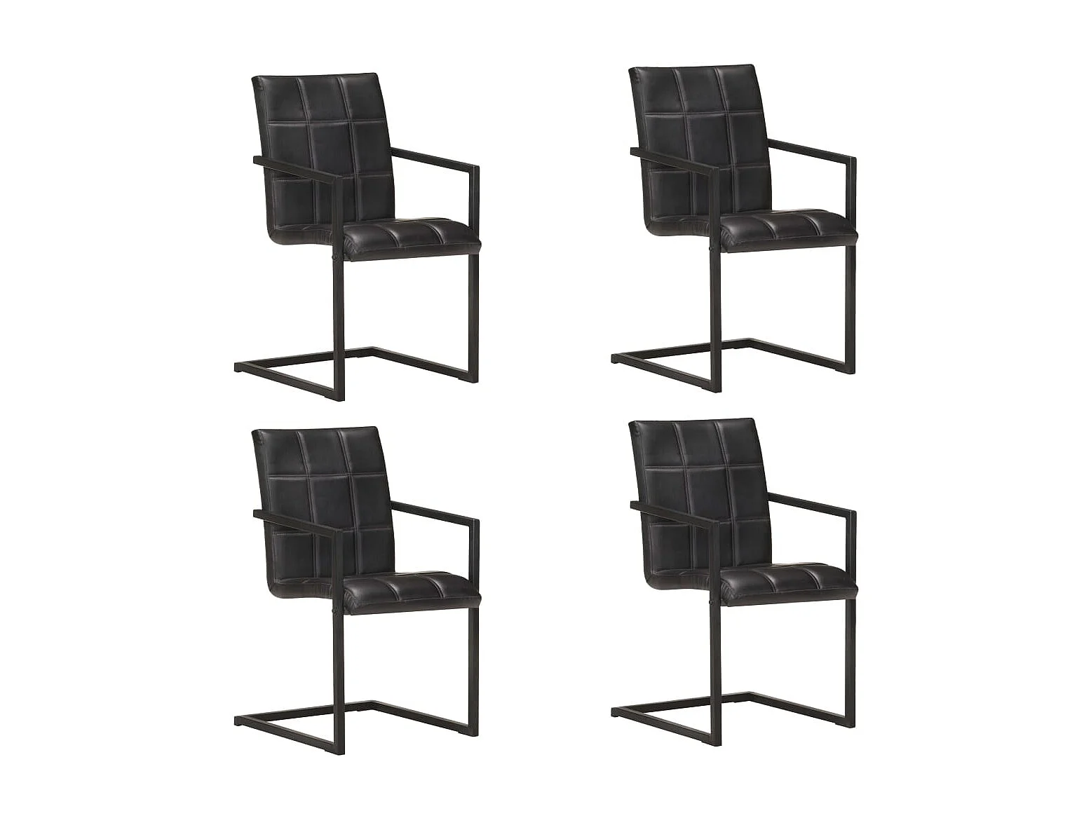 Lot de 4 chaises de salle à manger cuisine cantilever design rétro cuir véritable noir CDS021416