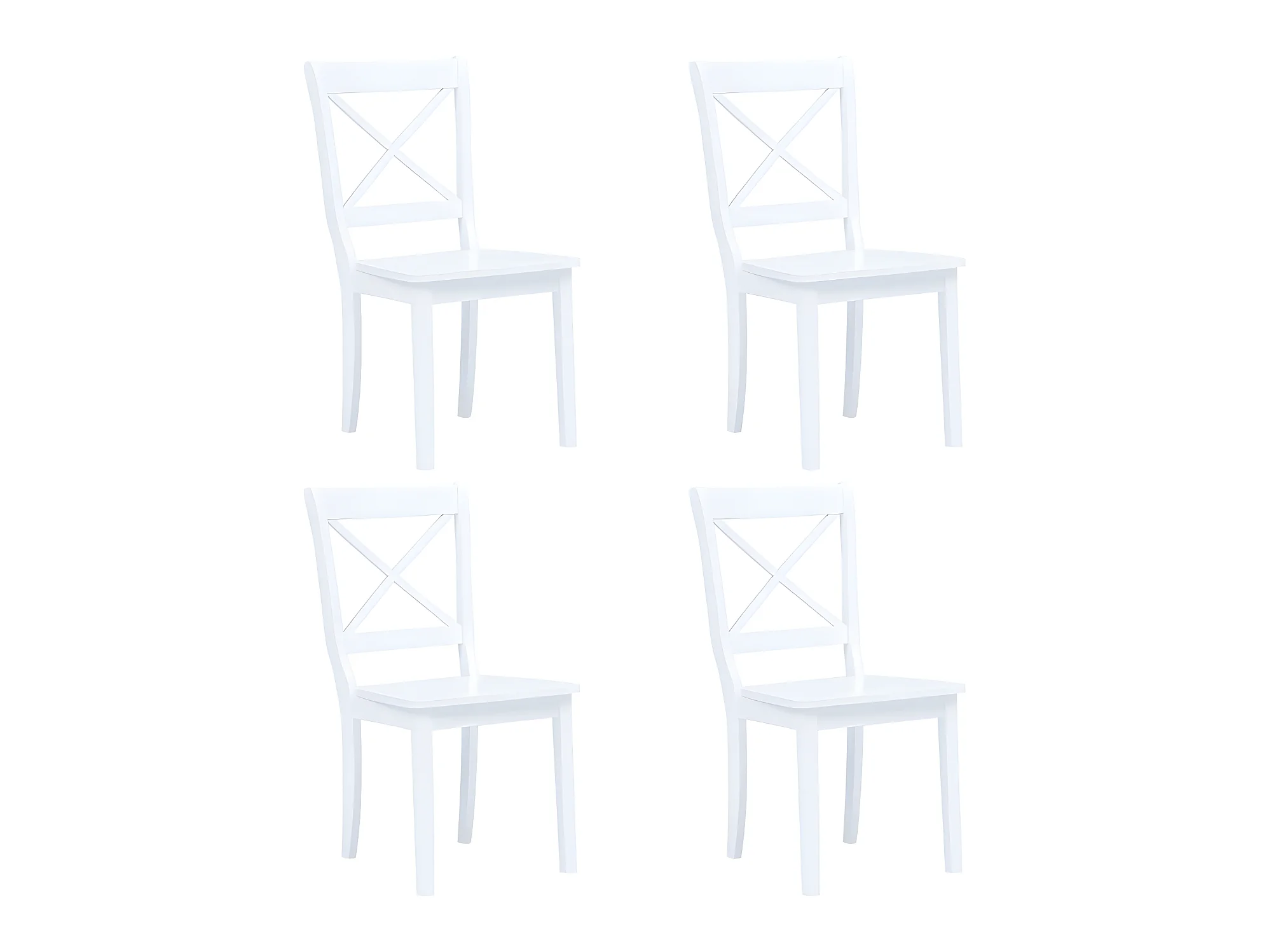 Lot de 4 chaises de salle à manger cuisine design classique blanc bois d'hévéa massif CDS021227