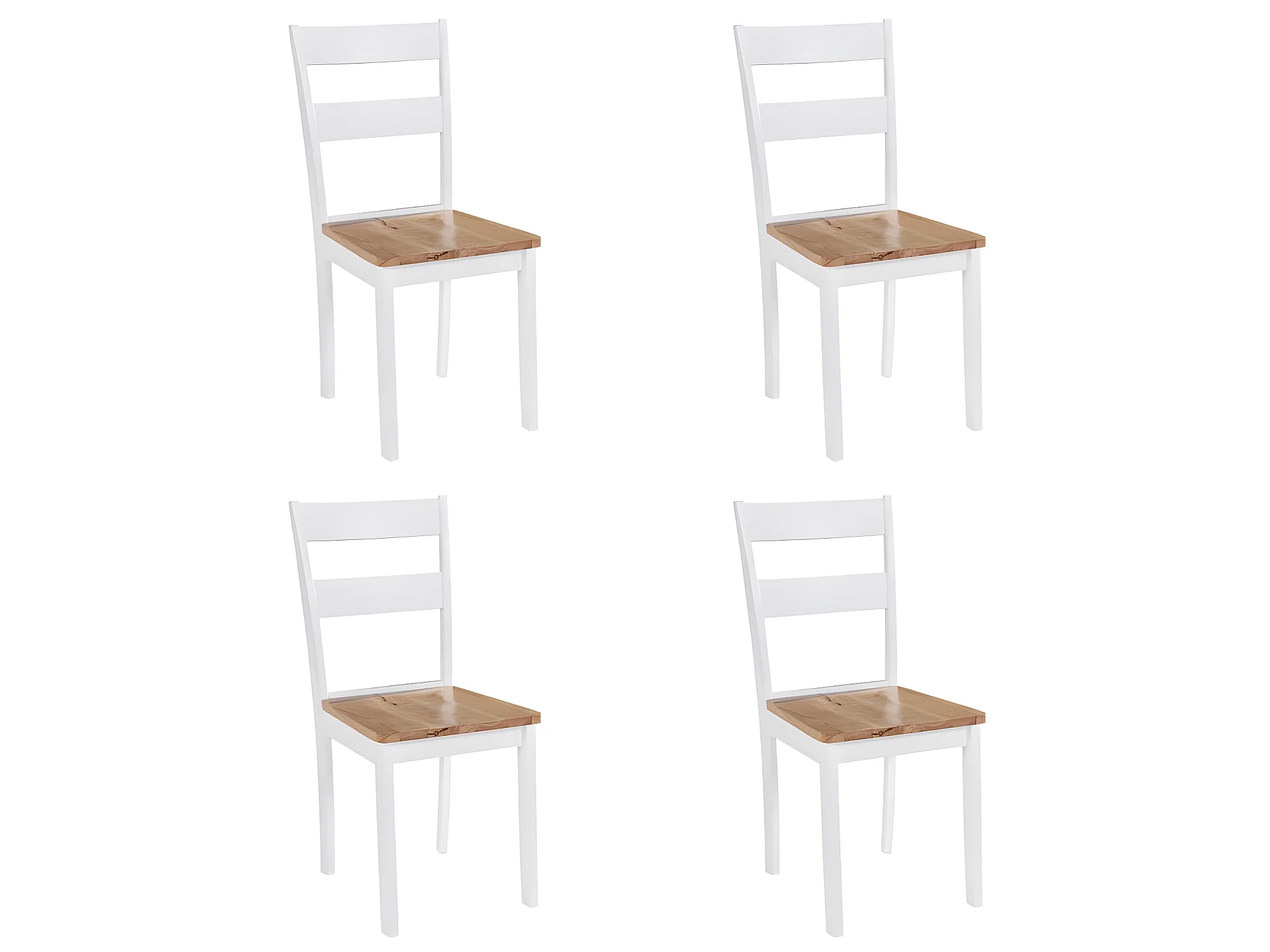 Lot de 4 chaises de salle à manger cuisine design classique bois d'hévéa massif blanc CDS021228
