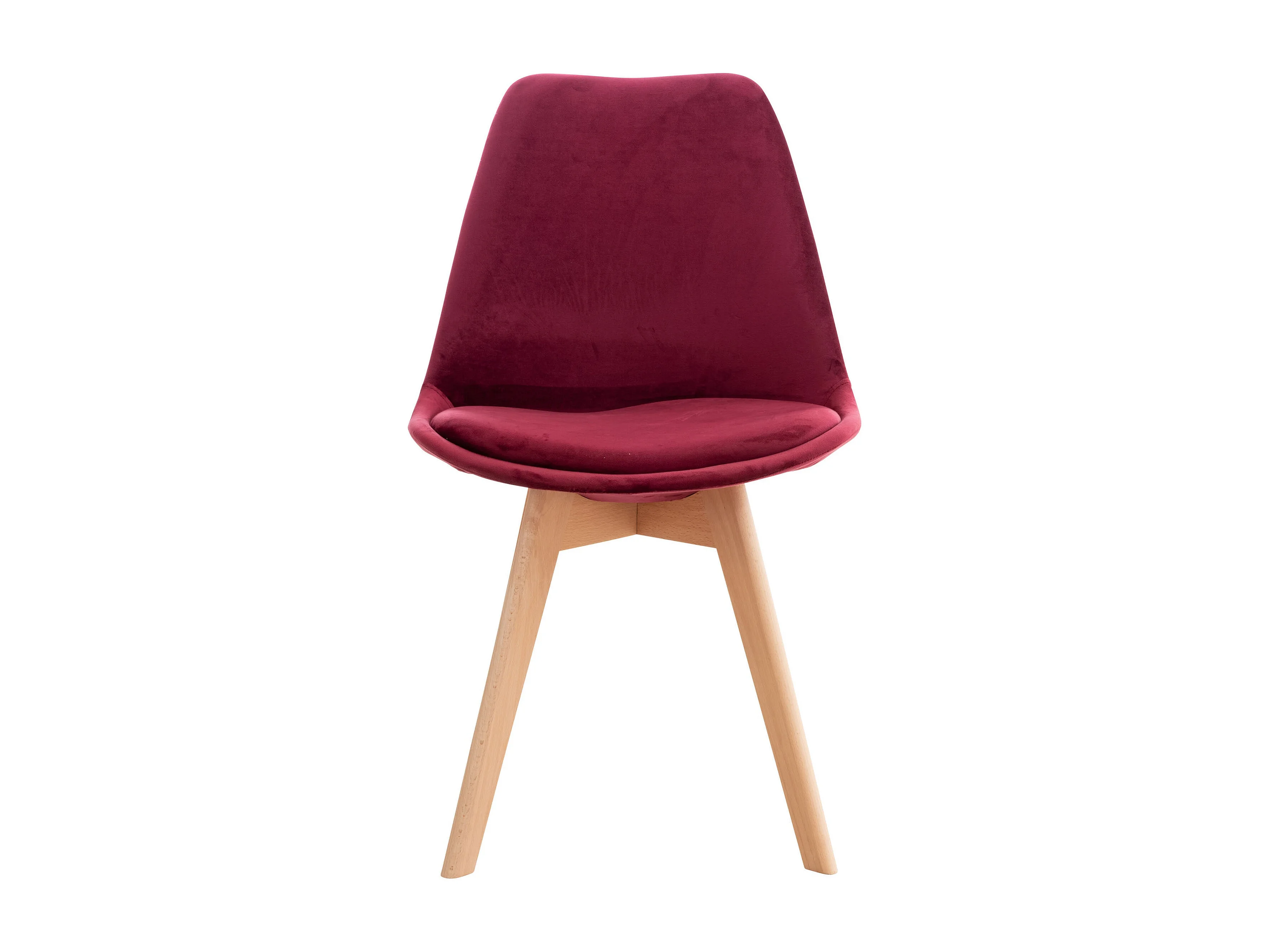 Lot de 4 chaises de salle à manger design scandinave en tissu velours bordeaux pieds bois clair CDS10380