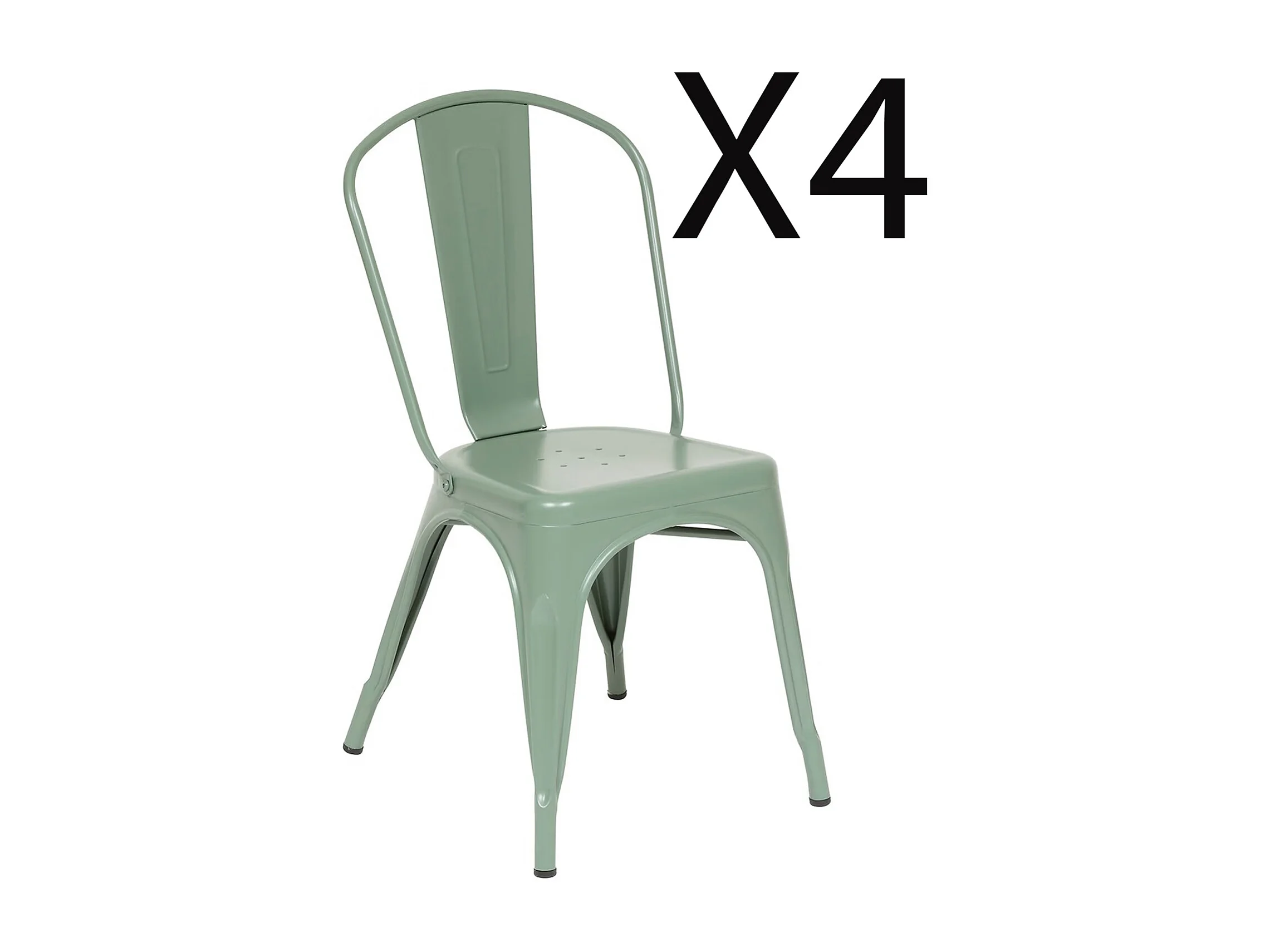 Lot de 4 chaises de salle à manger en métal coloris Vert Olive - Longueur 45 x Profondeur 48 x Hauteur 85 cm
