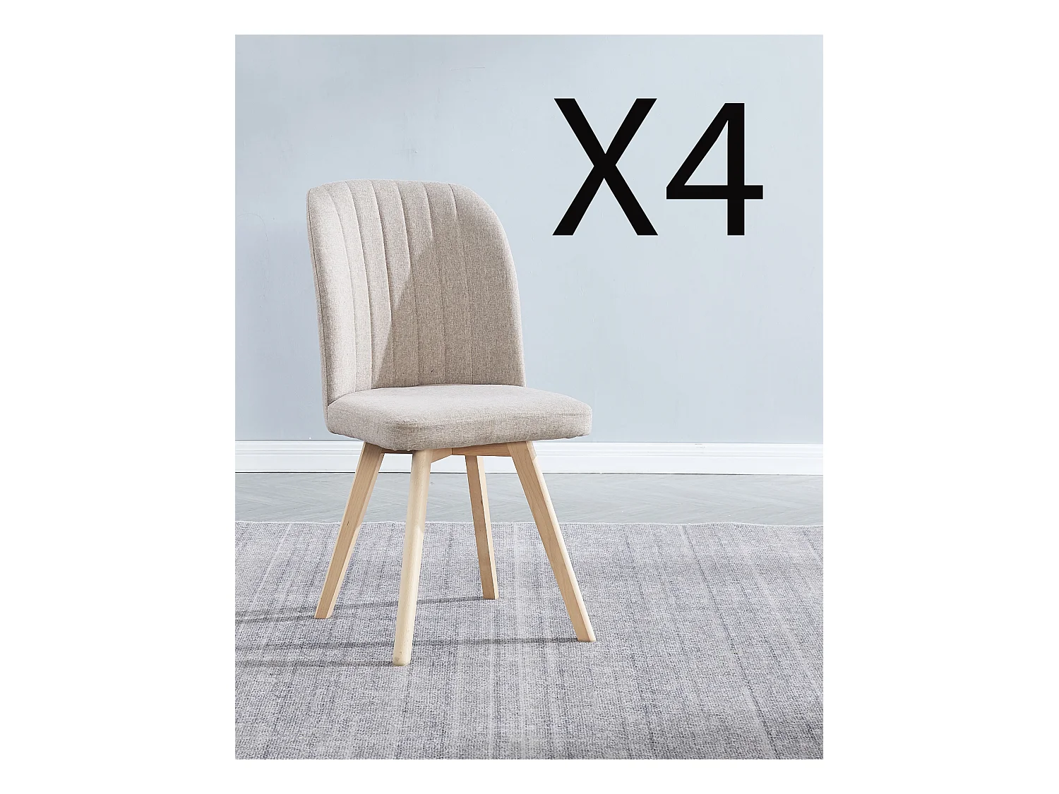 Lot de 4 chaises de salle à manger en tissu beige avec pieds en bois de pin - Longueur 46 x profondeur 55 x hauteur 92 cm