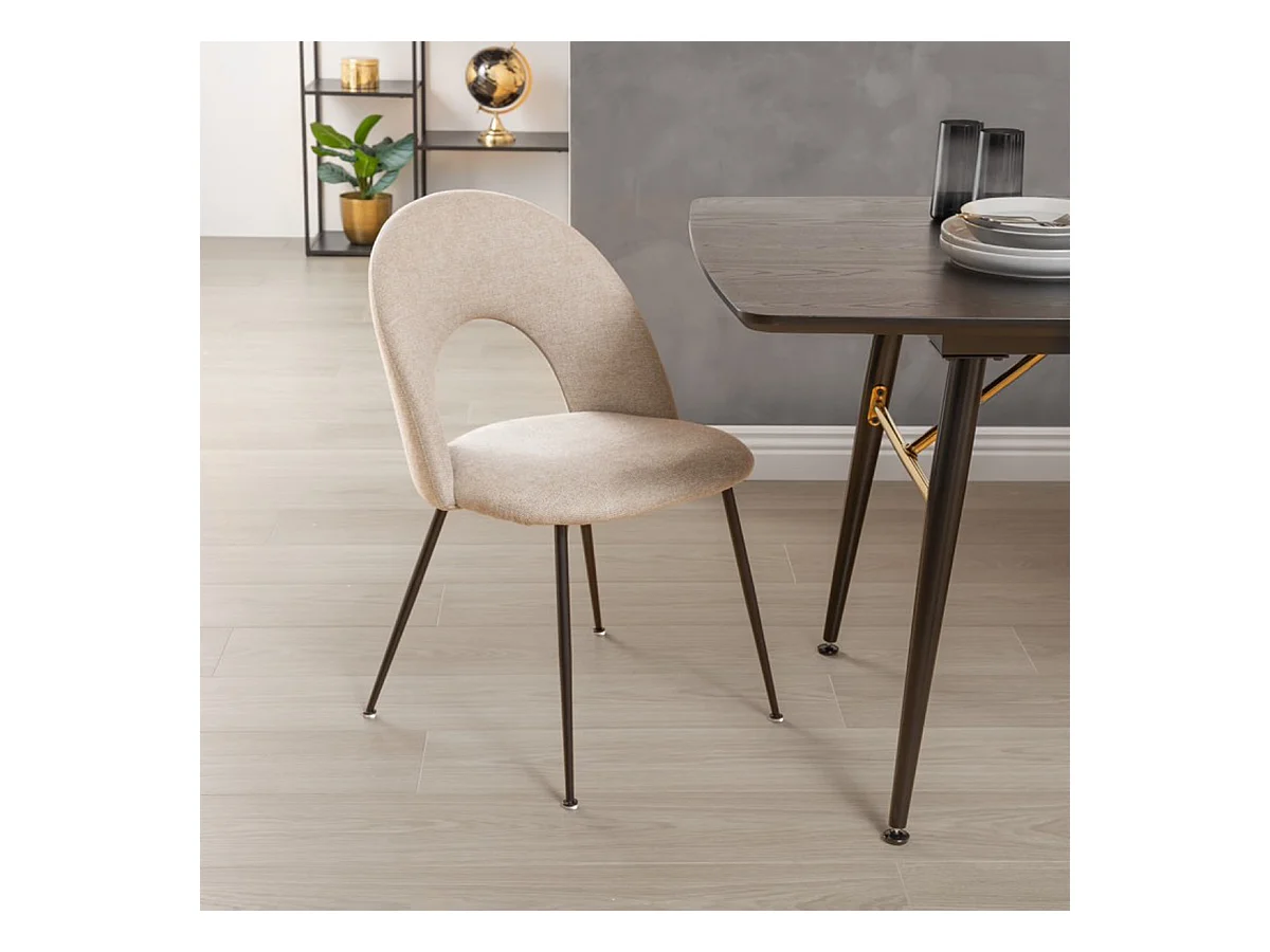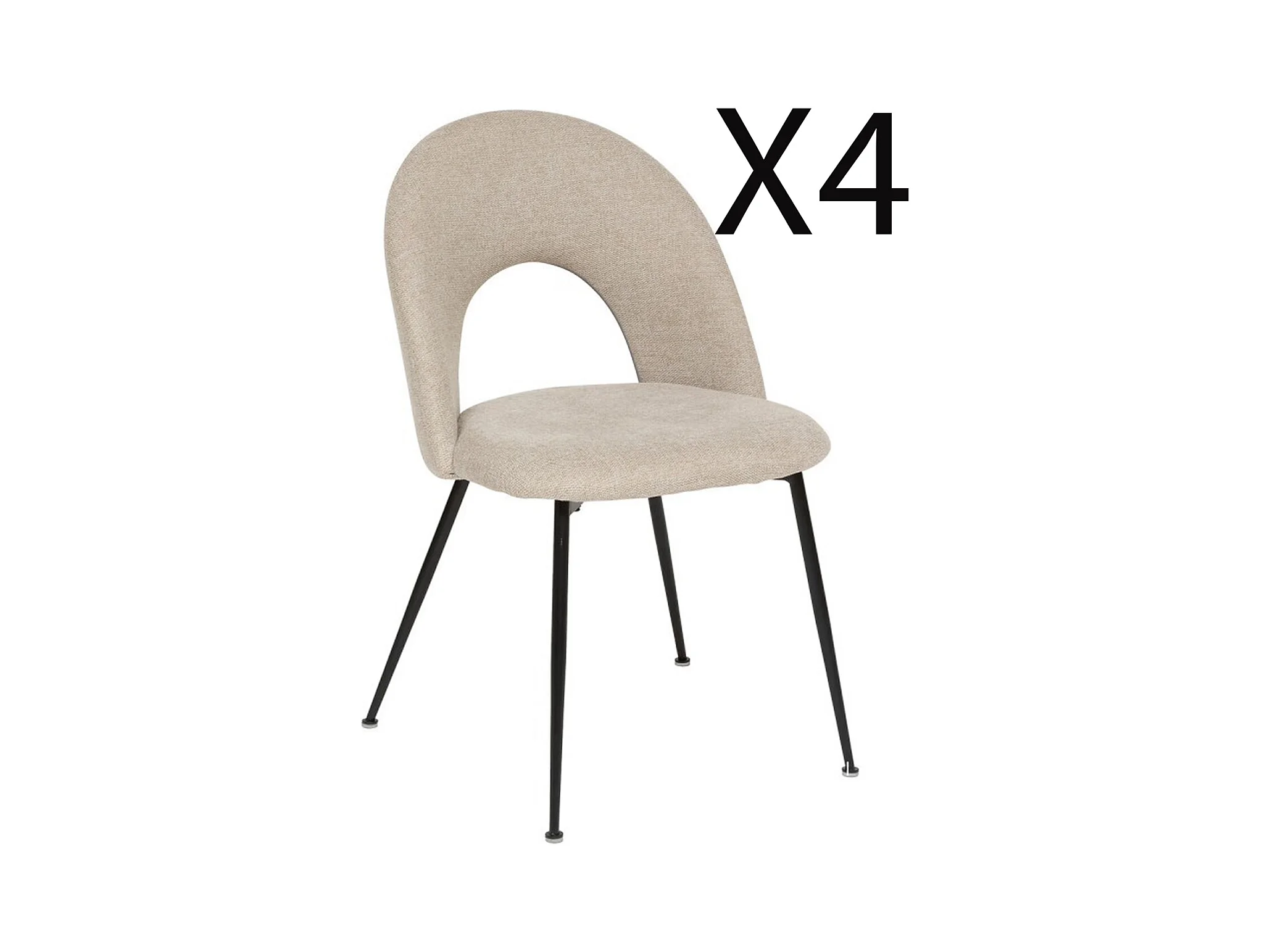 Lot de 4 chaises de salle à manger en tissu coloris Beige, pied en métal coloris noir